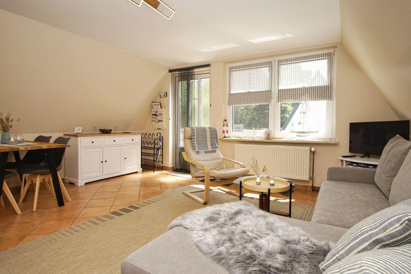 WOHNEN // Wohnraum mit Essbereich, Sitzgarnitur mit bequemer Couch (mit Schlaffunktion), Flachbild-TV, ++
