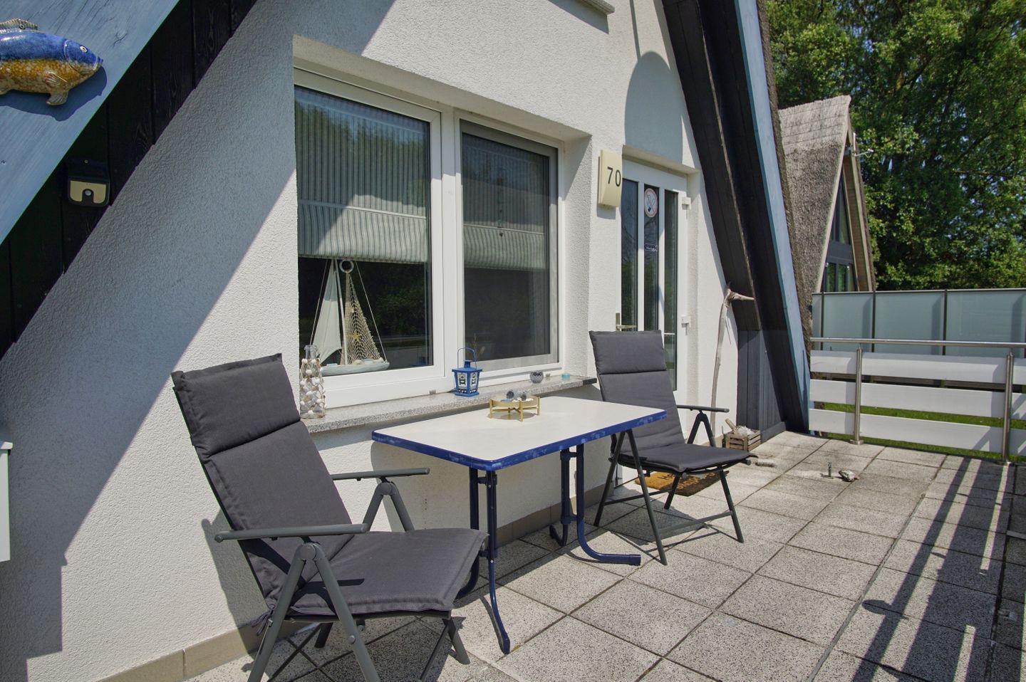 strandnah, autofreie Ferienanlage, gemütliches Ferienhaus, Terrasse - Finnhaus70