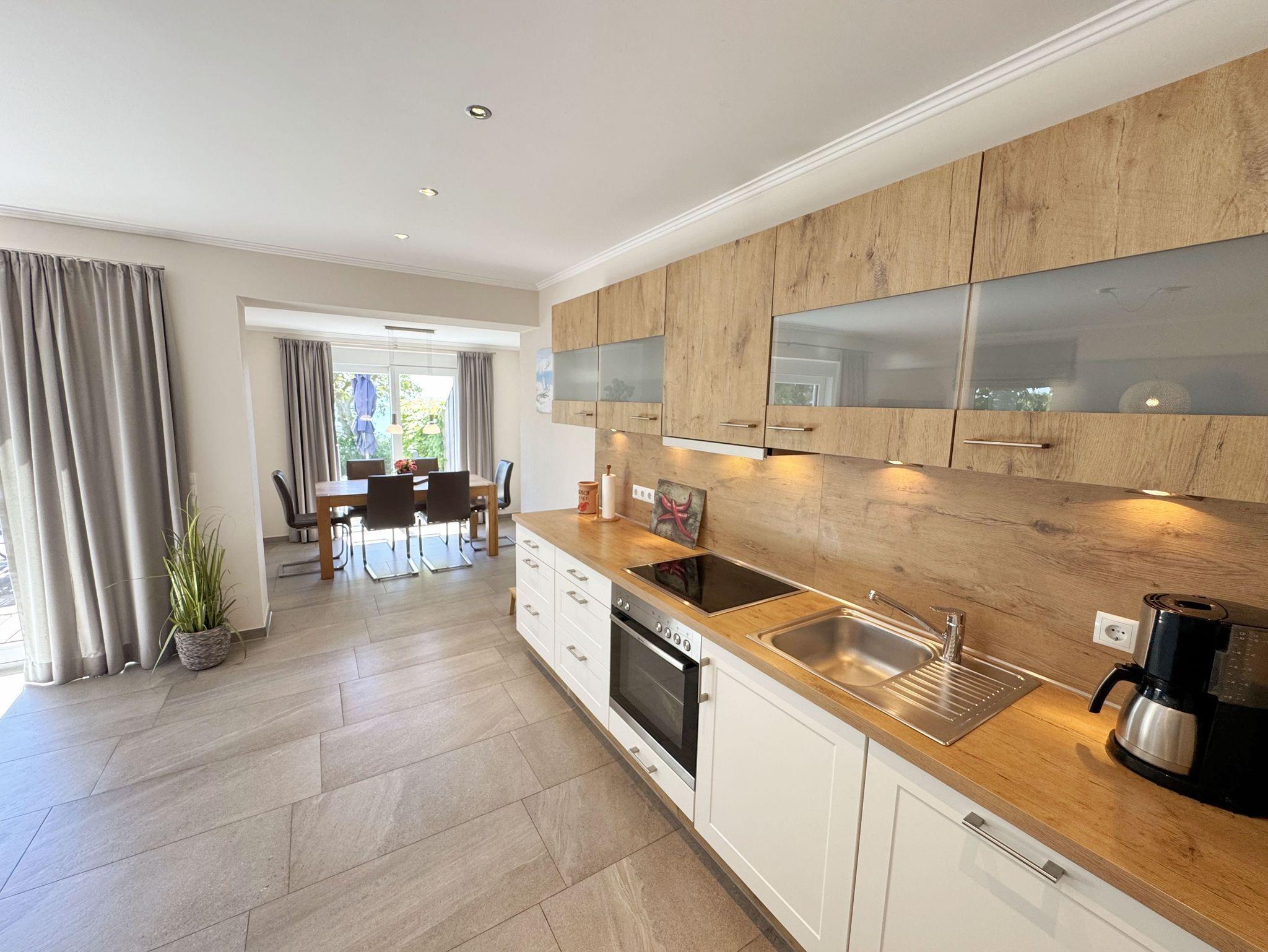Die Ferienwohnung (Nichtraucher) Nr. 1, ca. 97 m², befindet sich im Erdgeschoss eines 6 Familienhauses auf 4.500 m² großem Grundstück in Einzellage ohne Publikums- und PKW-Verkehr. Die Wohnung ist nach Süden ausgerichtet und verfügt über zwei Badezimmer, zwei verdunkelbare Schlafzimmer, einen ca. 36 m² großen Wohn- und Essbereich sowie einer nicht einsehbaren ca. 25 m² Südterrasse. Es stehen 5 Betten (2 Doppelbetten - (Größe 1,80 m x 2,00 m) und 1 Einzelbett 0,90m x 2,00m) sowie eine Schlafcouch (1,30m 2,00m) zur Verfügung. Die Matratzen der Doppelbetten haben die Härtegrade 2 und 3. Das ausziehbare Schlafsofa verfügt über eine hochwertige Kaltschaummatratze. Die Wohnung kann mit bis zu 6 Personen belegt werden. Vom Wohnbereich und der Terrasse eröffnet sich ein weiter Blick über die unmittelbar vor dem Haus gelegene Ostsee. Die einzigen Geräusche sind der Wind und das Rauschen des Meeres. Die Wohnung erfüllt in ihrer Ausstattung höchste Ansprüche. Erlesene Baumaterialien und Einrichtungsgegenstände vermitteln ein Gefühl des Genießens von Luxus. Nur beispielhaft sei erwähnt, dass das Badezimmer mit Granitwaschtisch, Fön, Fußbodenheizung und Handtuchheizkörper eingerichtet ist. In dem Flur-, Wohn- und Schlafraum sind hochwertige italienische Lake-Stone-Fliesen verlegt worden. Die Ausstattung besteht aus handgearbeiteten Massivholzmöbeln und komfortablen Betten. Die moderne, helle Küche beinhaltet einen Backofen und Ceran-Kochfeld, geräumigen Kühlschrank mit Gefrierfach und Geschirrspülmaschine. Die Küchenausstattung enthält an Kleinelektrogeräten Toaster, Kaffeemaschine, Wasser- und Eierkocher sowie Handmixer. Der Essbereich ist möbliert mit einem massiven Tisch aus geölter Wildeiche und Lederschwingstühlen in der Farbe mocca. Flachbildfernseher, Internetanschluss WLAN, sowie Mini-Stereo Anlage mit USB sind vorhanden. Eine original finnische Sauna mit moderner Dusche und Ruheliegen steht allen Gästen gegen Gebühr zur Verfügung. Die Terrasse ist mit komfortablen Möbeln für ein Genießen von Sonne, der nahen See und einem gemütlichen Beisammensein ausgerichtet. Die Parkplätze und ein überdachter Fahrradunterstand stehen kostenlos zur Verfügung. Ein ca. 3.000 m² großes Rasengrundstück, am Haus und an der Ostseeküste gelegen, steht zur Freizeitgestaltung mit Grillplatz zur Verfügung. Für unsere kleinen Gäste steht 1x Kinderreisebett (ohne Zusatzmatratze, ohne Bettinlett) und 1 Hochstuhl inklusive bereit. 1 Haustier ist gegen eine Gebühr ein gern gesehener Gast. Die Erstausstattung eines Wäschepaketes (komplette Bettwäsche, 1 Duschhandtuch, 2 kleine Handtücher, 2 Geschirrhandtücher) können Sie bis 14 Tage vor Anreise gegen einen Aufpreis dazu buchen oder durch eigene ergänzen.