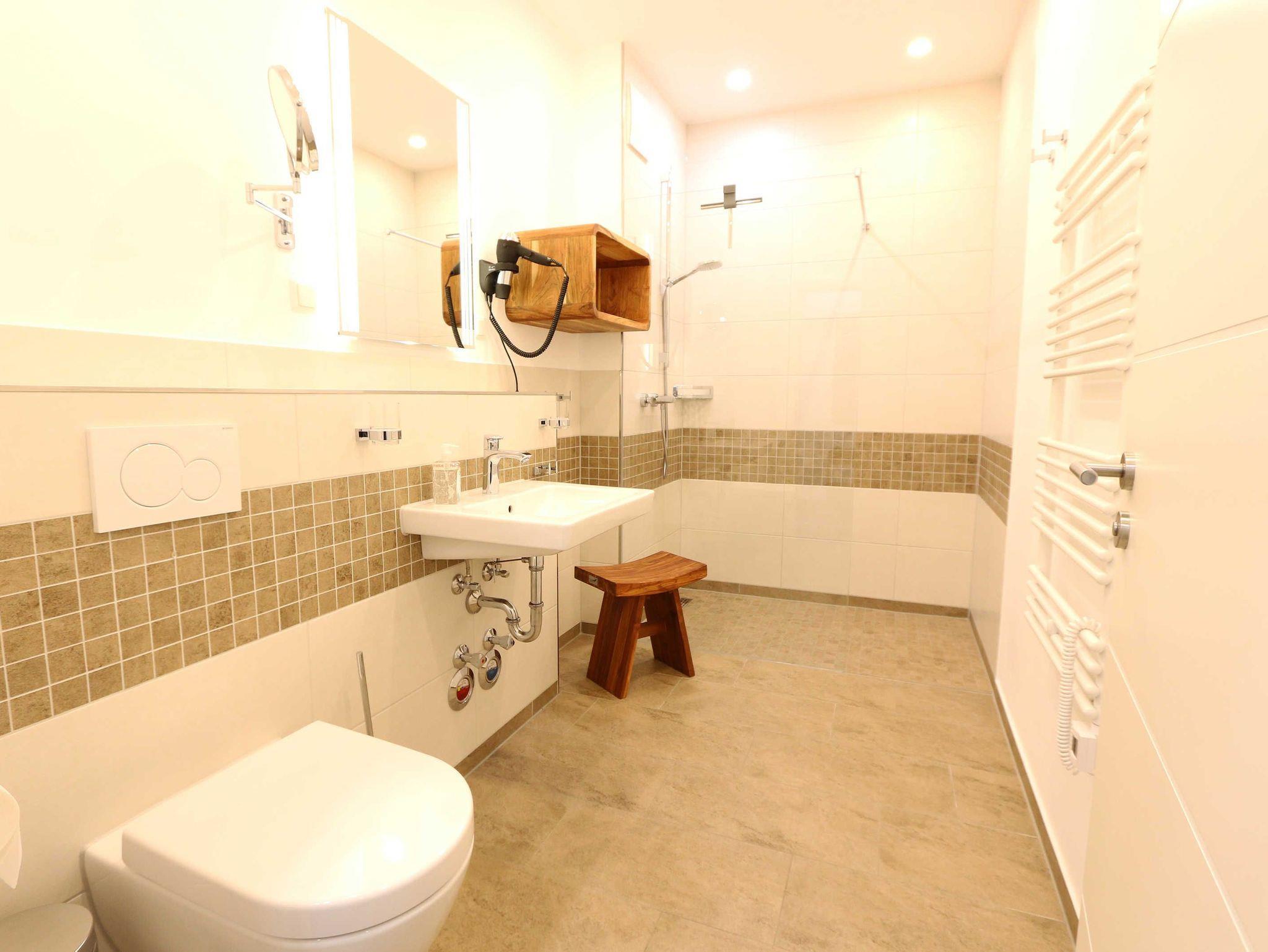 Das komfortabel und stilvoll eingerichtete Feriendomizil besticht durch viele mit Liebe zum Detail ausgesuchte Accessoires und einen traumhaften Balkonblick nach Süden auf den Lotsenberg. Die ca. 58 m² große Nichtraucherwohnung im 1. Obergeschoss ist mit Fußbodenheizung ausgestattet und bietet Ihnen Platz für 2 bis 4 Personen. Öffnen Sie die Wohnungstür und Sie betreten den hellen Flur mit Flurgarderobe nebst Sitzgelegenheit und bodentiefem Spiegel. Im vorderen Wohnbereich befindet sich eine hochwertige Küchenzeile mit Mikrowelle, Kühlschrank mit Gefrierfach, Backofen, Induktionskochfeld und Geschirrspüler. Auch Elektrogeräte wie Kaffeemaschine, Pad-Maschine (Senseo), Wasserkocher, Eierkocher, Toaster und Handmixer sowie viele andere nützliche Küchenhelfer sind hier vorhanden. Direkt dahinter fügt sich ein mit großem Eichen-Massivholztisch, modernen Freischwing-Stühlen und einer bequemen Sitzbank ausgestatteter Essbereich an. Von hier aus können Sie bereits beim Frühstück die Morgensonne durch die bodentiefen Wohnzimmerfenster genießen. Angrenzend öffnet sich der Raum zum großzügigen Wohnbereich, in dem Sie auf einer gemütlichen Sitzlandschaft - die sich mit wenigen Handgriffen zur vollwertigen Schlafgelegenheit ausklappen lässt ? entspannen können. Das komplette Ensemble, bestehend aus Couch mit Longchair (1,40 m x 2,00 m), Eiche-Couchtisch, Hockerbank und Beistelltisch mit Tischlampe im maritimen Stil, befindet sich auf der einen; ein Lowboard mit einer Spielesammlung, einem Smart-TV, Blu-Ray-Player und einer HiFi-Anlage mit Bluetooth und USB-Anschluss auf der anderen Seite. Auch auf einen Internetanschluss (WLAN) müssen Sie im Urlaub nicht verzichten. Dieser ist für Sie inklusive. In der kühlen Jahreszeit sorgt ein exklusiver Design-Kaminofen zusätzlich für wohlige Wärme. Durch die nach Süden ausgerichtete Glasfront des Wohnbereiches betreten Sie den mit Bangkirai belegten und mit einer Teakholz-Sitzgruppe möblierten Balkon mit Insektenschutzgitter und Sonnenschirm. Von hier aus genießen Sie einen herrlichen Blick ins Grüne, während Sie vor neugierigen Blicken durch eine mit Milchglas ausgefachte Edelstahl-Balkonbrüstung geschützt sind. Da sich der Balkon windgeschützt in das Obergeschoß einfügt und großzügig überdacht ist, können Sie hier auch die Abende genießen. Erholsame Ruhe finden Sie im geräumigen Schlafzimmer, in dem ein herrlich bequemes, individuell einstellbares Doppelbett (1,80 m x 2,00 m) in Komforthöhe mit verstellbaren Lattenrosten auf Sie wartet. Das elektrisch betriebene große Dachfenster, kann für einen ungestörten Schlaf völlig abgedunkelt werden und verfügt darüber hinaus über ein Insektenschutz-Rollo. Zwei Nachttischablagen mit dezenten Lampen laden zum Schmökern ein. Ein weiterer Smart-TV befindet sich hier an der Wand. In zwei großen Kleiderschränken sowie einer breiten Schubkastenkommode und auf 2 Herrendienern findet Ihre Kleidung Platz. Das geräumige, innenliegende Bad verfügt über eine große und bodentiefe Echtglas-Dusche, WC, einen Kosmetikspiegel, einen Fön, Ablageflächen und neben der Fußbodenheizung auch über einen elektrischen Handtuchtrockner. Im Abstellraum finden Sie unter anderem Staubsauger, Aschesauger für den Kamin, diverse Reinigungsutensilien, Wäscheständer sowie Balkonauflagen. Haustiere sind nicht erlaubt. Ihr PKW steht auf einem zur Wohnung gehörenden Stellplatz Nr. 06. Ihre mitgebrachten oder auch geliehenen Fahrräder sowie Strandutensilien und Co. können Sie im eigenen Schuppen aufbewahren. Hier befindet sich auch eine Anschlussmöglichkeit zum Aufladen von Ihren E-Bikes. Die Erstausstattung eines Wäschepaketes (komplette Bettwäsche, 1 Duschhandtuch, 2 kleine Handtücher) können Sie bis 14 Tage vor Anreise gegen einen Aufpreis dazu buchen oder durch eigene ergänzen. Ab 2 gebuchten Paketen erhalten Sie einmalig 1 Geschirrhandtuch und 1 Duschvorleger hinzu.