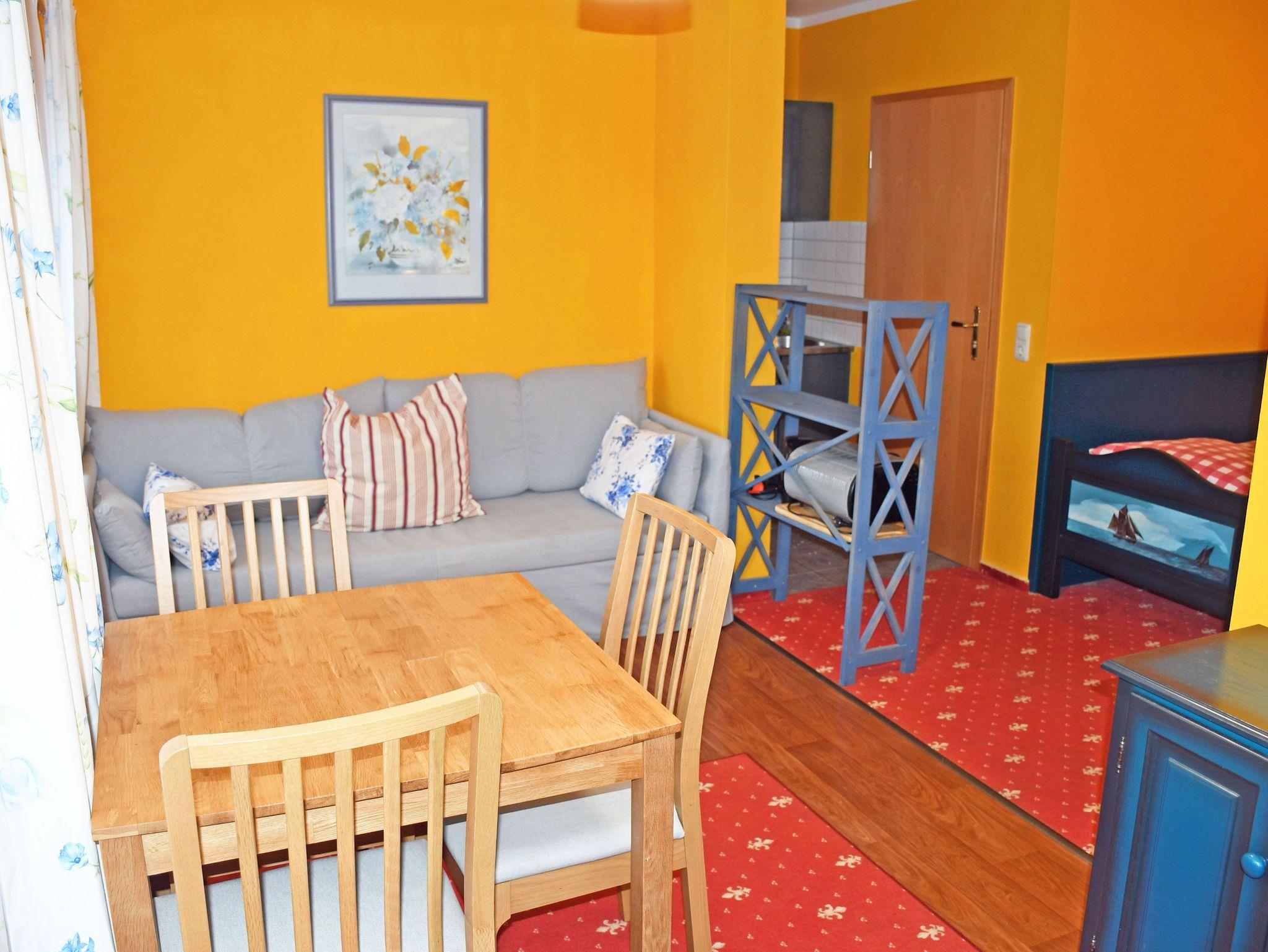 Dieses Ferienappartement erreichen Sie über den Hintereingang und liegt im Obergeschoss. Sie ist ca. 30 qm groß, bietet Platz für maximal 3 Erwachsene und wurde modern eingerichtet. Das 1-Raum-Appartement ist unterteilt in Schlaf,- Wohn- und Küchenbereich.