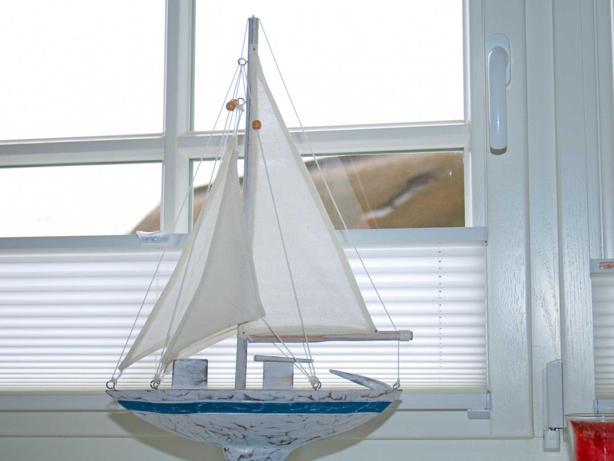 Die liebevoll eingerichtete Ferienwohnung Vilmblick (DG) mit ausgebautem Spitzboden, verfügt über einen großzügigen und maritim eingerichteten Wohnbereich mit einladenden Fledermausgauben für einen außergewöhnlichen Rundumblick für bis zu vier Personen.