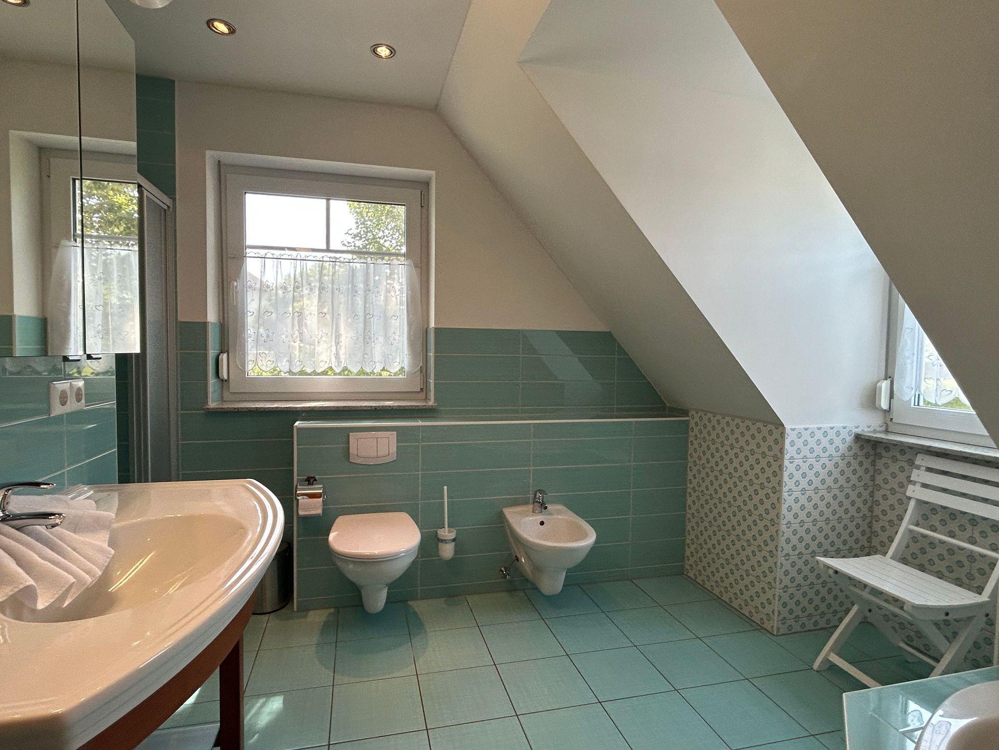 Im Erdgeschoss befindet sich ebenfalls ein Badezimmer mit Dusche und WC.