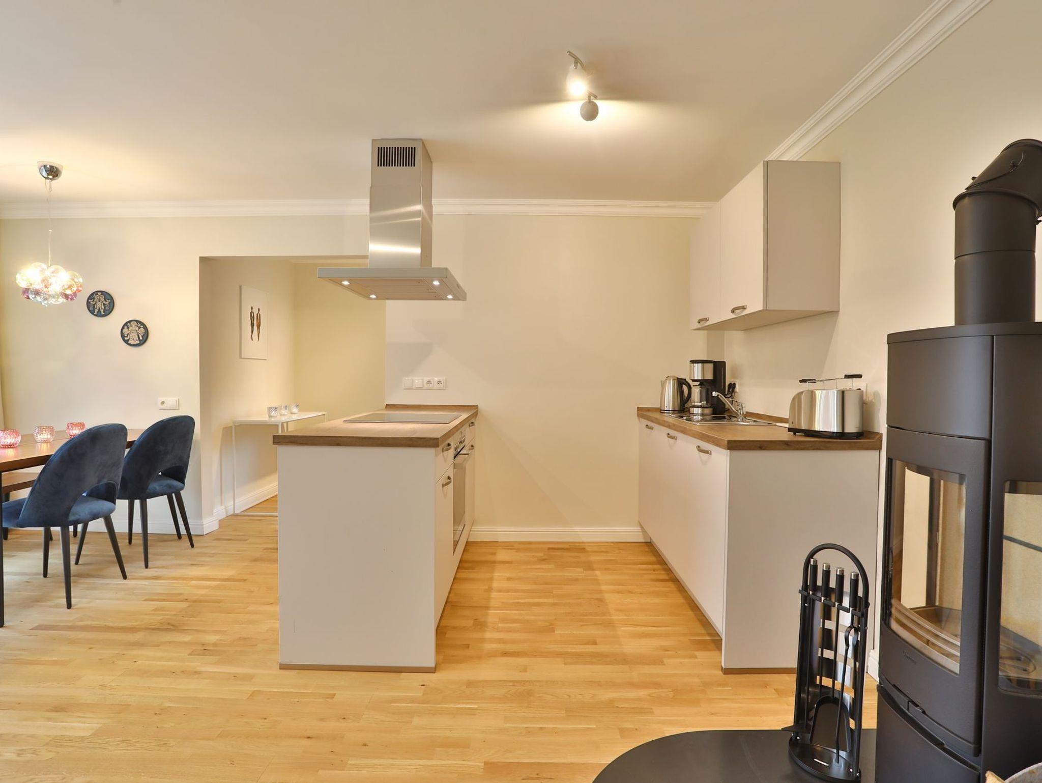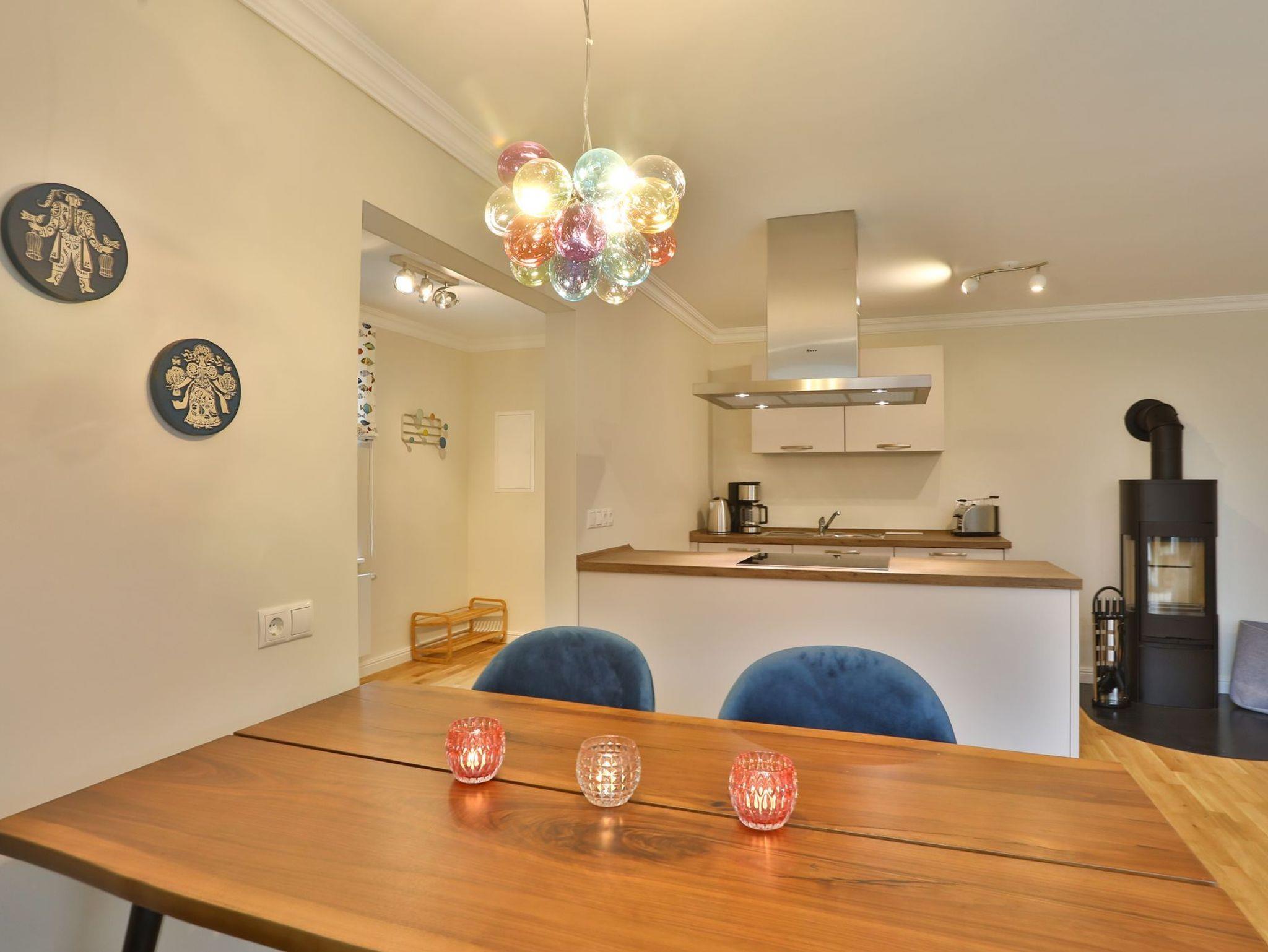 Die Ferienwohnung Mammutbaum verfügt über einen offenen, gemütlichen und modernen Wohn- und Essbereich, 2 Schlafzimmer und 1 Badezimmer. Vom Wohn- und Essbereich aus gelangen Sie durch ein großes Fensterschiebeelement auf eine Terrasse, die durch eine Rosenhecke abgegrenzt ist. Ein ganz besonderes Wohlfühlambiente erhält die Ferienwohnung durch die teilweise, alten und sehr gut erhaltene Balkenlage. Ausgestattet mit einem Kaminofen strahlt die Ferienwohnung auch im Herbst und Winter vor allem nach langen und ausgiebigen Spaziergängen eine Wohlfühlatmosphäre aus.