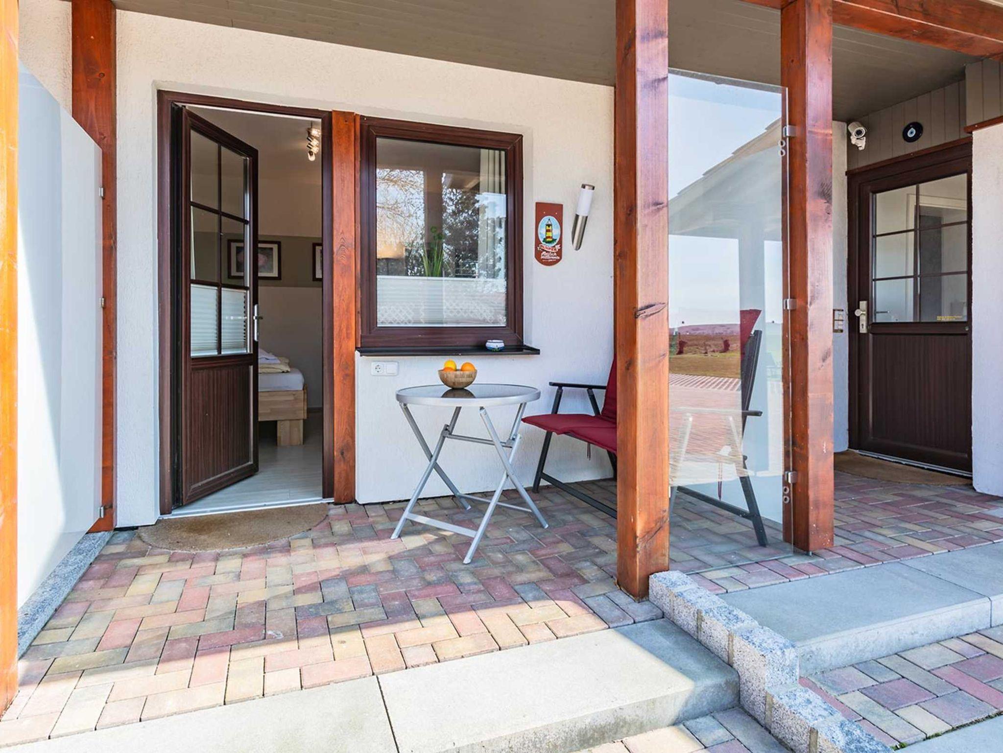 Auf einer kleinen Terrasse vor Ihrer Wohnung können Sie den Ausblick zum Deich genießen. Das WLAN ist ebenso kostenfrei wie ein Parkplatz am Haus.