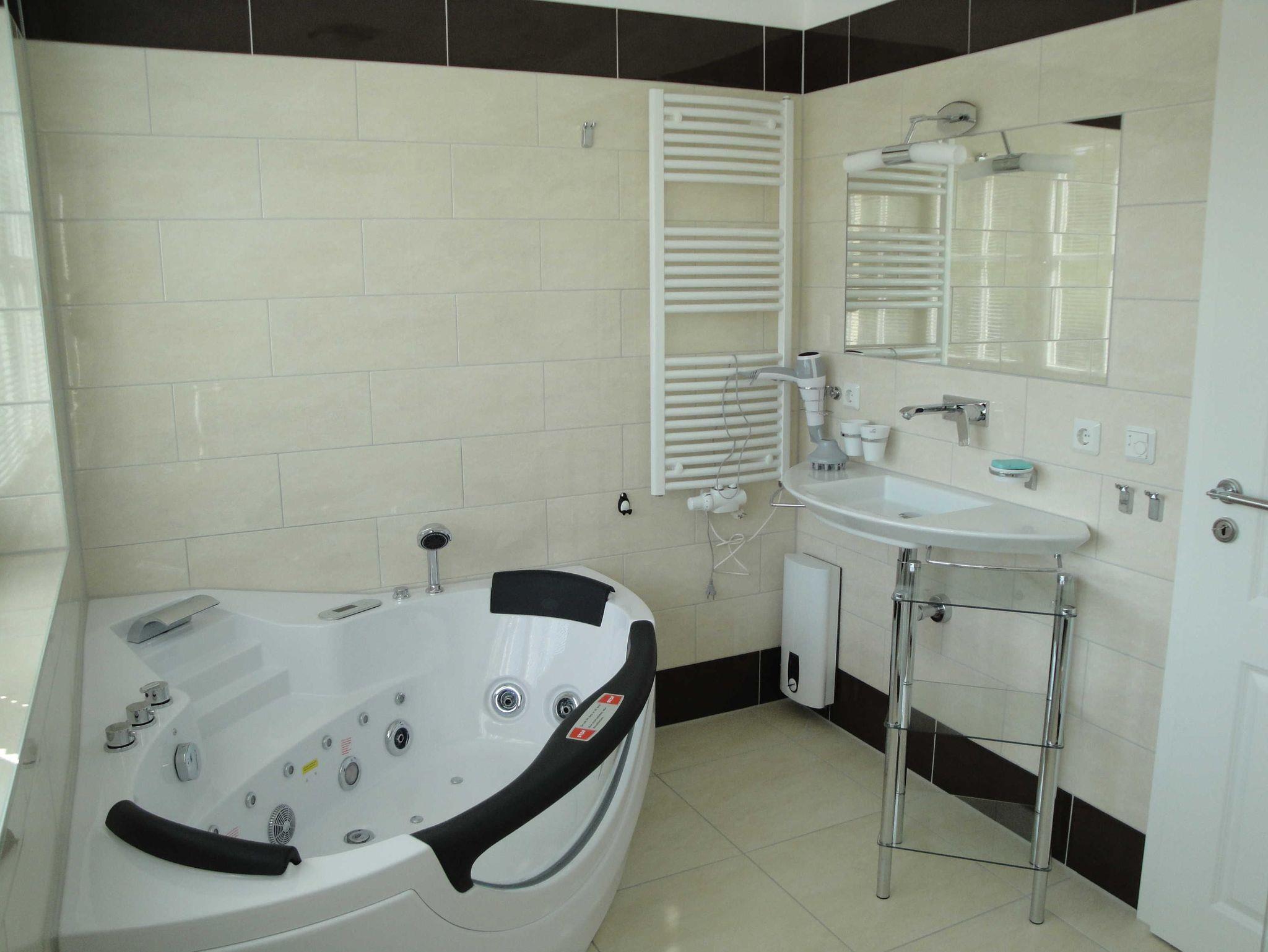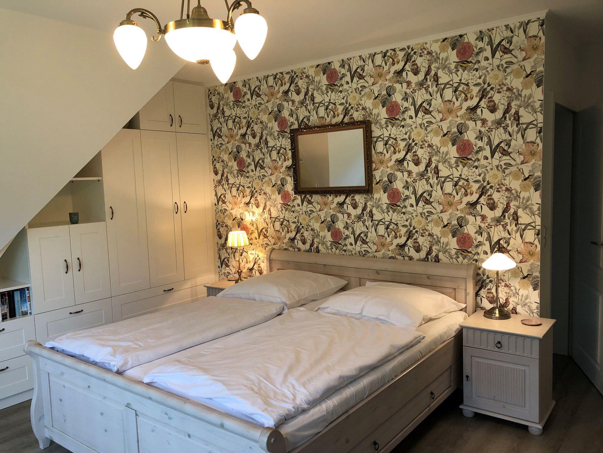 Im Obergeschoss und offenem Spitzboden haben Sie 3 Schlafzimmer mit insgesamt 6 Betten und ein weiteres Bad mit Dusche, WC, Waschtisch und Whirlpool.