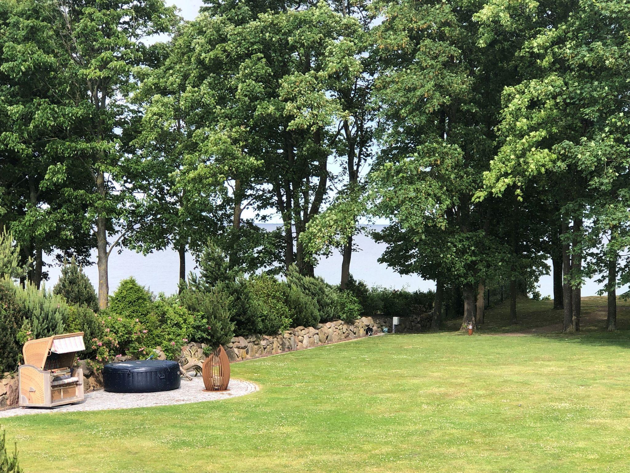 Auf dem riesigen Grundstück haben Sie verschiedene Sitzecken, Strandkorb, Gartenmöbel, Liegen und einen Grillplatz mit weiterer Sitzecke sowie ein Spielhaus im kleinen eigenen Küstenwald.