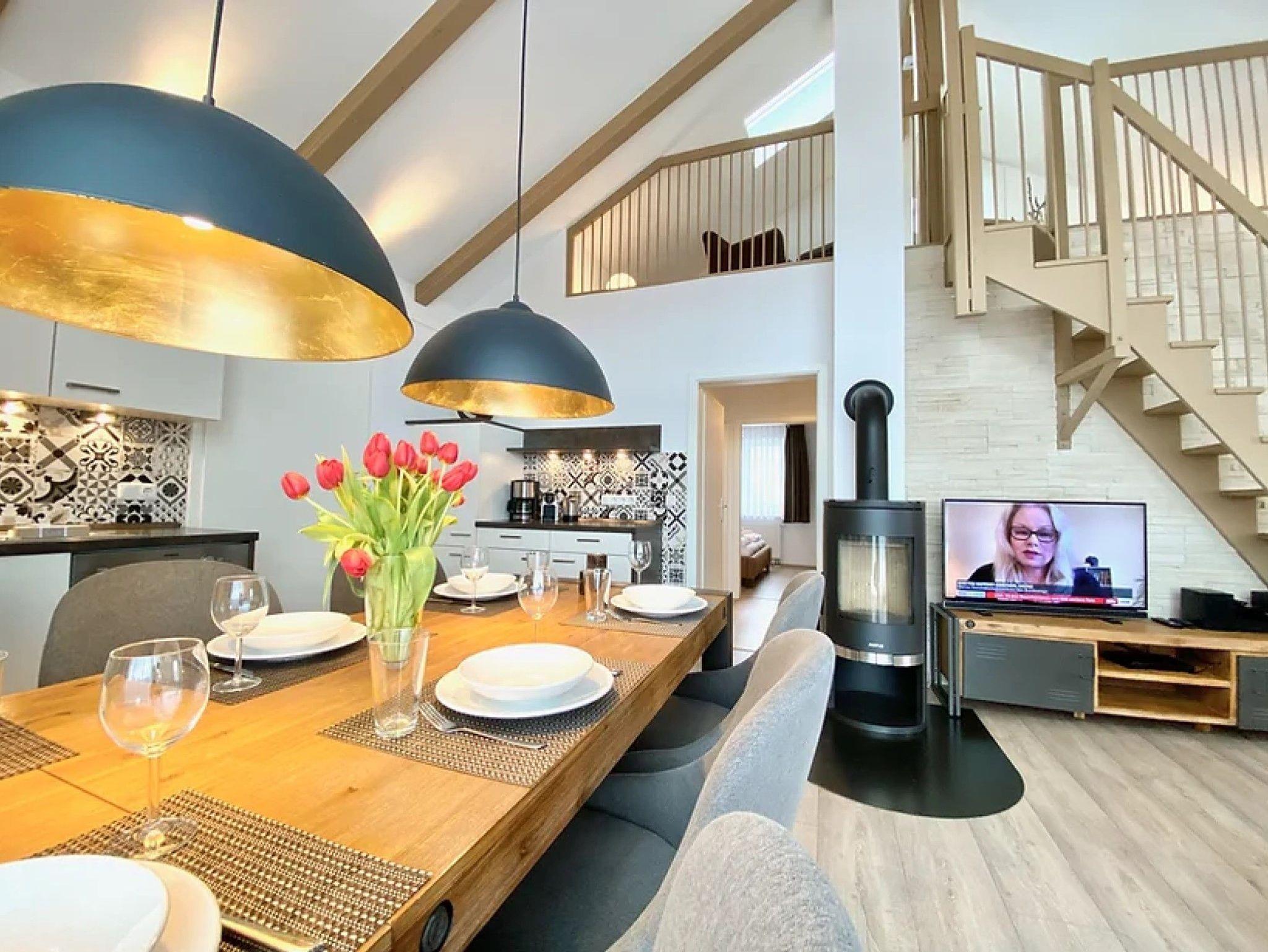 • Großzügiges Wohn- und Esszimmer mit Fußbodenheizung und offener Galerie mit Lesesessel