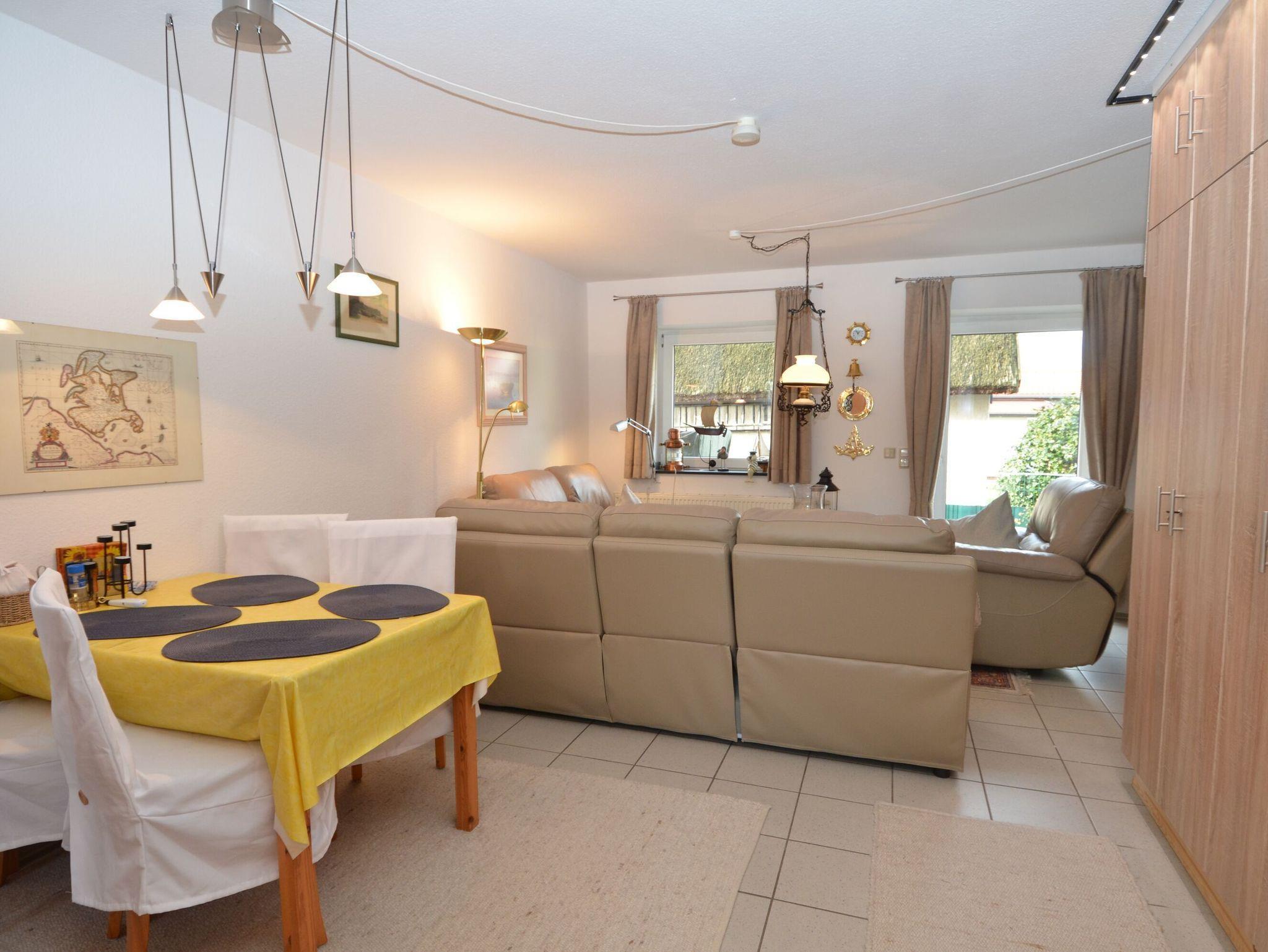 Dieses Appartement im gemütlichen Landhausstil verfügt im Erdgeschoss über eine Terrasse, einen Wohnraum mit Couchecke, einen Flachbild-TV, Radio, CD-Player und einen Esstisch für 4 Personen.
