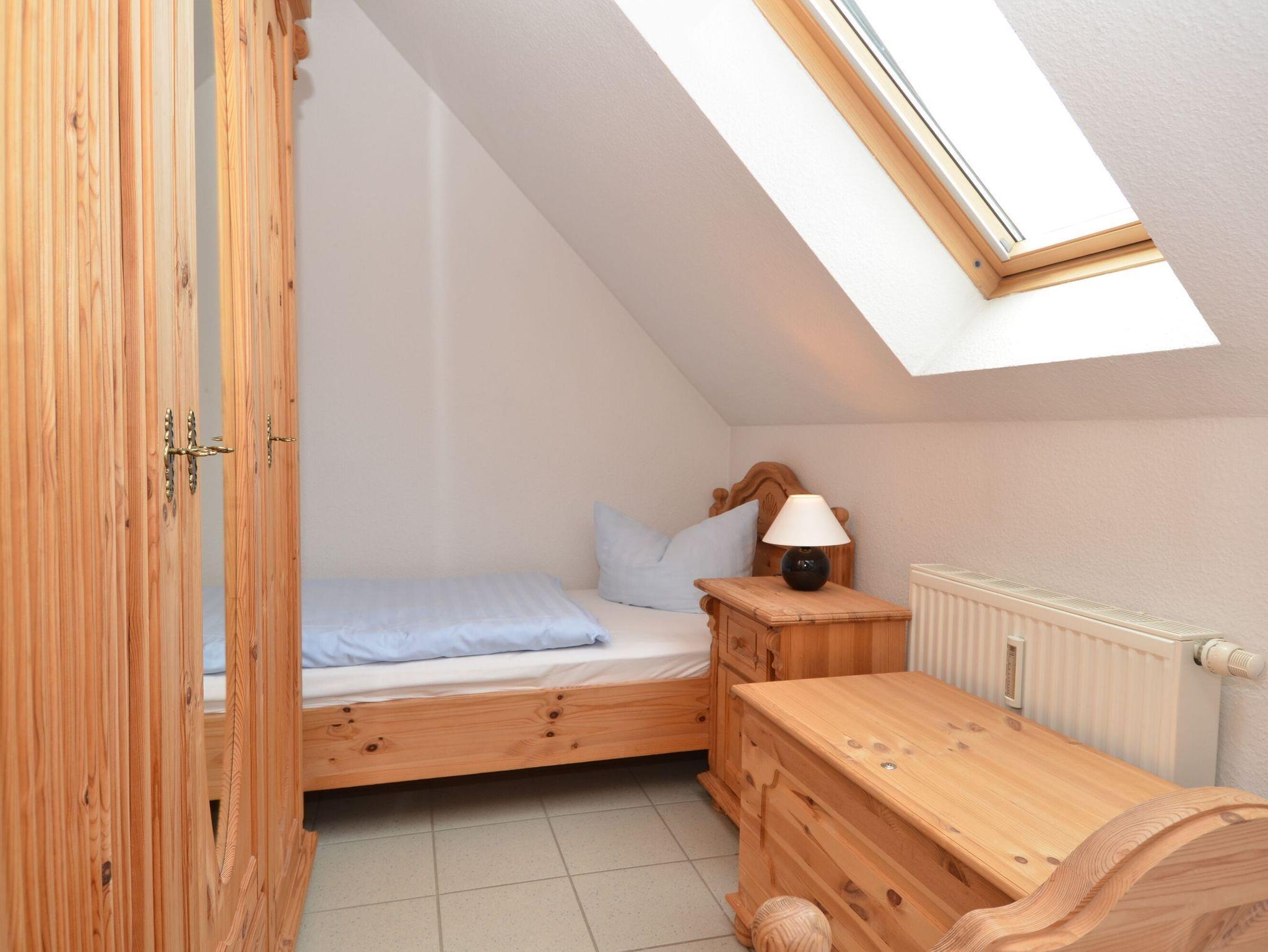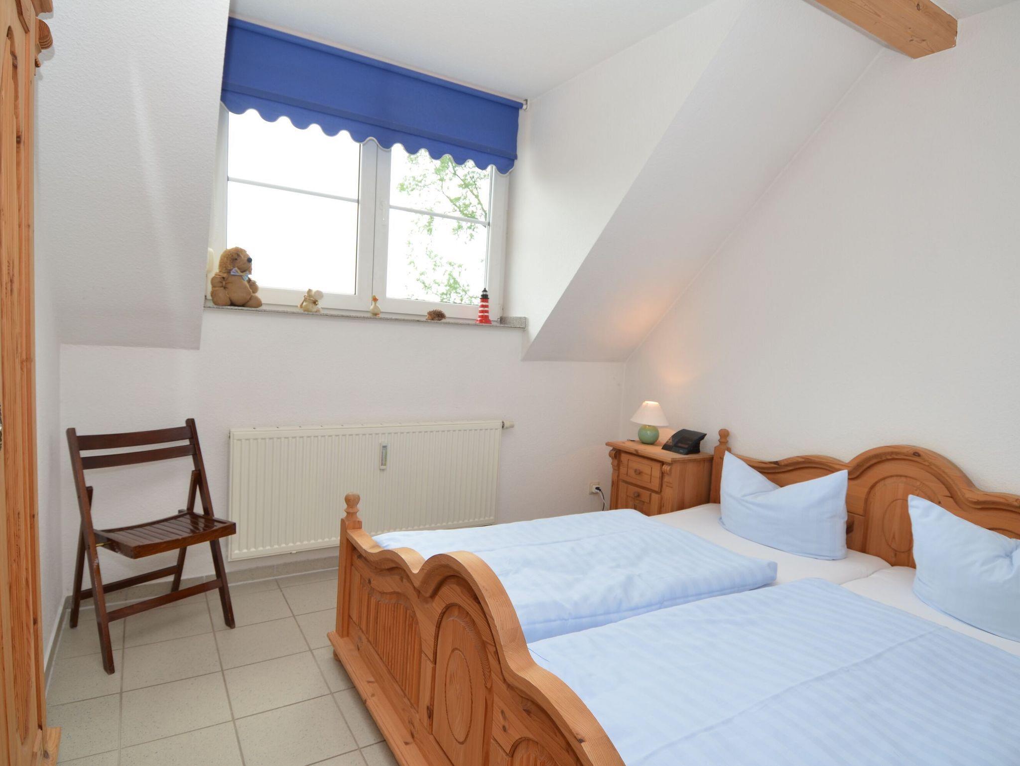 Über eine Treppe gelangen Sie in das Obergeschoss mit den beiden Schlafzimmern - eines davon mit Doppelbett, das andere mit zwei Einzelbetten. Die Dachschrägen vermitteln besondere Gemütlichkeit. Ein Kinderreisebett ist vorhanden.