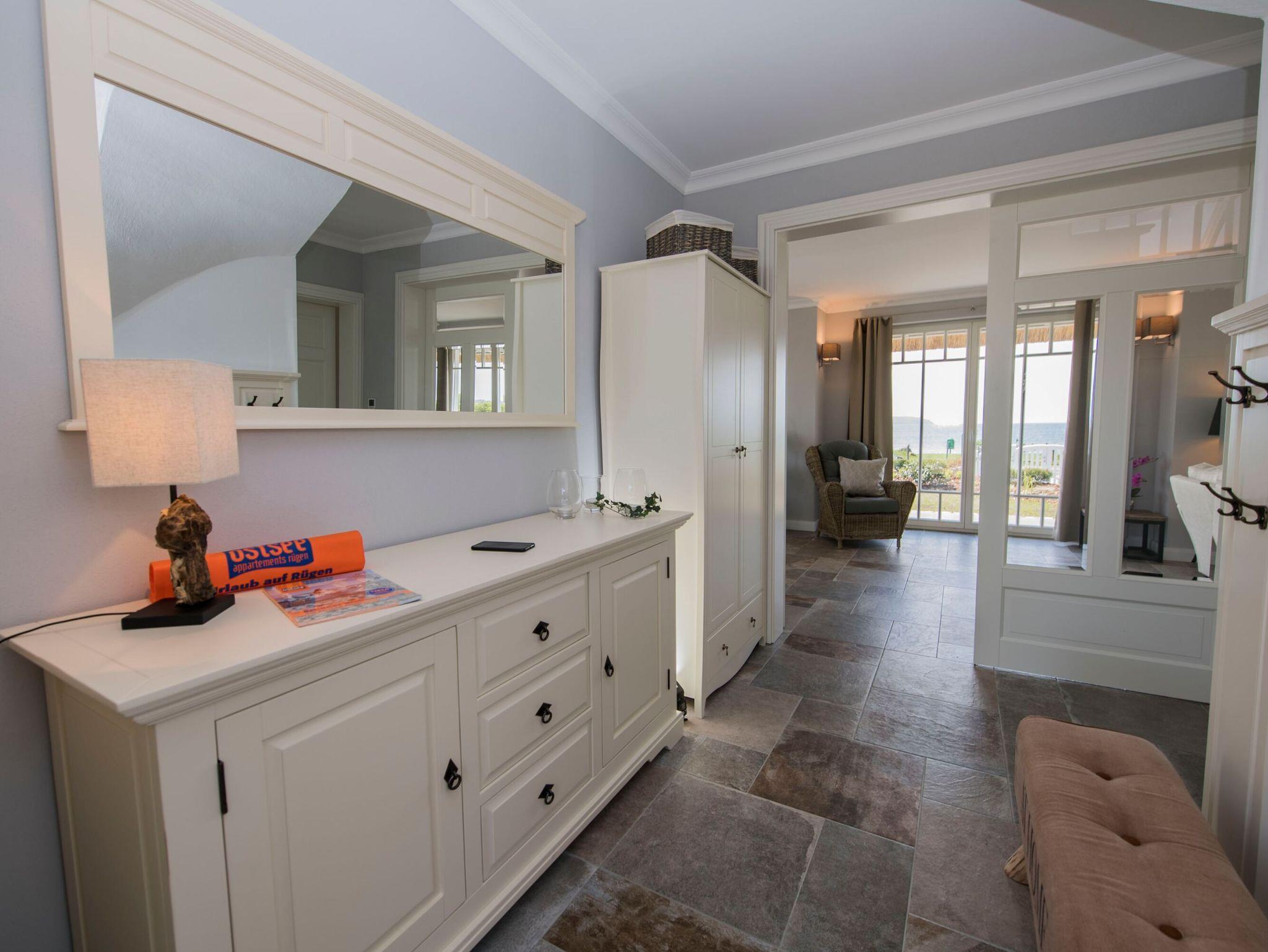 Die großzügige, umlaufende Terrasse mit einem Strandkorb vervollständigt den hervorragenden Gesamteindruck. Die Balkon- bzw. Terrassenmöbel stehen saisonal - in der Regel von Mai bis Ende September - zur Verfügung.