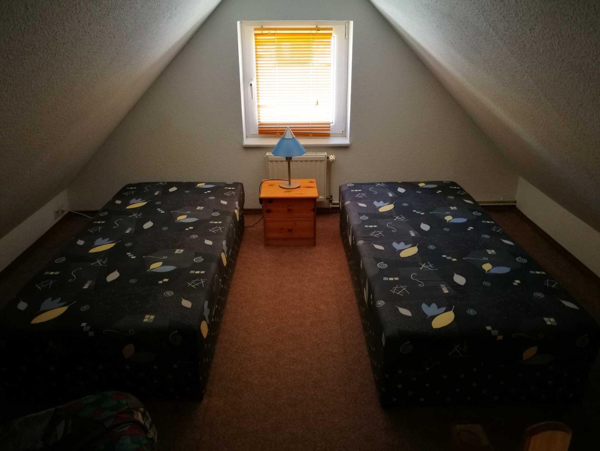 Unsere Ferienwohnungen befinden sich im Obergeschoß unseres Hauses. Fewo De Grote (groß) bietet Platz für bis zu 5 Personen. Sie besteht aus einem gemütlich eingerichteten Wohnzimmer mit der Sitzgruppe und dem Essbereich, dem Elternschlafzimmer mit Doppelbett und einem Einzelbett, sowie dem zweiten Schlafzimmer im Spitzboden mit zwei Einzelbetten, Bad mit DU/WC. Eine Terrasse mit der Möglichkeit zum Grillen steht Ihnen auch zur Verfügung.
