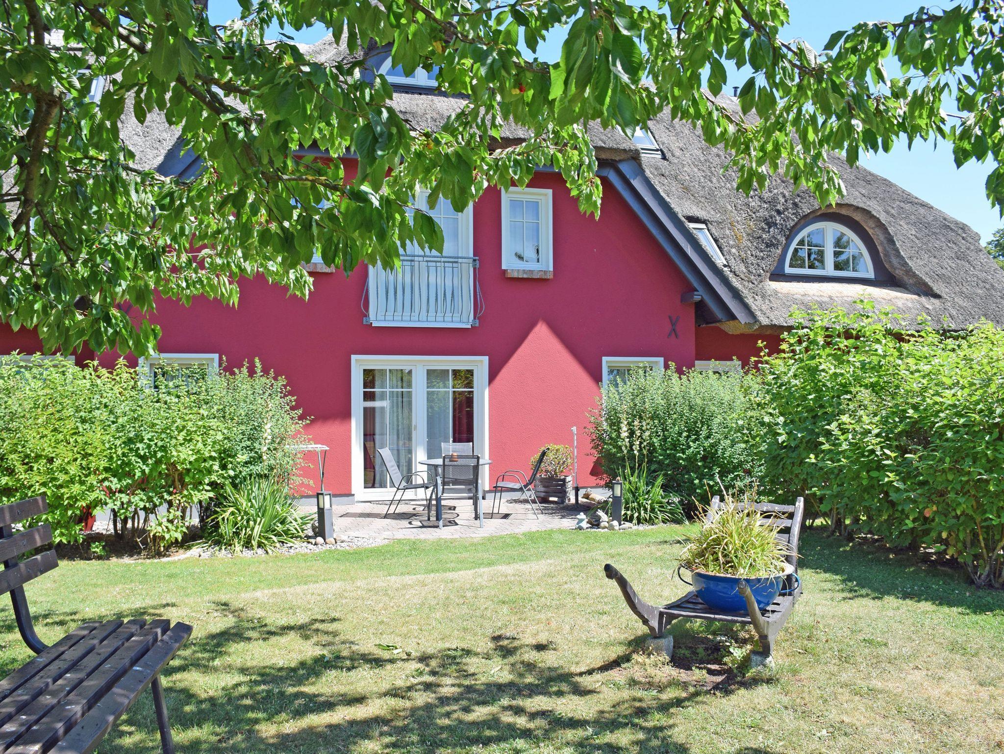 Das gesamte großflächige Grundstück steht dem Urlauber zur Verfügung und wurde von uns bis ins Detail liebevoll gestaltet. Auch für Familien mit Kindern gibt es viele Angebote: Piratenboot, Wippe, Tischtennisplatte, Fußball und vieles mehr. Die Appartements im Untergeschoß verfügen über eine eigene Terrasse mit Tisch und Stühlen, zu der man durch die Verandatür gelangt. Für die Gäste aus dem oberen Stockwerk sind ausreichend gemütliche Sitzecken im Garten eingerichtet. Ist man einmal strandmüde, stehen hier auf dem Rasen eigene Strandkörbe für das Sonnenbad am Landhus zur Verfügung. Hier können Sie in einer ruhigen Ecke des Grundstücks, mit Blick auf den Bodden und die Hügelkette des Großen Zicker, gut entspannen.