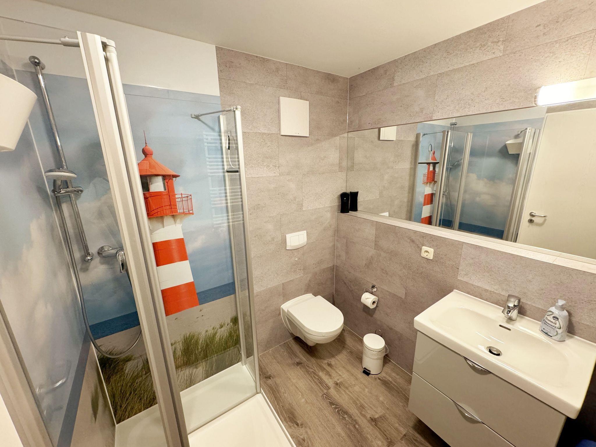 Die Nichtraucherwohnung Nr. 04 im Haus Inselperle bietet mit Ihren ca. 30 m² Platz für max. 2 Erwachsene. Der großzügige Koch- und Essbereich, welchen Sie über den Eingang betreten, ist ausgestattet mit einer vollständig eingerichteten Küchenzeile mit 4 Zonencerankochfeld, Geschirrspüler, Backofen, Kühlschrank mit Gefrierfach, Toaster, Mikrowelle, Wasserkocher, Kaffeemaschine, Padmaschine (Dolce Gusto) sowie diverse kleine Küchenhelfer. Ein angrenzender Esstisch rundet den Bereich ab. Über den kleinen Flur erreichen Sie das innenliegende Badezimmer welches mit WC, Dusche, Waschtisch mit Unterschrank, Fön, Kosmetikspiegel, großem Wandspiegel, Handtuchheizkörper und einem Ablageregal ausgestattet ist. Im daran folgenden Wohn- /Schlafbereich, welcher komplett mit einem hochwertigen Teppich verlegt wurde, erwartet Sie ein großes Doppelbett mit Einzelmatratzen (1,80 m x 2,10 m), Nachttischablagen mit Leselampen sowie einen geräumigen Kleiderschrank mit Safe für Ihre Wertsachen. Vom Bett aus erwartet Sie ein traumhafter Blick direkt über die großzügige Freifläche des Hauses aufs Wasser. Für einen erholsamen Schlaf sorgen die Verdunklungsgardinen. Zusätzlich steht Ihnen hier ein Sideboard, Stehlampe und eine kleine Sitzmöglichkeit zur Verfügung. Ein Smart-TV (43 Zoll), Mini-Stereoanlage mit CD-Player, MP3, USB und Bluetooth mit NFC sowie ein inklusiver WLAN-Anschluss runden den technischen Bereich ab. Genießen Sie Ihr Frühstück auf Ihrer bestuhlten Terrasse bei herrlichem Sonnenschein oder die Abende bei einem gemütlichen Grillabend mit dem zur Verfügung stehenden Standgrill. Ein Sonnenschirm komplettiert Ihre Terrasse (Süd/Ost). Bitte beachten Sie jedoch, dass das Grillen auf den Holzterrassen aus brandschutztechnischen Gründen nicht erlaubt ist. Hier finden Sie aber ausreichend Platz auf dem Außengelände, welches auch über einen kleinen Kinderspielplatz, Sandkiste und einer Tischtennisplatte verfügt. Haustiere sind nicht erlaubt. Sollte Ihnen doch einmal Strandsand ins Haus geraten oder etwas runterfallen, ist jede Wohnung mit einem Staubsauger und anderen Reinigungsgeräten ausgestattet. Ihre mitgebrachten Fahrräder (max. 2 ) können Sie in der Fahrradbox 2 sicher verschließen. Die Grünfläche des Hauses lädt zu geselligen Abenden mit weiteren Hausgästen ein. Ein PKW-Stellplatz (Nr.04) steht Ihnen inklusive am Haus zur Verfügung. Die Erstausstattung eines Wäschepaketes (komplette Bettwäsche, 1 Duschhandtuch, 1 kleines Handtuch, 1 Duschvorleger) können Sie bis 14 Tage vor Anreise gegen einen Aufpreis dazu buchen oder durch eigene ergänzen. 1 Geschirrhandtuch gehört zu jedem Aufenthalt dazu.