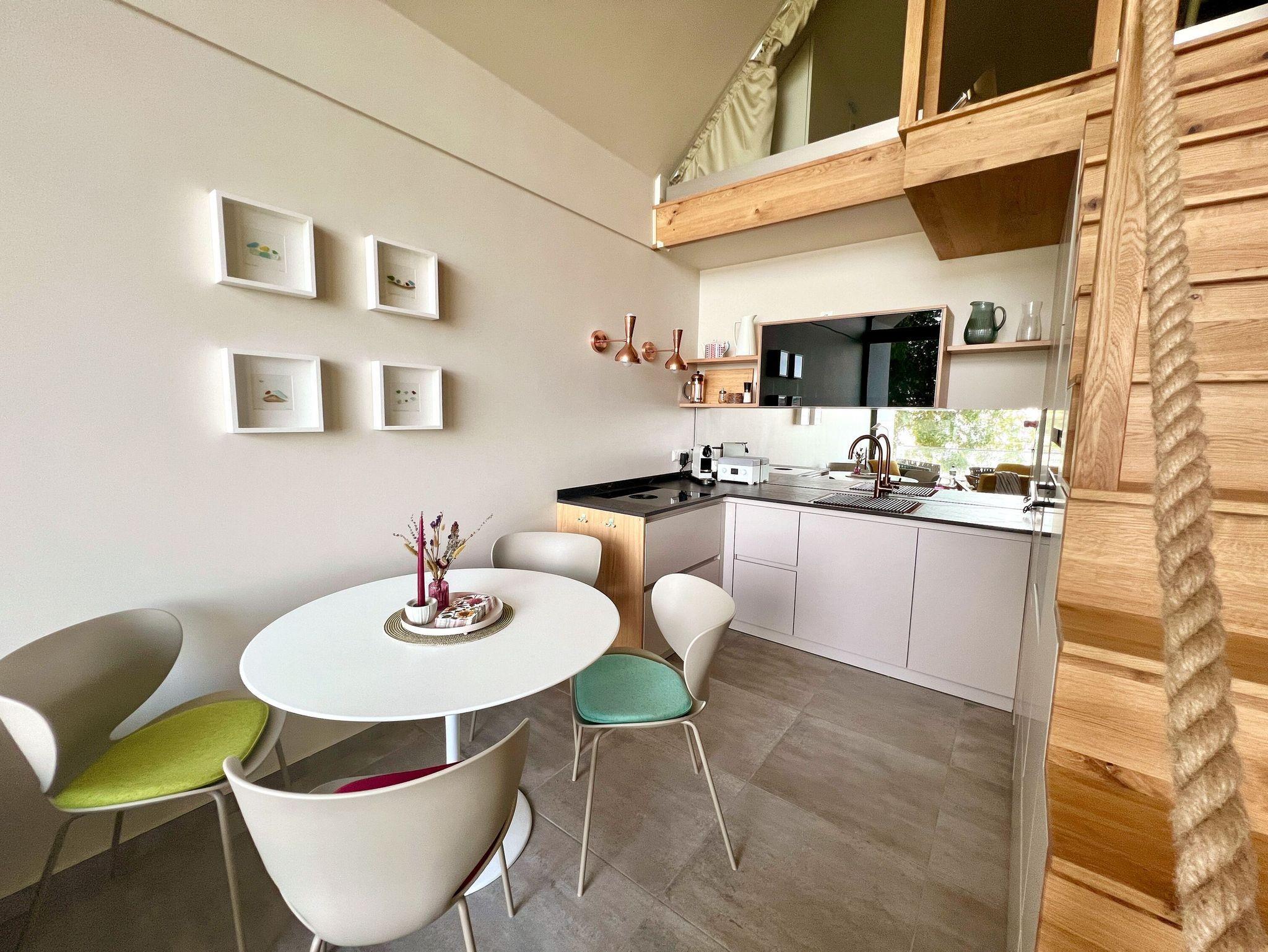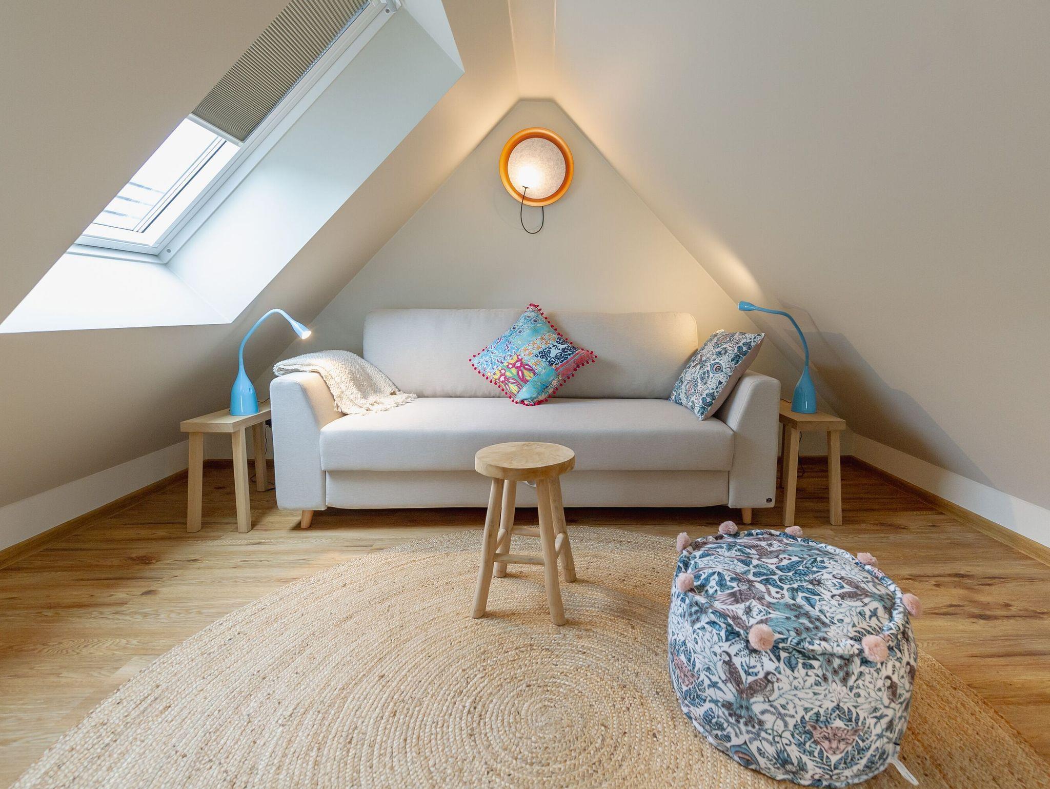 *ACHTUNG: Die Treppe zur Galerie entspricht nicht den DIN-Normen und ist nicht kindgerecht! Deshalb wird die Wohnung ausschließlich an Erwachsene bzw. Gäste mit Kindern ab 12 Jahren und unter Ausschluss einer Haftung vermietet.