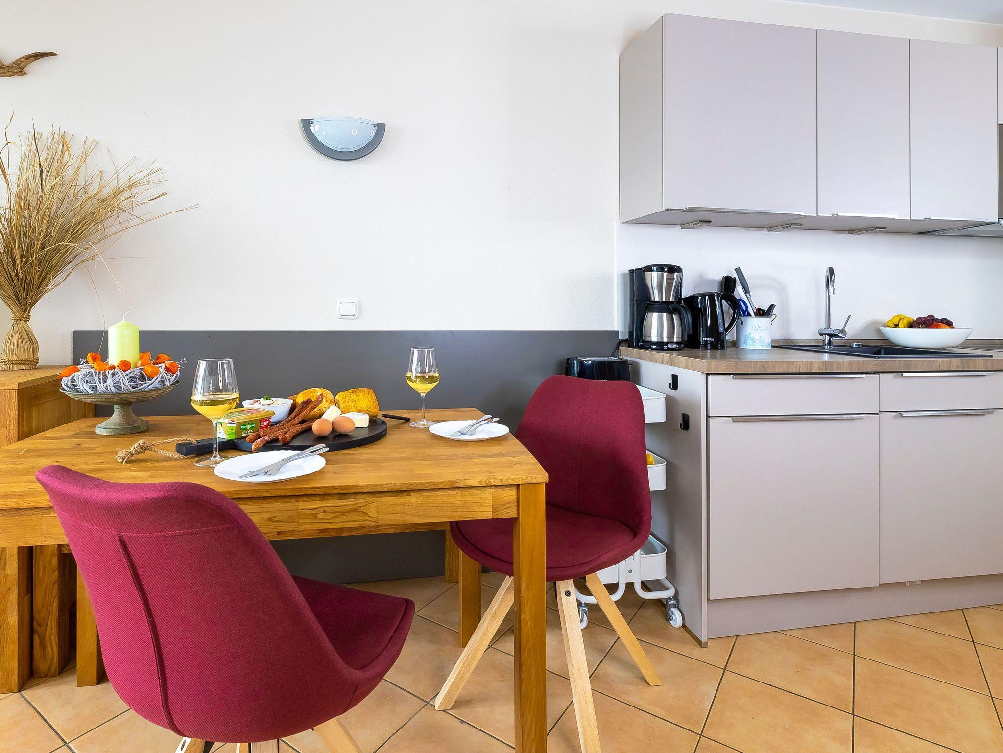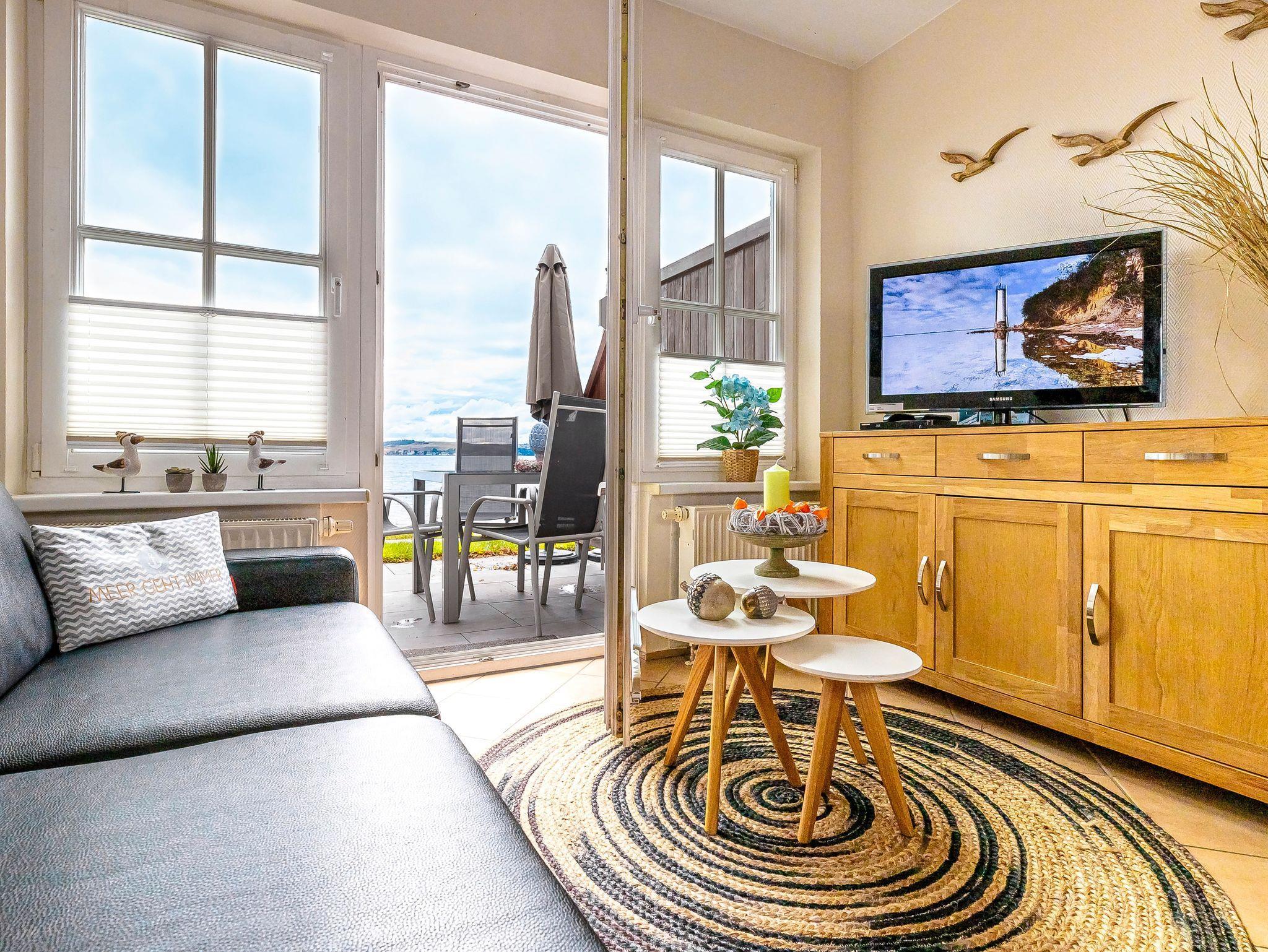 Die modern und liebevoll eingerichtete Wohnung 2 im Haus Seeblick im Maisonette-Stil verfügt über eine sonnige Terrasse mit offenem Seeblick, zwei separate Schlafbereichen im Obergeschoss, sowie einem hellen Wohnbereich mit offener Küchenzeile. Sie umfasst ca. 42qm. Genießen Sie einen unverwechselbaren Seeblick ? direkt beim Aufstehen! Der komfortable Wohnbereich mit Couch + Couchtisch, einen Sessel, einer Stehlampe, eine Kommode mit Flachbild-TV sowie ein Regal bietet Ihnen einen gemütlichen Ort zum Ausklingen der erlebnisreichen Tage auf der Halbinsel Mönchgut. Von hier aus gelangen Sie auf die sonnige und bestuhlte Terrasse (Süden) mit Sonnenschirm und einem einzigartigen Seeblick. Angrenzend befindet sich eine offene und voll ausgestattete Küchenzeile mit Spülmaschine, Kühlschrank mit Eisfach, Dunstabzugshaube, Wasserkocher, Kaffeemaschine, Nespresso Maschine, Toaster, Induktionsfeld und Mikrowelle und ein Essplatz. Im Obergeschoss befinden sich die beiden Schlafräume, die jeweils mit einem komfortablen Doppelbett (1,80m x 2,00m) und Kleiderschrank ausgestattet sind. Auf der unteren Ebene befindet sich das freundliche Tageslicht-Bad mit einer ebenerdigen Dusche, ein WC, ein Fön sowie ein Waschplatz mit dazugehörigem Spiegel. Für unsere kleinen Gäste steht ein Hochstuhl sowie ein Kinderreisebett (ohne Bett Inlett/inkl. Matratze) zur Verfügung. Auch ein 4-Beiner ist mit seinem eigenen Schlafplatz gegen eine Gebühr ein gern gesehener Gast. Eine Fahrrad-Unterstellmöglichkeit steht Ihnen und allen Gästen des Hauses zur gemeinschaftlichen Nutzung kostenfrei zur Verfügung. Ihr PKW-Stellplatz befindet sich knapp 100m vom Haus entfernt und ist für Sie inklusive. Die Erstausstattung eines Wäschepaketes (komplette Bettwäsche, 1 Duschhandtuch, 2 kleine Handtücher) können Sie bis 14 Tage vor Anreise gegen einen Aufpreis dazu buchen oder durch eigene ergänzen. Ab 2 gebuchten Paketen erhalten Sie einmalig 1 Geschirrhandtuch und 1 Duschvorleger hinzu.