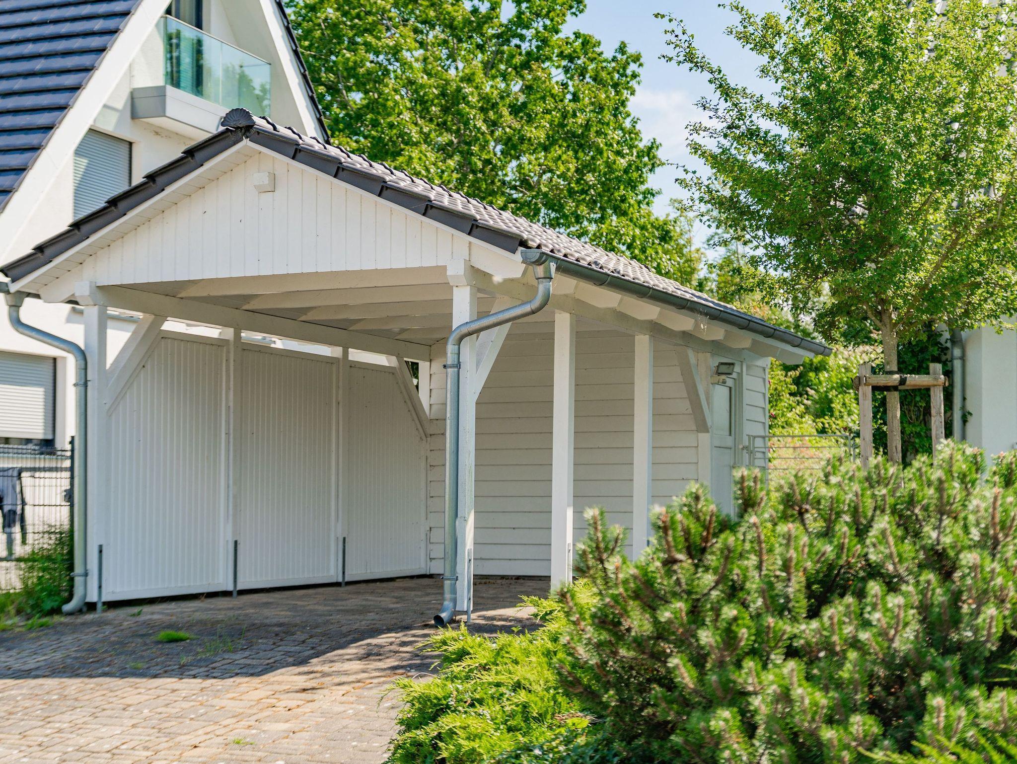 Das Haus erstreckt sich über zwei Etagen und empfängt Sie mit einem großzügigen, hellen Eingangsbereich, Garderobe, Abstellraum und Gäste-WC. Über eine Glastür gelangen Sie in den offenen Wohn- und Kochbereich. Die große, U-förmige Küche ist voll ausgestattet vom Cerankochfeld über Geschirrspüler bis zur Kaffeemaschine und lädt zum gemeinsamen Kochen ein.