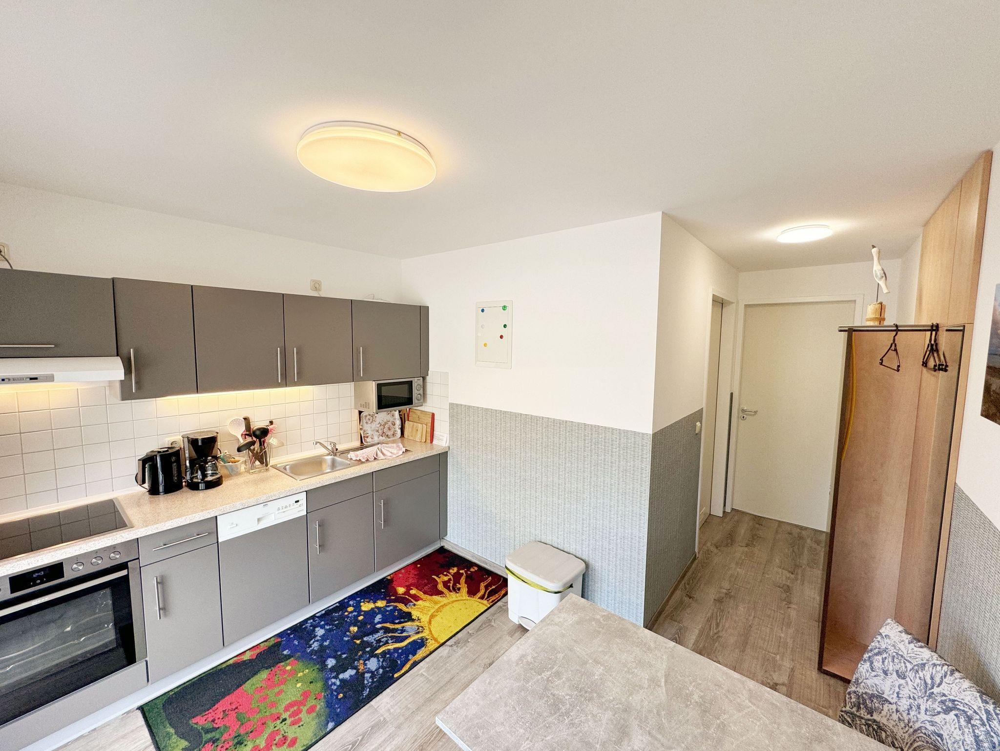 Die Nichtraucherwohnung Nr. 02 im Haus Inselperle bietet mit Ihren ca. 30 m² Platz für max. 2 Erwachsene. Der großzügige Koch- und Essbereich, welchen Sie über den Eingang betreten, ist ausgestattet mit einer vollständig eingerichteten Küchenzeile mit 4 Zonencerankochfeld, Geschirrspüler, Backofen, Kühlschrank mit Gefrierfach, Toaster, Mikrowelle, Wasserkocher, Kaffeemaschine, Padmaschine (Dolce Gusto) sowie diverse kleine Küchenhelfer. Ein angrenzender Esstisch rundet den Bereich ab. Über den kleinen Flur erreichen Sie das innenliegende Badezimmer welches mit WC, Dusche, Waschtisch mit Unterschrank, Fön, Kosmetikspiegel, großem Wandspiegel, Handtuchheizkörper und einem Ablageregal ausgestattet ist. Im daran folgenden Wohn- /Schlafbereich, welcher komplett mit einem hochwertigen Teppich verlegt wurde, erwartet Sie ein großes Doppelbett mit Einzelmatratzen (1,80 m x 2,10 m), Nachttischablagen mit Leselampen sowie einen geräumigen Kleiderschrank mit Safe für Ihre Wertsachen. Für einen erholsamen Schlaf sorgen die Verdunklungsgardinen. Zusätzlich steht Ihnen hier ein Sideboard, Stehlampe und eine kleine Sitzmöglichkeit zur Verfügung. Ein Smart-TV (43 Zoll), Mini-Stereoanlage mit CD-Player, MP3, USB und Bluetooth mit NFC sowie ein inklusiver WLAN-Anschluss runden den technischen Bereich ab. Genießen Sie Ihr Frühstück auf Ihrer bestuhlten Terrasse bei herrlichem Sonnenschein oder die Abende bei einem gemütlichen Grillabend mit dem zur Verfügung stehenden Standgrill. Ein Sonnenschirm komplettiert Ihre Terrasse (Süd/Ost). Bitte beachten Sie jedoch, dass das Grillen auf den Holzterrassen aus brandschutztechnischen Gründen nicht erlaubt ist. Hier finden Sie aber ausreichend Platz auf dem Außengelände, welches auch über einen kleinen Kinderspielplatz, Sandkiste und einer Tischtennisplatte verfügt. Ein Haustier ist gegen eine Gebühr bei uns ein gern gesehener Gast. Da Haustiere erfahrungsgemäß Ihre eigenen Sachen lieben, bringen Sie hier bitte Schlafkörbchen, Wasser- und Fressnapf mit. Sollte Ihnen doch einmal Strandsand ins Haus geraten oder etwas runterfallen, ist jede Wohnung mit einem Staubsauger und anderen Reinigungsgeräten ausgestattet. Ihre mitgebrachten Fahrräder (max. 2 ) können Sie in der der Fahrradbox 1 sicher verschließen. Die Grünfläche des Hauses lädt zu geselligen Abenden mit weiteren Hausgästen ein. Ein PKW-Stellplatz (Nr.02) steht Ihnen inklusive am Haus zur Verfügung. Die Erstausstattung eines Wäschepaketes (komplette Bettwäsche, 1 Duschhandtuch, 1 kleines Handtuch, 1 Duschvorleger) können Sie bis 14 Tage vor Anreise gegen einen Aufpreis dazu buchen oder durch eigene ergänzen. 1 Geschirrhandtuch gehört zu jedem Aufenthalt dazu.