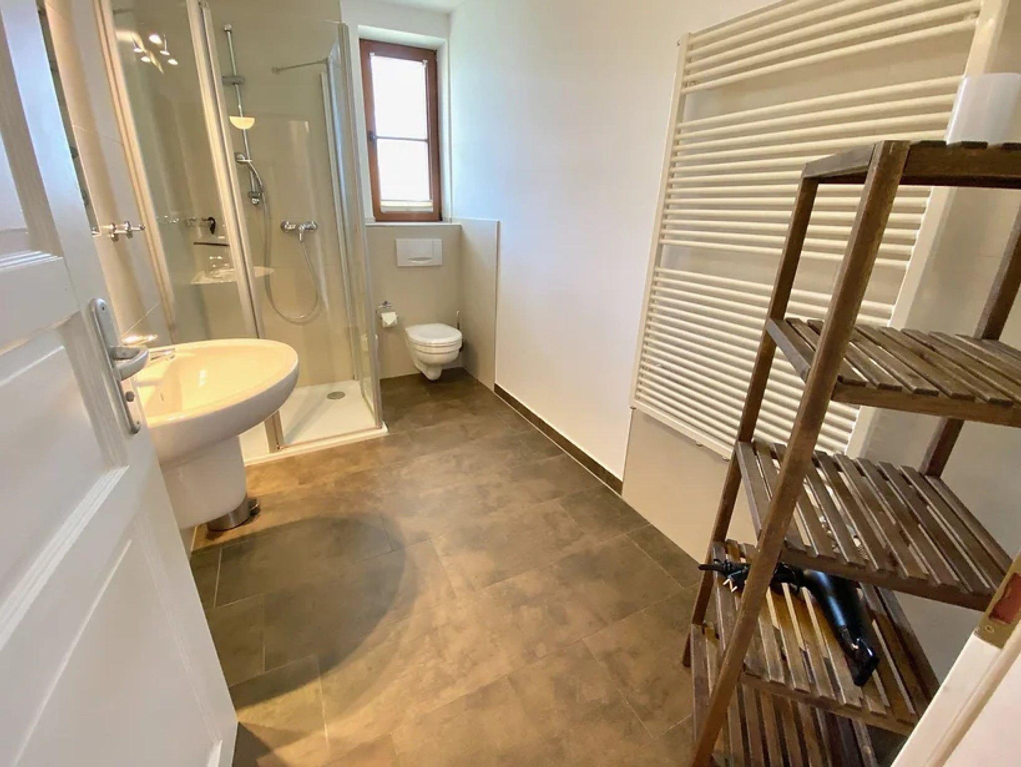 • Badezimmer mit Dusche, beheiztem Handtuchhalter und teilweise Tageslicht
