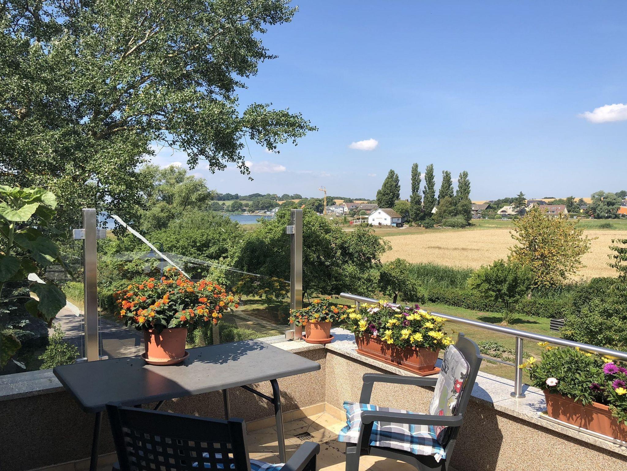 Sie verfügt über 2 Schlafzimmer mit insgesamt 2 Doppelbetten, eine Schlafcouch und einem Doppelstockbett. Jedes Schlafzimmer verfügt über ein eigenes Bad. Somit können in dem 95 Quadratmeter großen Apartment auch 2 Familien ihren Urlaub zusammen verbringen. 1 Bad ist zudem mit einer Wachmaschine ausgestattet. Die Wohnküche ist mit einem Backofen, Geschirrspüler, Kühlschrank, Gefrierschrank und Mikrowelle ausgestattet. Von der Küche aus gelangen Sie auf die große Dachterrasse mit Blick auf den Greifswalder Bodden.