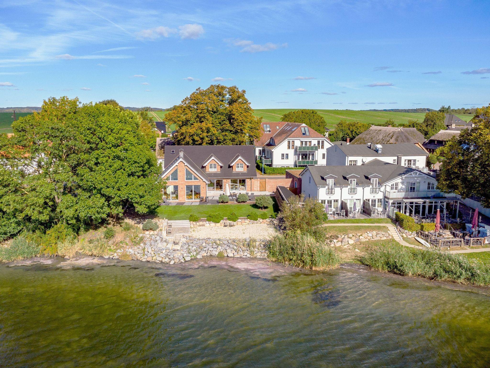 Allein schon die Eckdaten sind vielversprechend: Insgesamt 5 Zimmer auf zwei Etagen und riesigen 200 qm Wohnfläche, dazu ein privater Wellnessbereich, ein gut 1.000 qm großes Grundstück, drei Parkplätze und natürlich der atemberaubende Ausblick übers Wasser.