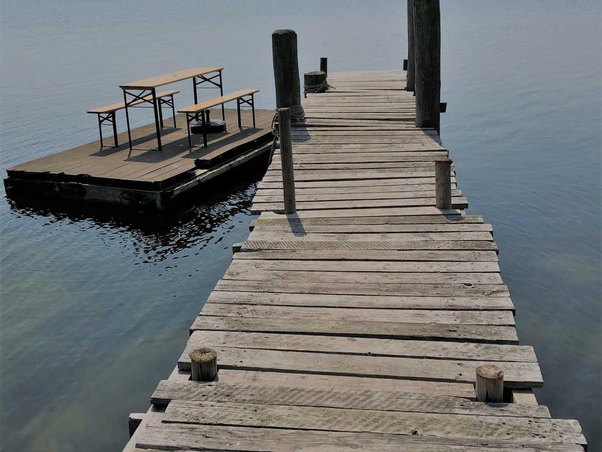 An besonders heißen Tagen lockt unser Holzfloß, das vor unserem Steg in den Wellen schaukelt. Holen Sie sich ein kühles Bier, machen Sie es sich bequem - und Prost!