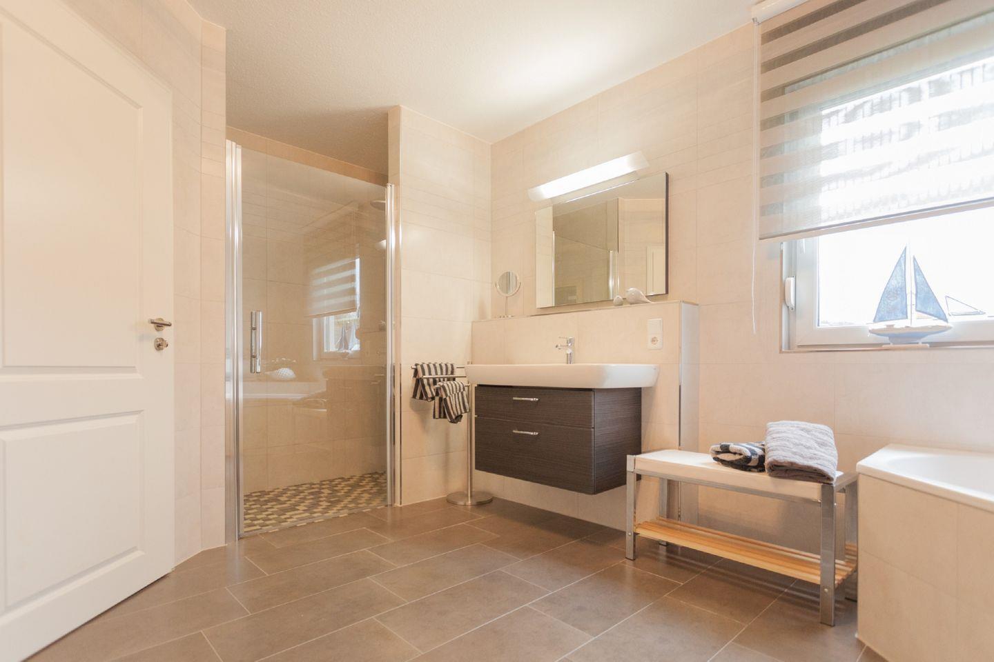 BAD // 2 Tageslicht-Badezimmer mit Dusche, WC und Waschtisch, eins davon zusätzlich mit Sauna und Badewanne, 2 Tageslicht-Badezimmer im OG mit Dusche, WC und Waschtisch ++