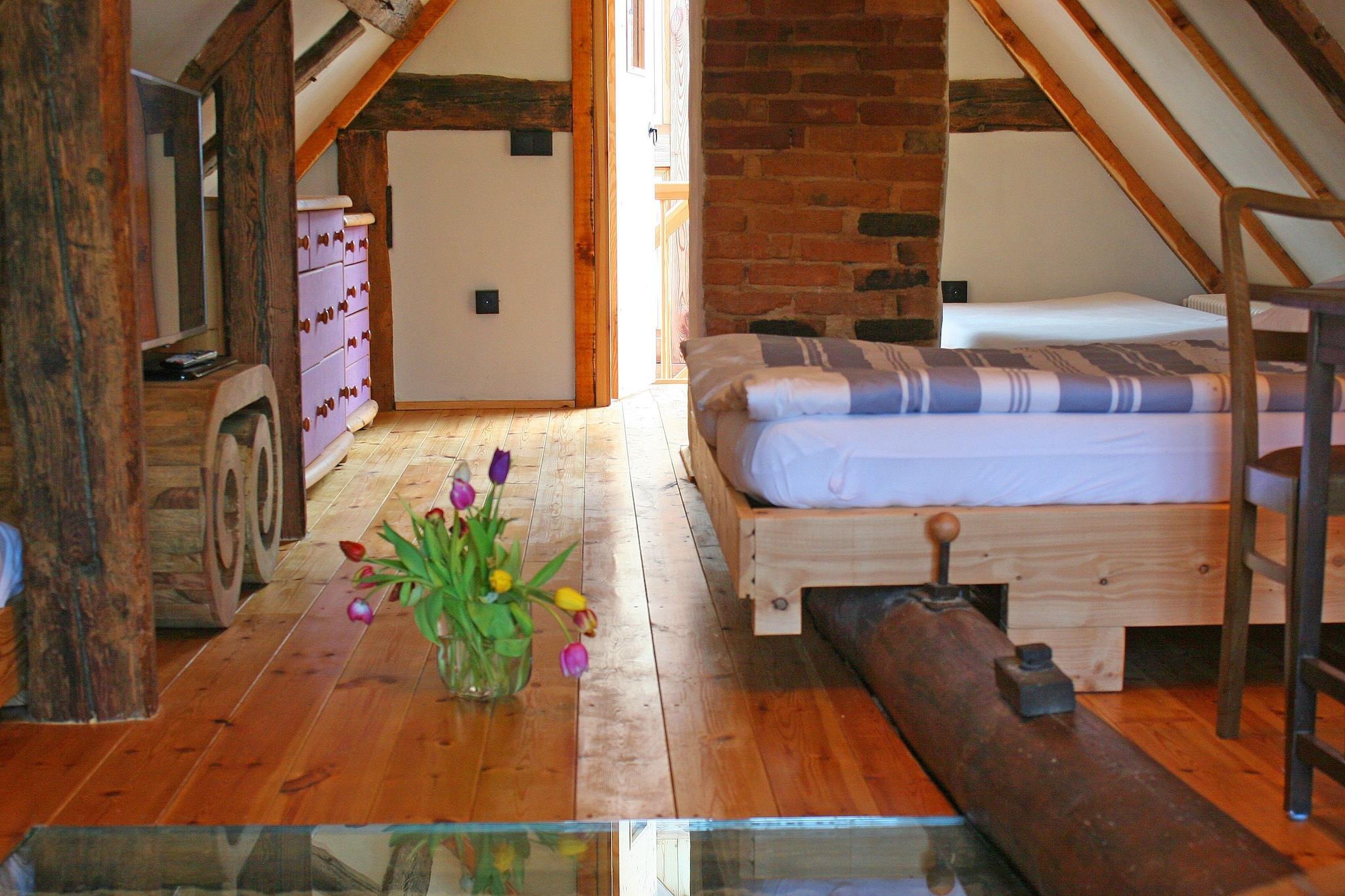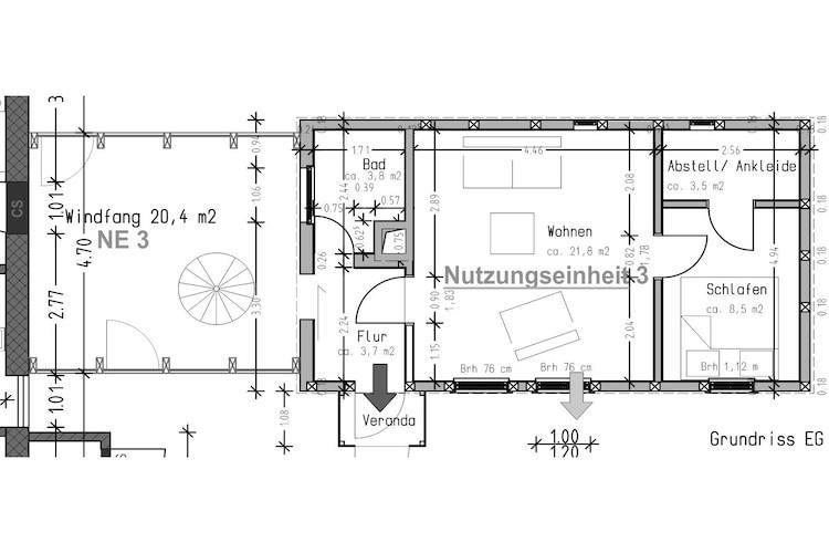 Velkommen til vores Kate i Mönkebude - Mönkes Kate - ved Szczecin-lagunen. Vores fredede tidligere sommerhus på en fiskergård er tilgængelig for dig til at slappe af. Bygget i 1860 som en tilbygning til det tidligere store ladehus hos en fiskerfamilie fra Mönkebude og brugt til beboelse indtil omkring 1982. I dag slapper vores gæster af mellem de gamle bindingsværksvægge i mursten, vægge pudset med ler indvendigt og under det smukke stråtag på cirka 80 m² boligareal. Der er også en klassisk indrettet stue med sofa og lænestole fra mormors tid og pejs. Der er selvfølgelig også et tv og en lille klassisk sekretær til kort kontorarbejde. Ved siden af stuen ligger soveværelset med senge specielt tilpasset til dette værelse, som kan sættes sammen. I forbindelse med soveværelset finder du et walk-in closet. Depotkarakteren fra gamle dage er bibeholdt til dit tøj og enkelte andre småting og kan bruges optimalt. Køkkenet som midterrum blev gennemført i glas med en bærende bjælkekonstruktion omkring, for at bevare udsigten til murstensmurværket og konstruktionen af sommerhuset. Dette er indrettet med et robust tekøkken i massivt træ, hvori vores gæster finder alt køkkengrejet. Mönkebude byder selvfølgelig også på en masse gastronomi til dig. Indgangspartiet består af en vestibule og en lille gang. I fyringssæsonen er en konvektorvarmer tilgængelig - understøttet af elvarmere. Overfor indgangen til høloftet finder du udgang til udendørs terrasse over køkkenalrummet - et hyggeligt område med terrassebord og stole. Derudover giver vi dig WiFi. Overførselsraterne er ikke de bedste endnu – men de arbejder på det. Du er også velkommen til at bruge vores have liggestole. Ligeledes nac