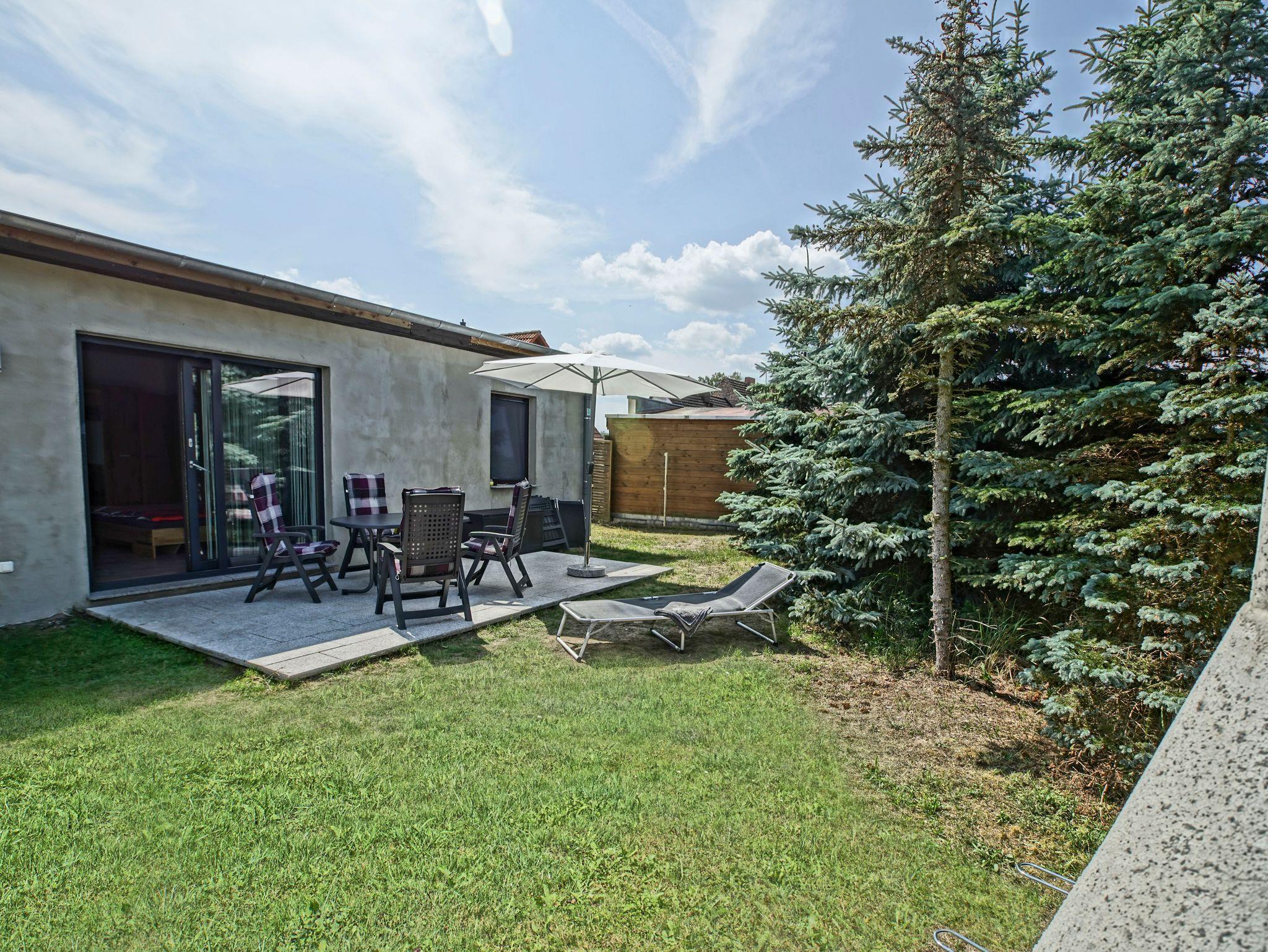 Grillplatz, Liegewiese und eine schöne Terrasse mit Sonnenliegen direkt in Strandnähe laden zum entspannten Urlaub ein. Das Ferienhaus bietet Platz für 5 Personen.