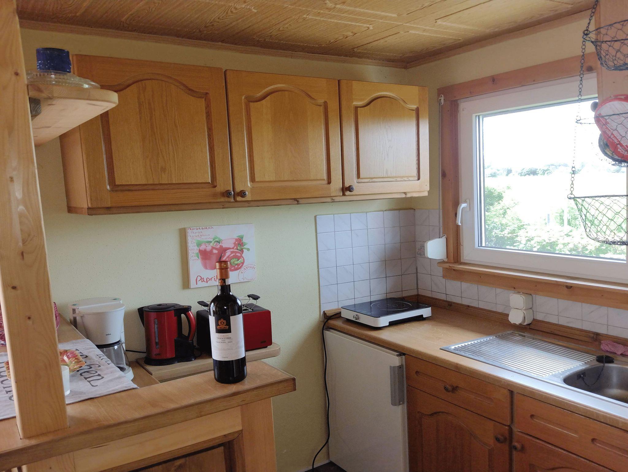 Eine offene Küche - mit zwei Induktionskochplatten, Mikrowelle, Wasserkocher, Kaffeemaschinen (Filter + Pads), 1 French Press, Toaster und Kühlschrank mit Gefrierfach - ermöglicht geschmackvolles Kochen.