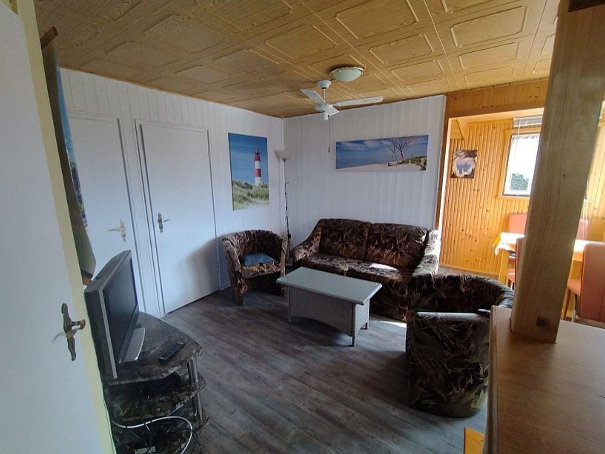 Es verfügt über ein Wohnraum mit Esstisch und Flachbildschirm, 2 Schlafräume, einer kleinen Pantry Küche mit zwei Induktionskochplatten, Kühlschrank, Spüle, Kaffeemaschine, Wasserkocher Toaster und eine Mikrowelle sowie ein Bad mit DU/WC und einer attraktiven Terrasse direkt mit Deichblick.