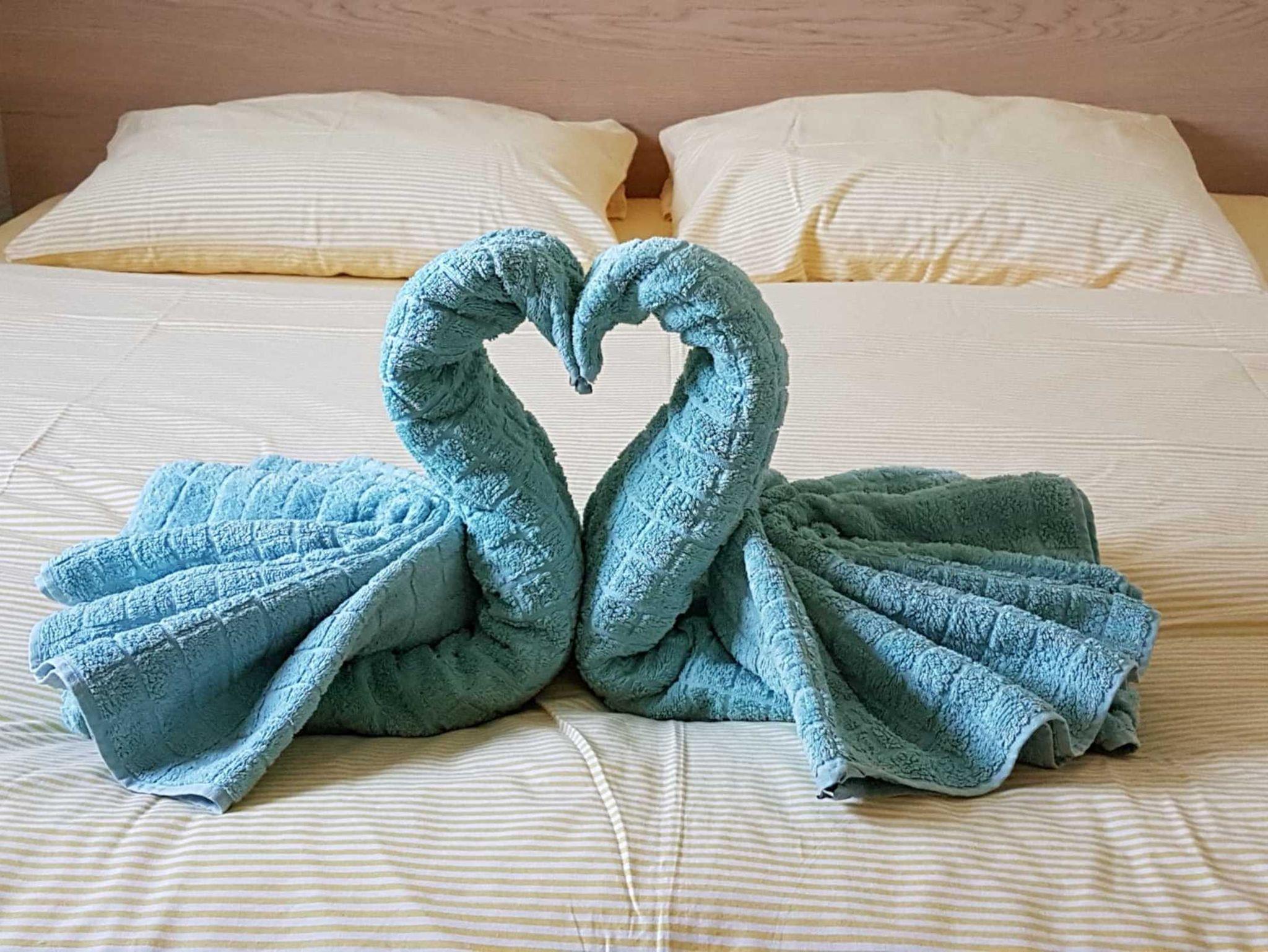 Ein Satz Bettwäsche und Handtücher pro Person inklusive.