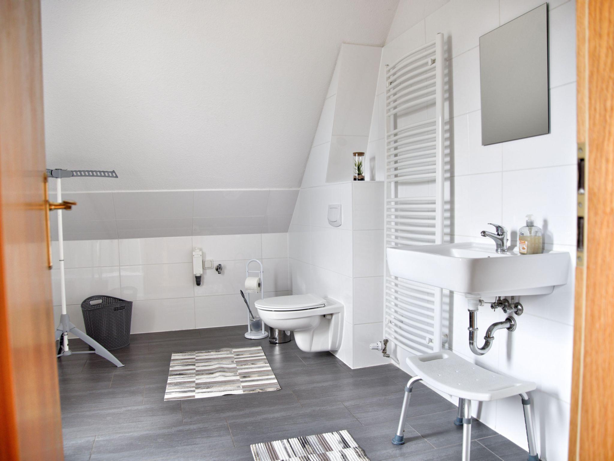 komfortablen Stühlen. Im Badezimmer ist, eine Duschkabine, ein Handwaschbecken