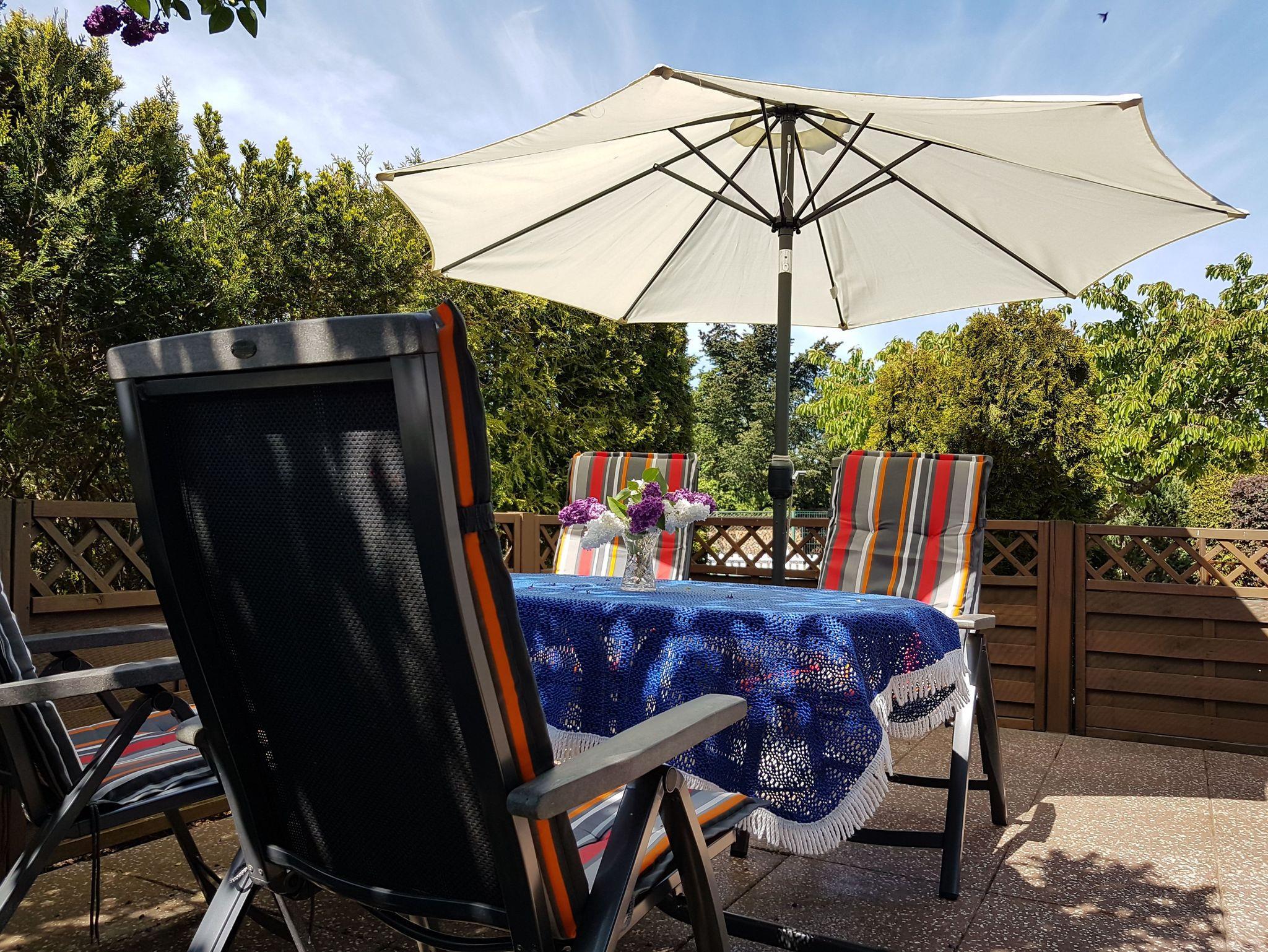 Ferienhaus für 2-4 Personen mit 2 Schlafräumen, einem Wohnraum, Bad mit DU/WC sowie einer kleinen Küche (Pantryküche) mit Mikrowelle einem Garten mit Terrasse und Grillmöglichkeit sowie eine Sonnenliege.