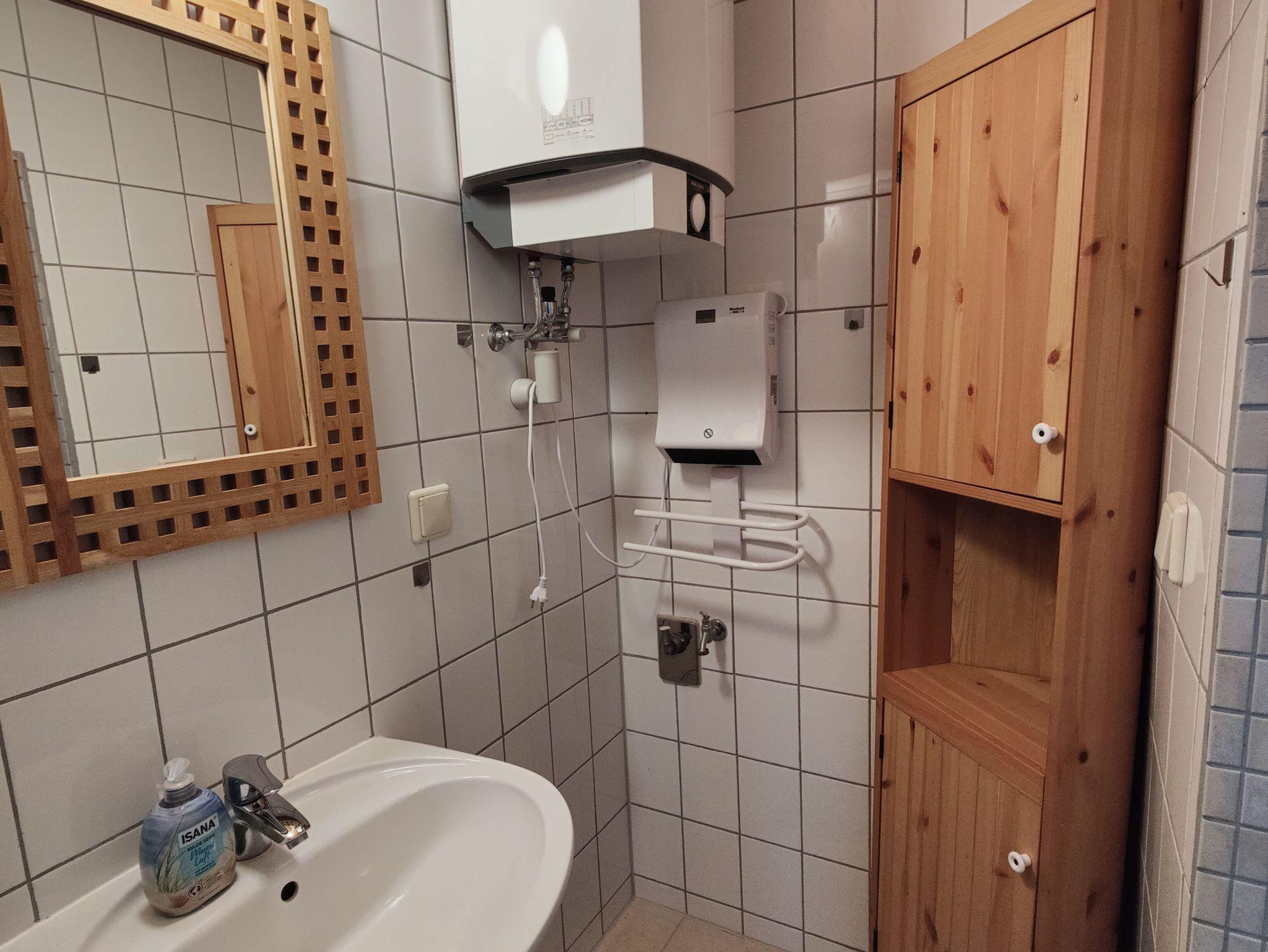 Im Schuppen stehen Fahrräder (für kurze Touren innerorts ausreichend), Grill und Feuerschale (ohne Zubehör) zur Nutzung bereit. Im Hauswirtschaftsraum befinden sich zwei Sonnenliegen, ein Liegestuhl und vier Terrassenstühle. Auch der Sicherungskasten ist hier zu finden.
