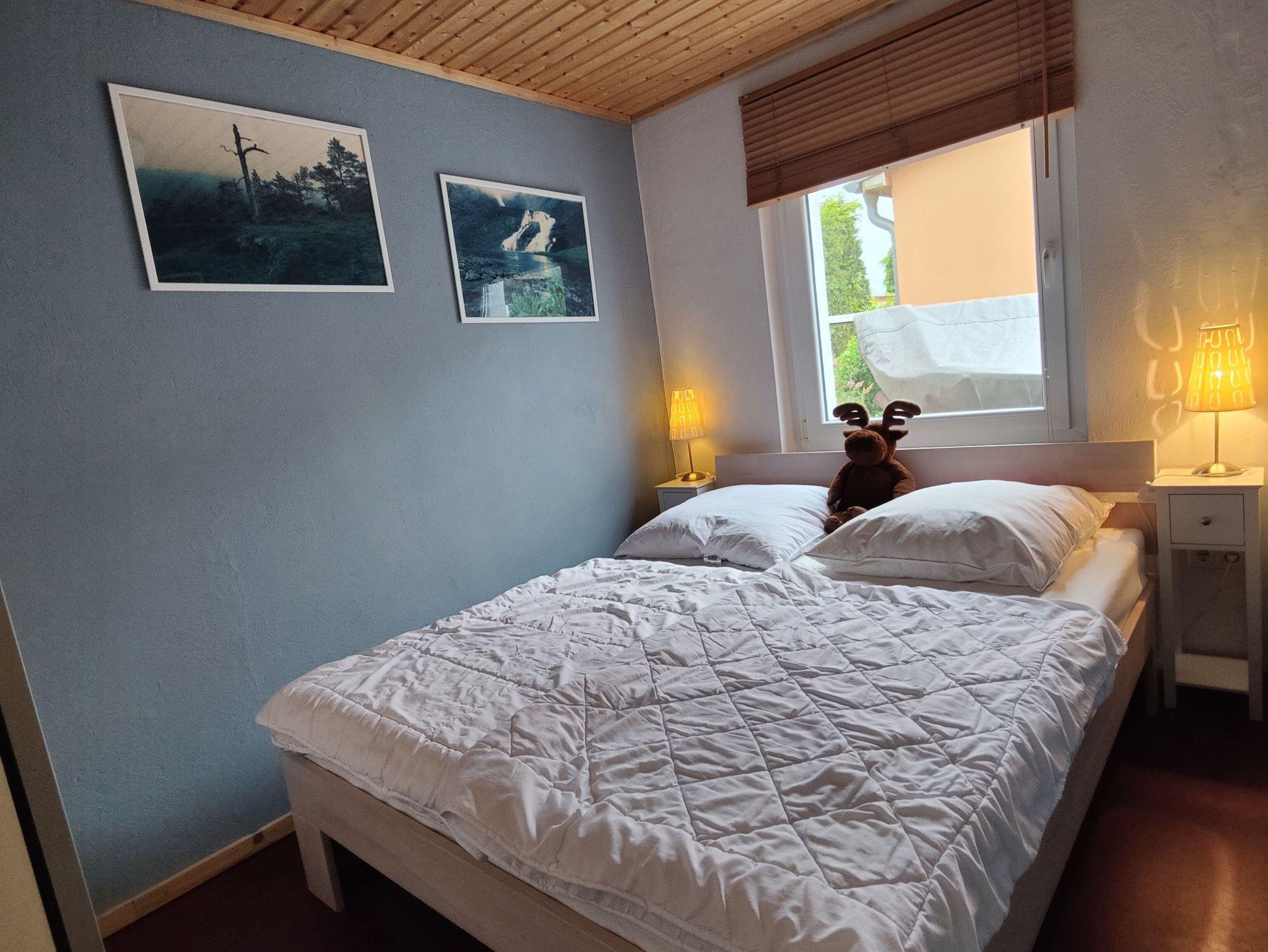 • 2 Schlafräume ( ein Bett mit einer Breite von 1,40 m für welches man ein großes Laken benötigt und ein Bett mit einer Breite von 1,60 m. Diese ist mit zwei Matratzen in 0,80 m Breite bestückt, so dass man dafür zwei normale Laken braucht),