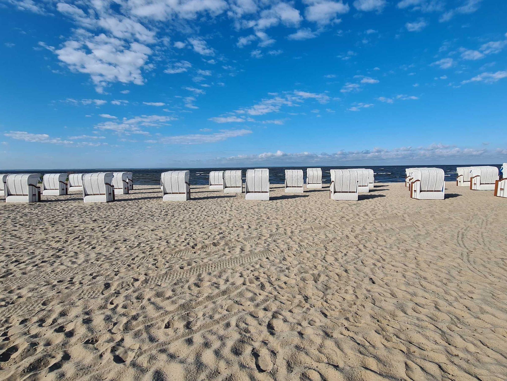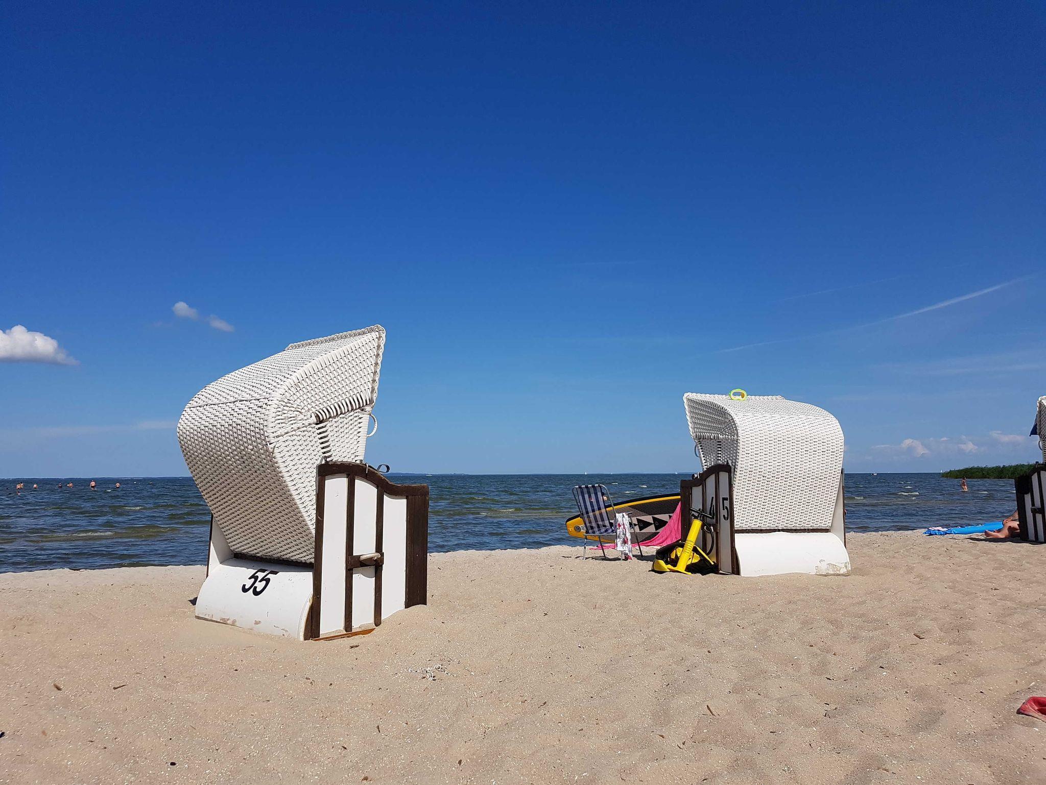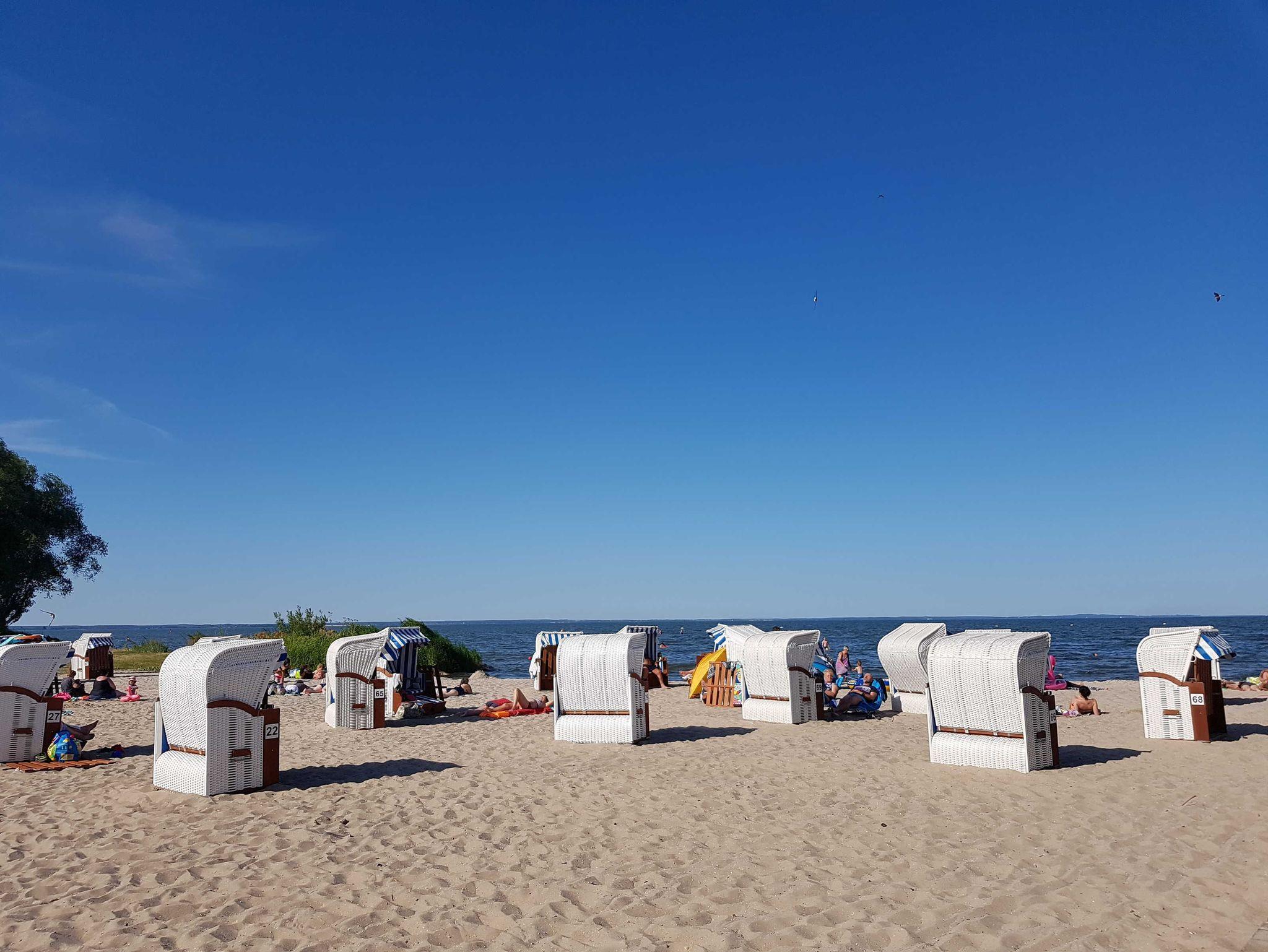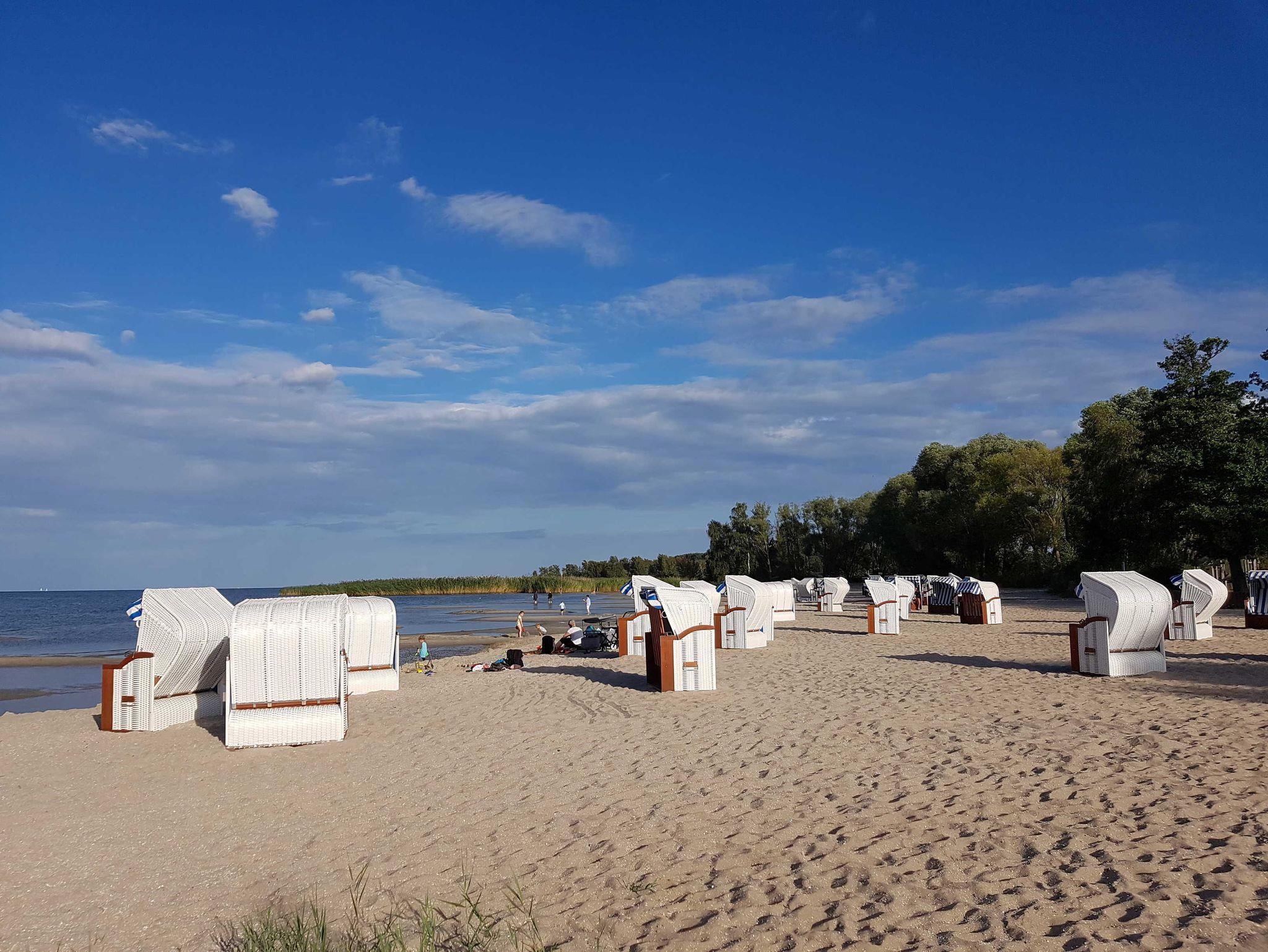 Der Erholungsort Mönkebude hat einen schönen kleinen feinen idyllischen Sandstrand mit Strandkorbvermietung.