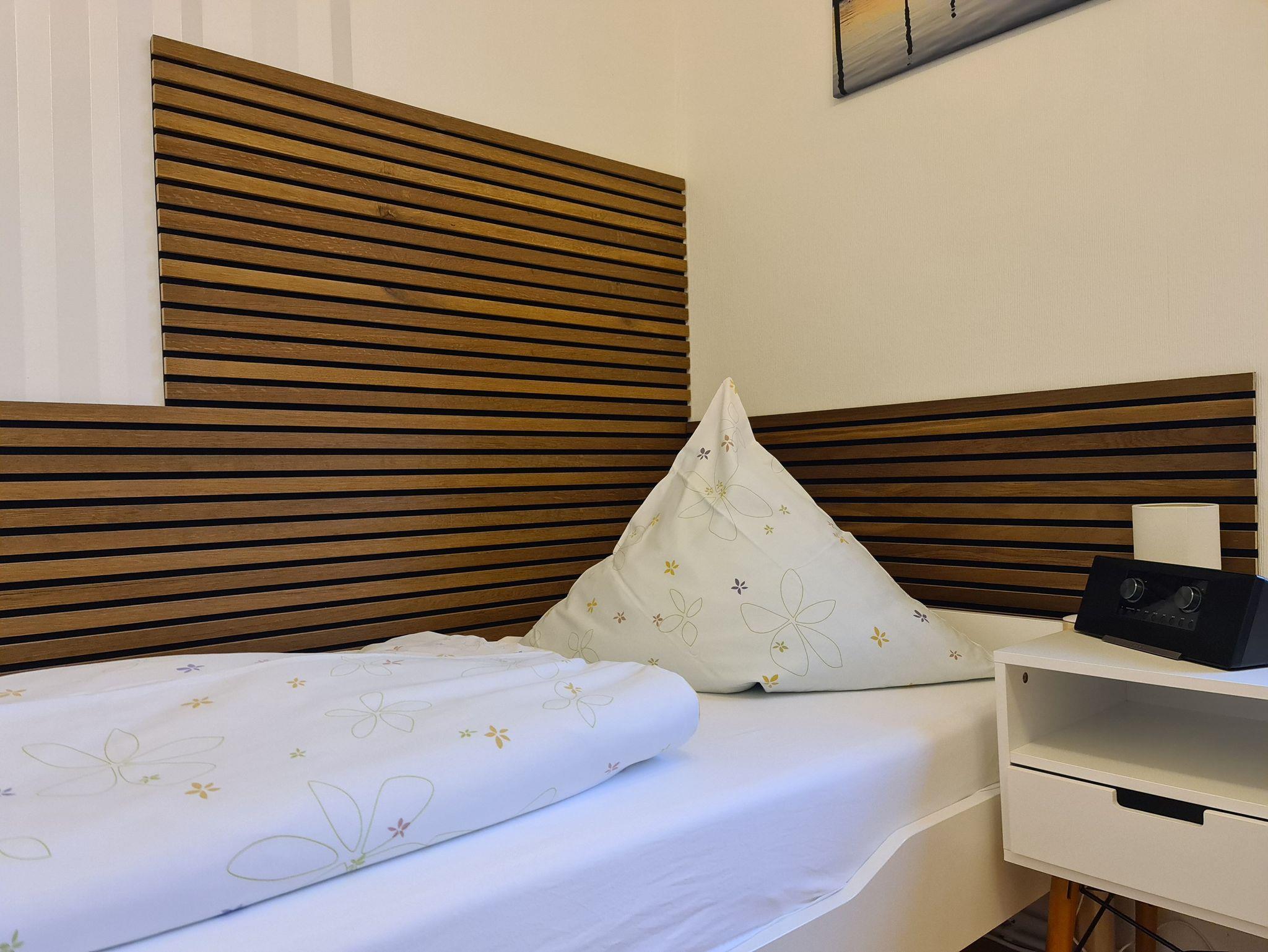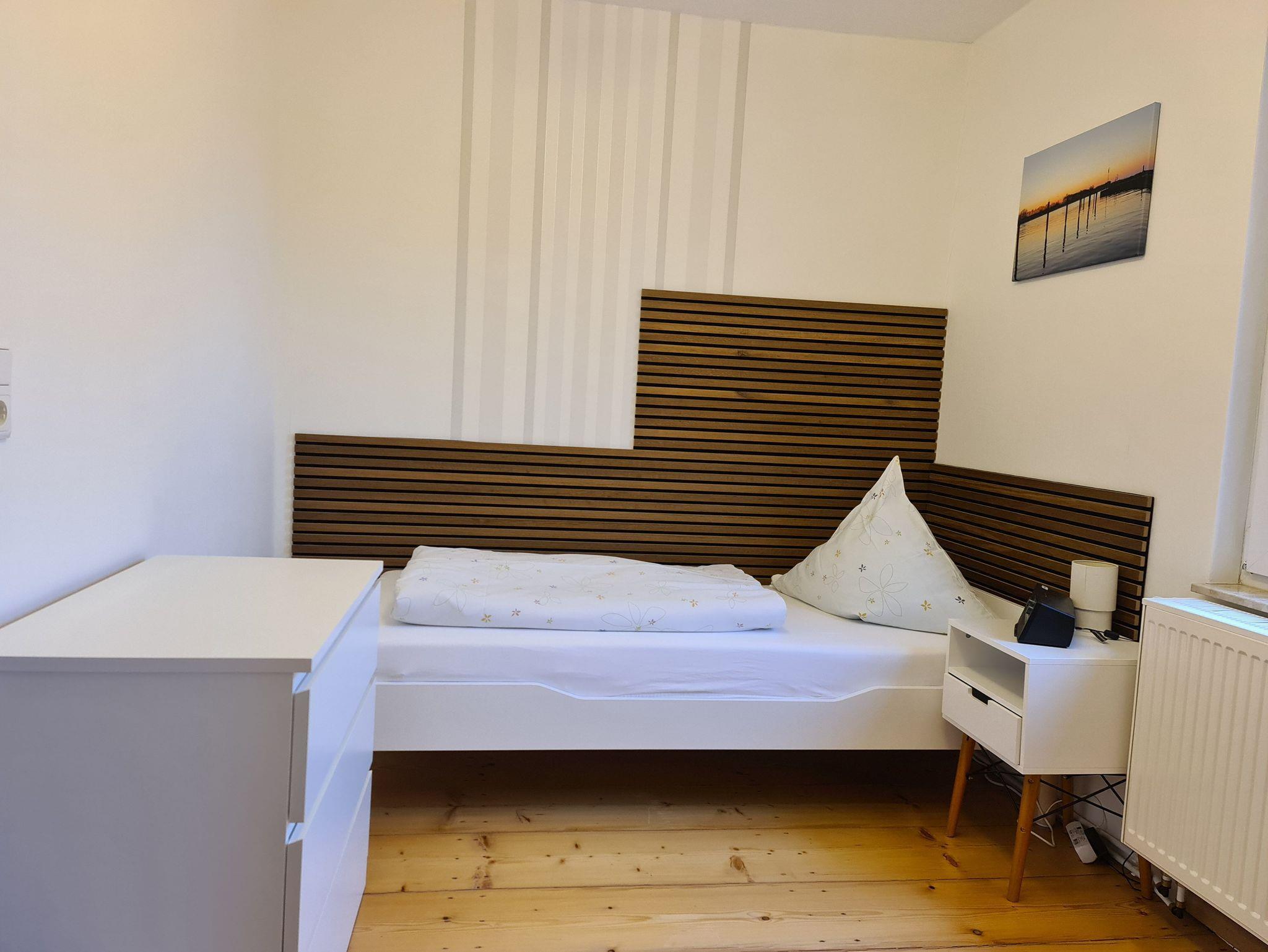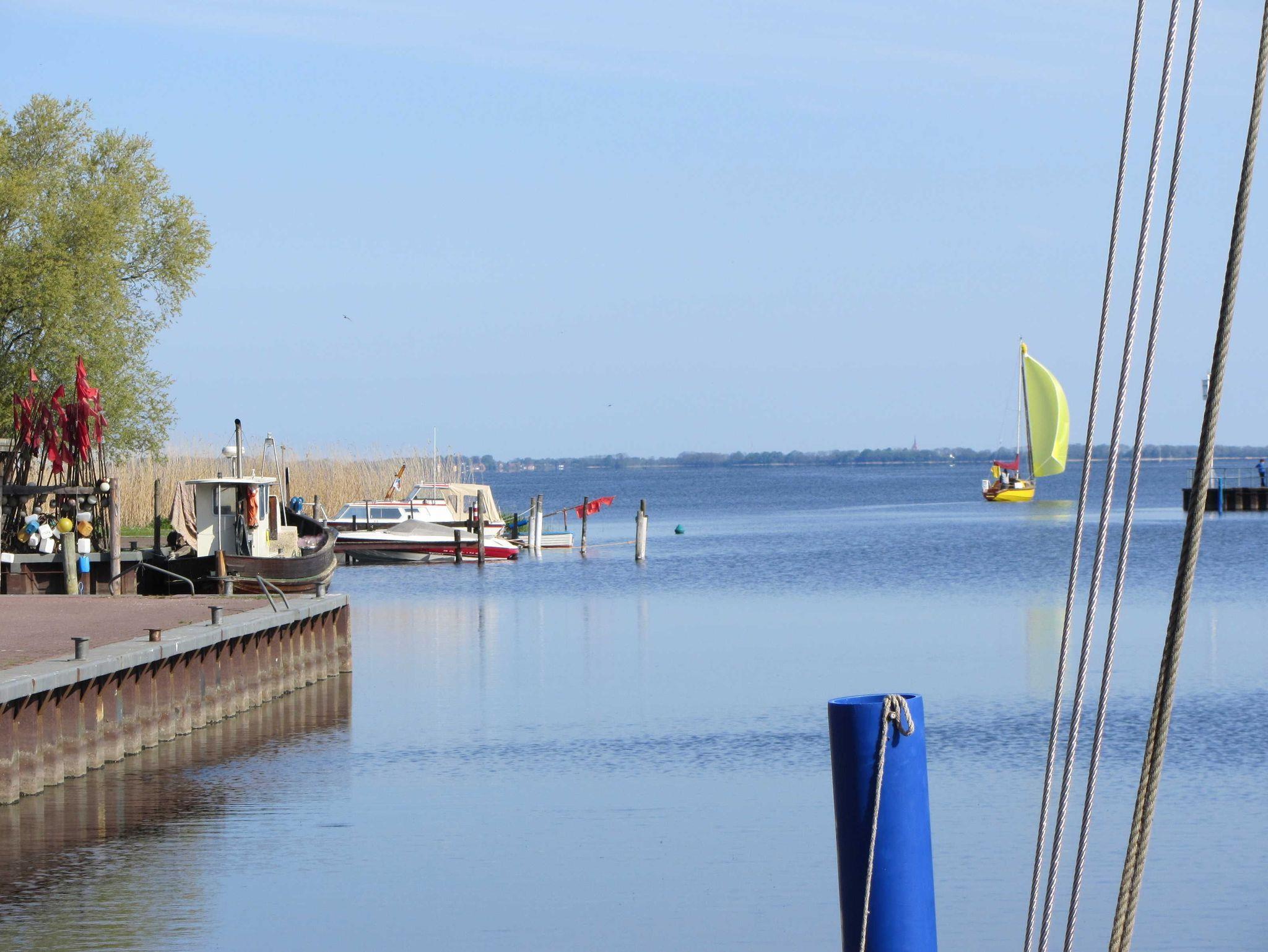 In dem Schlafzimmer mit den einzelnen Betten haben sie einen fantastischen Ausblick auf Deich und Haff.