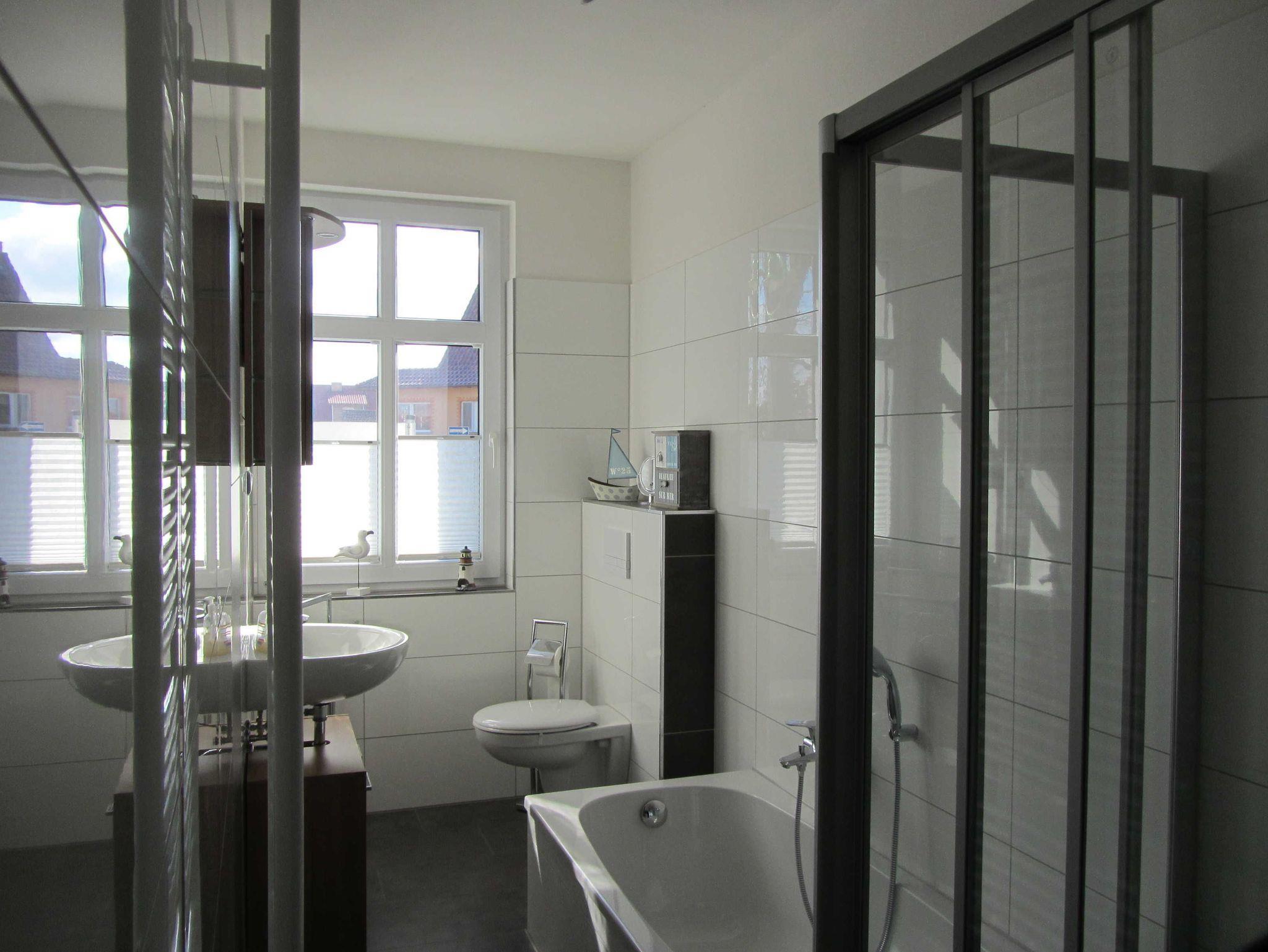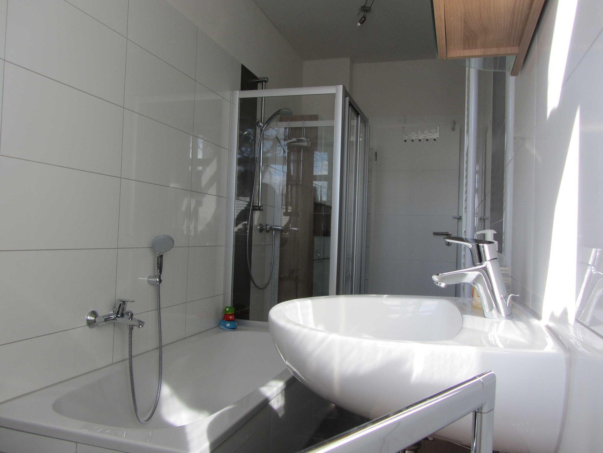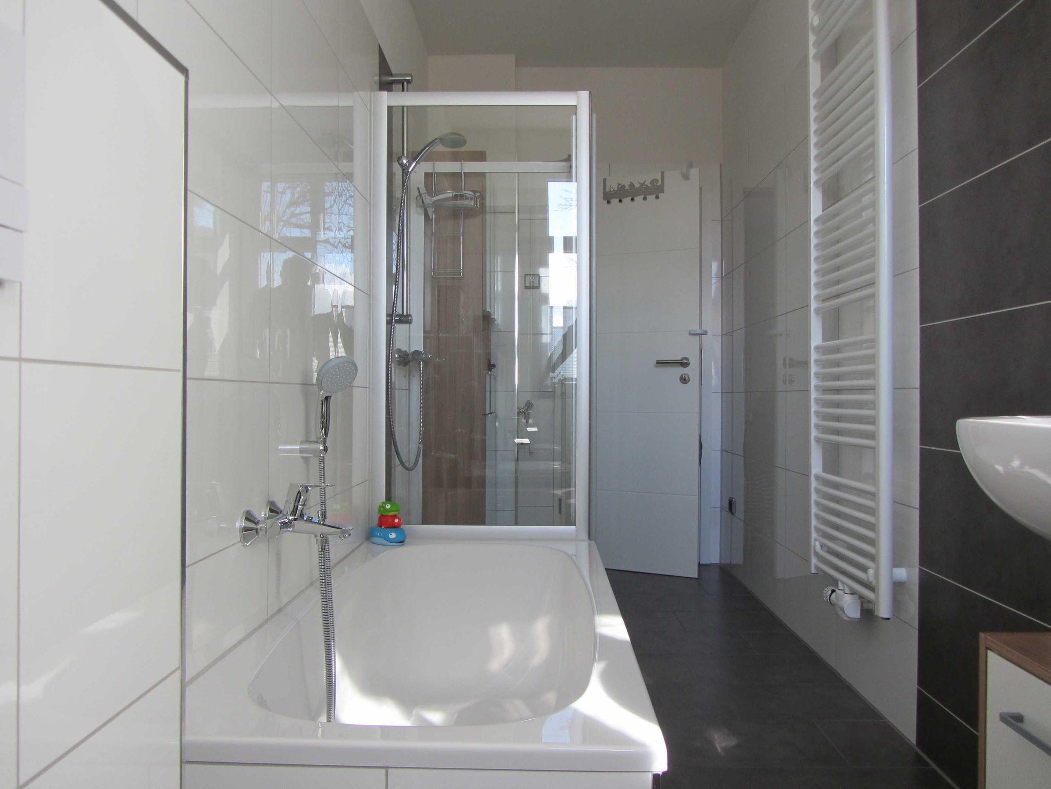 Ein modernes Bad mit DU/WC und Badewanne runden das Erdgeschoss ab.
