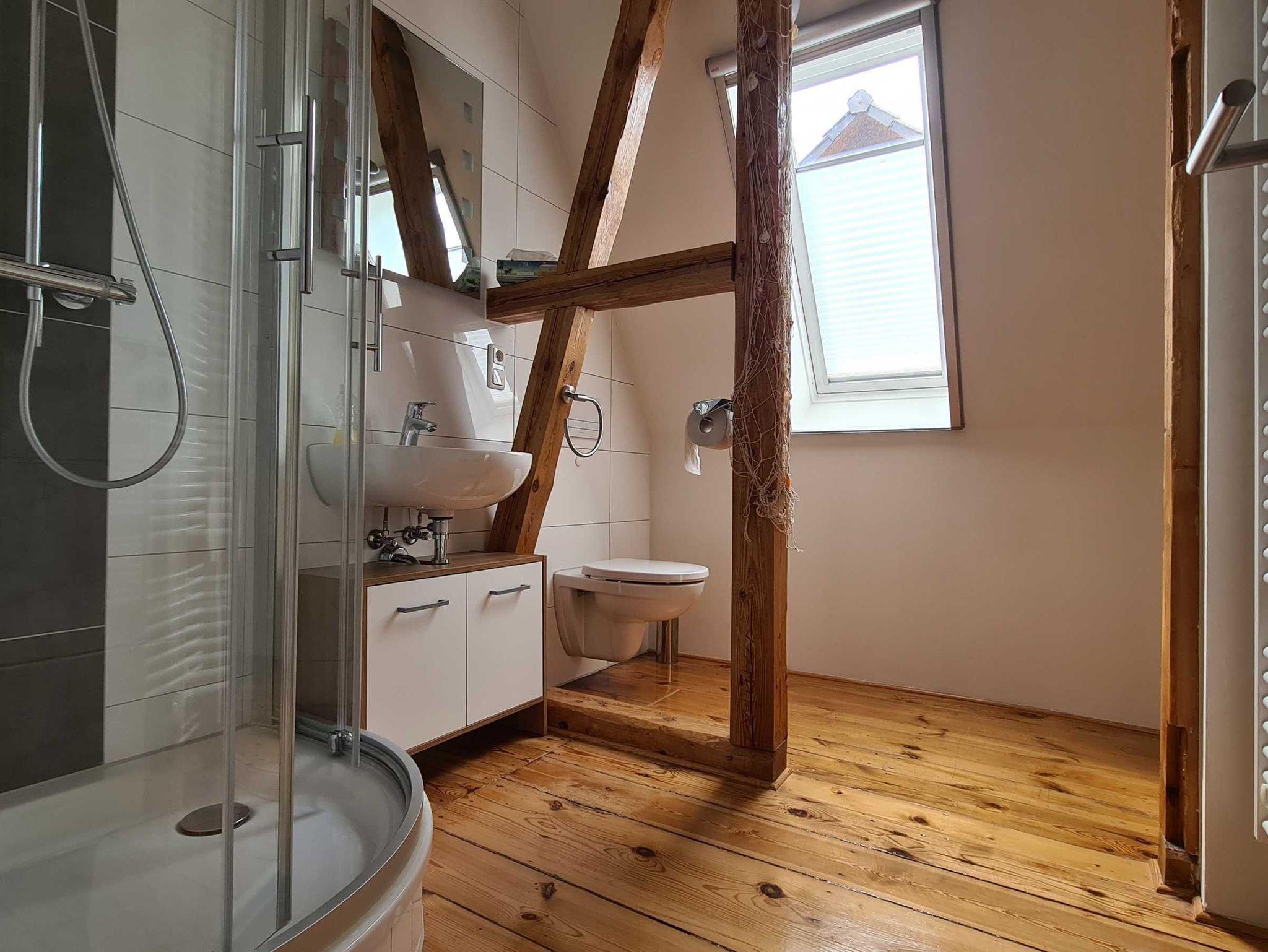 In der oberen Etage steht ein zweites Bad mit DU/WC und zwei Schlafzimmern zur Verfügung.
