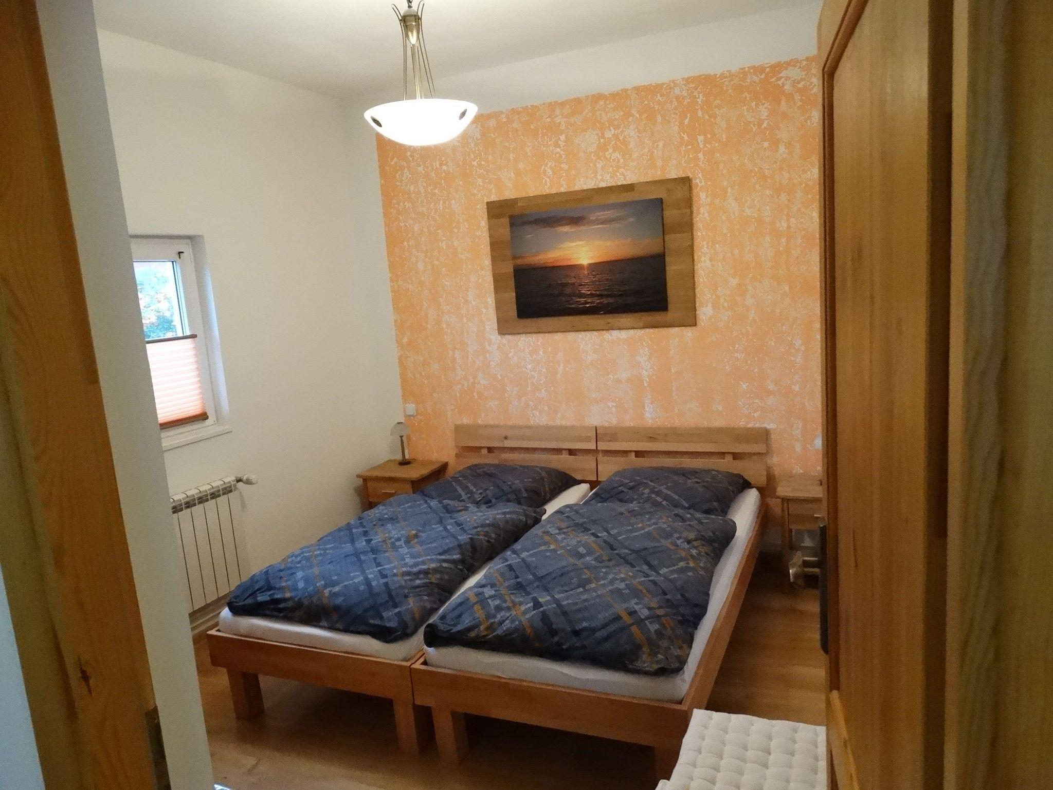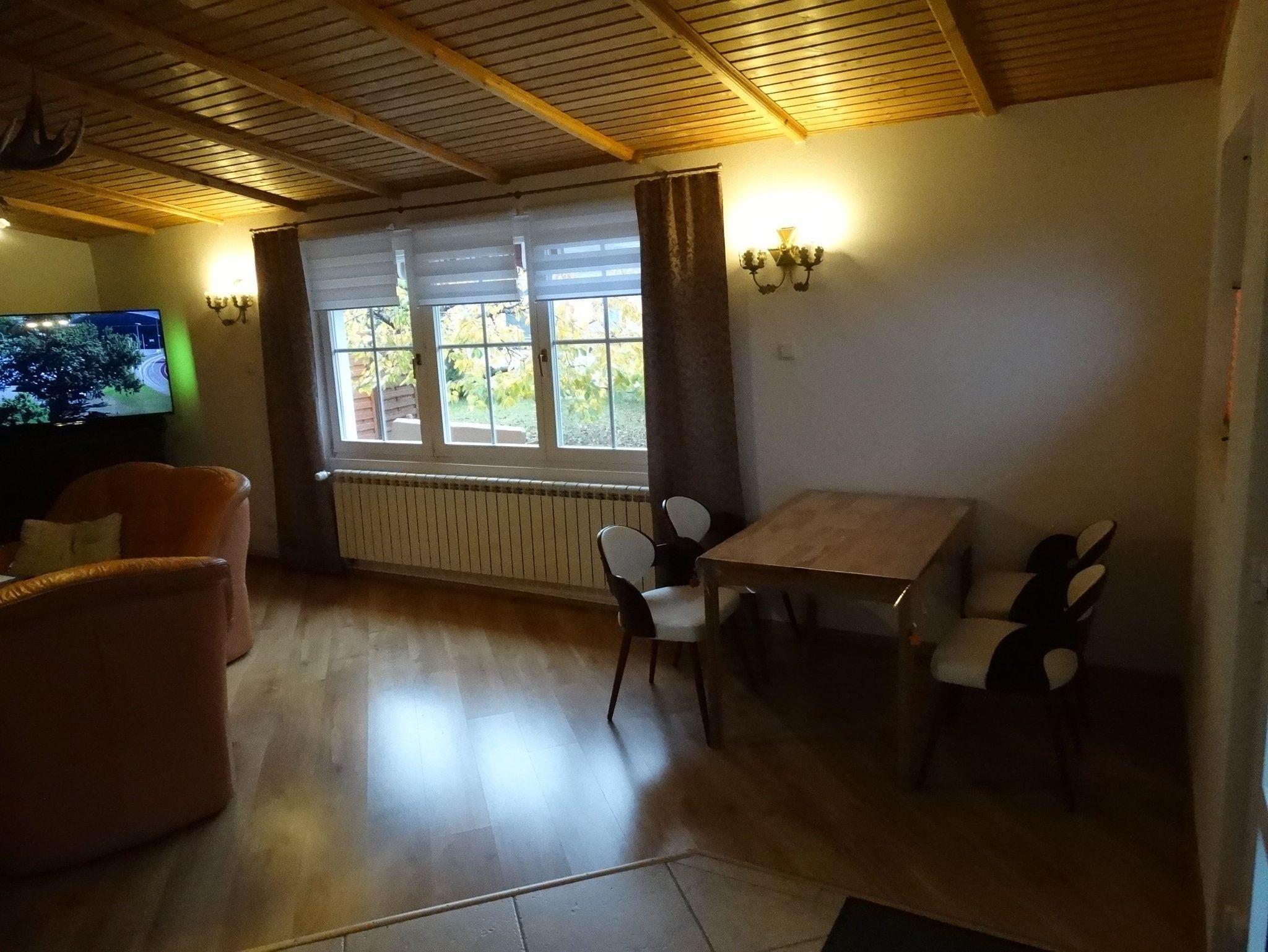 Geräumiges Ferienhaus mit großem Wohn- und Eßbereich mit integrierter Küchenzeile, Schlafraum mit Doppelbett, Kinderzimmer mit Etagenbett, Luxusbad mit DU/WC sowie Zentralheizung.