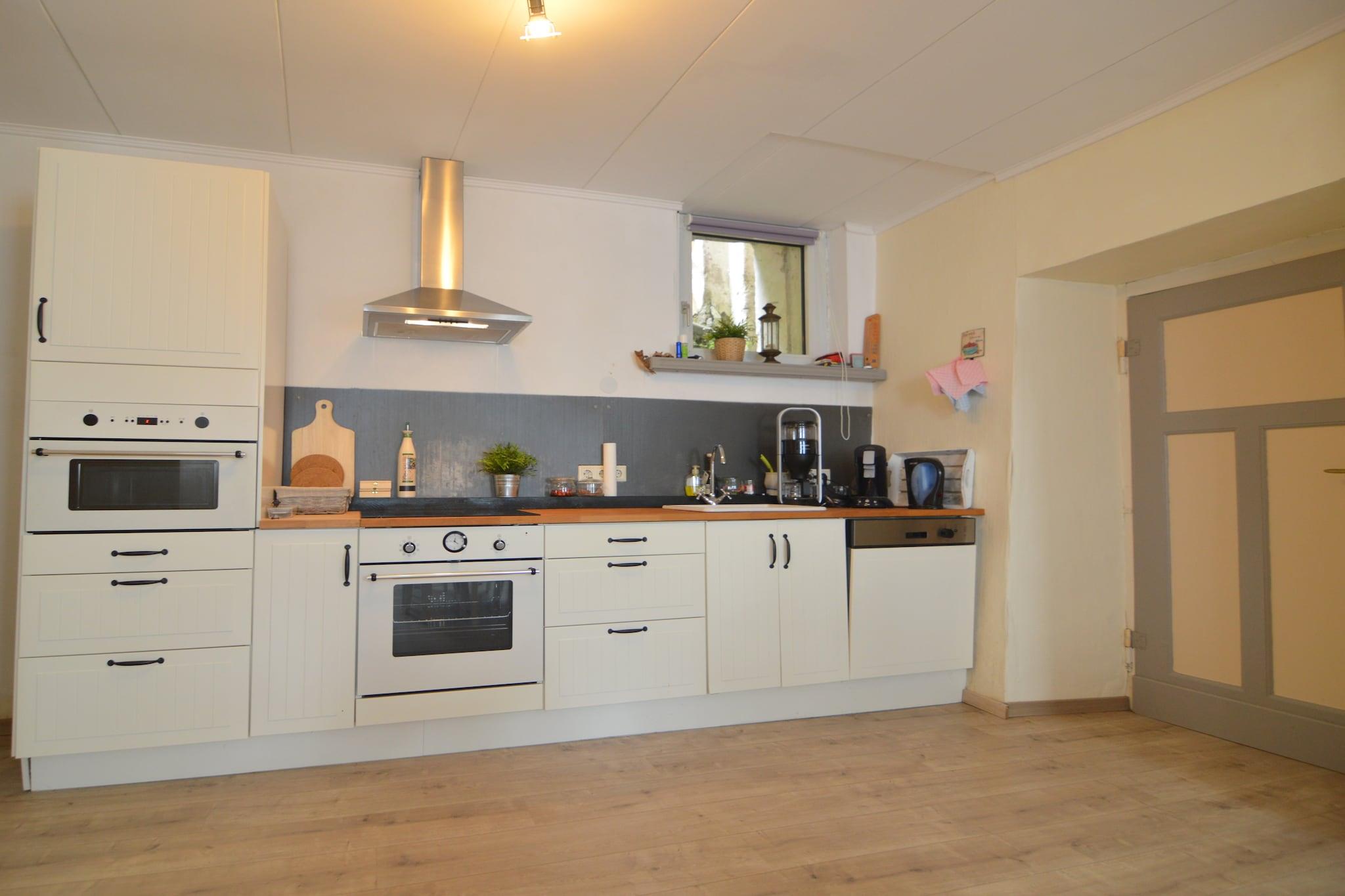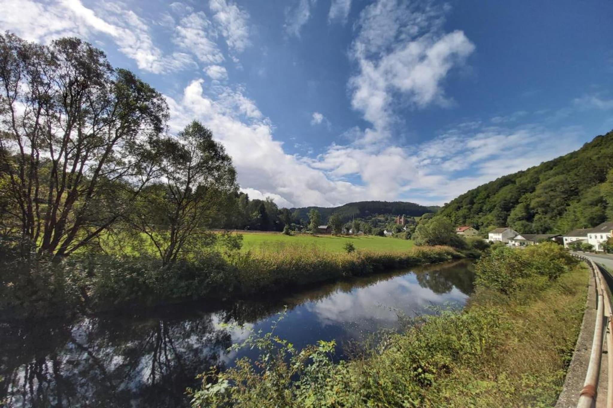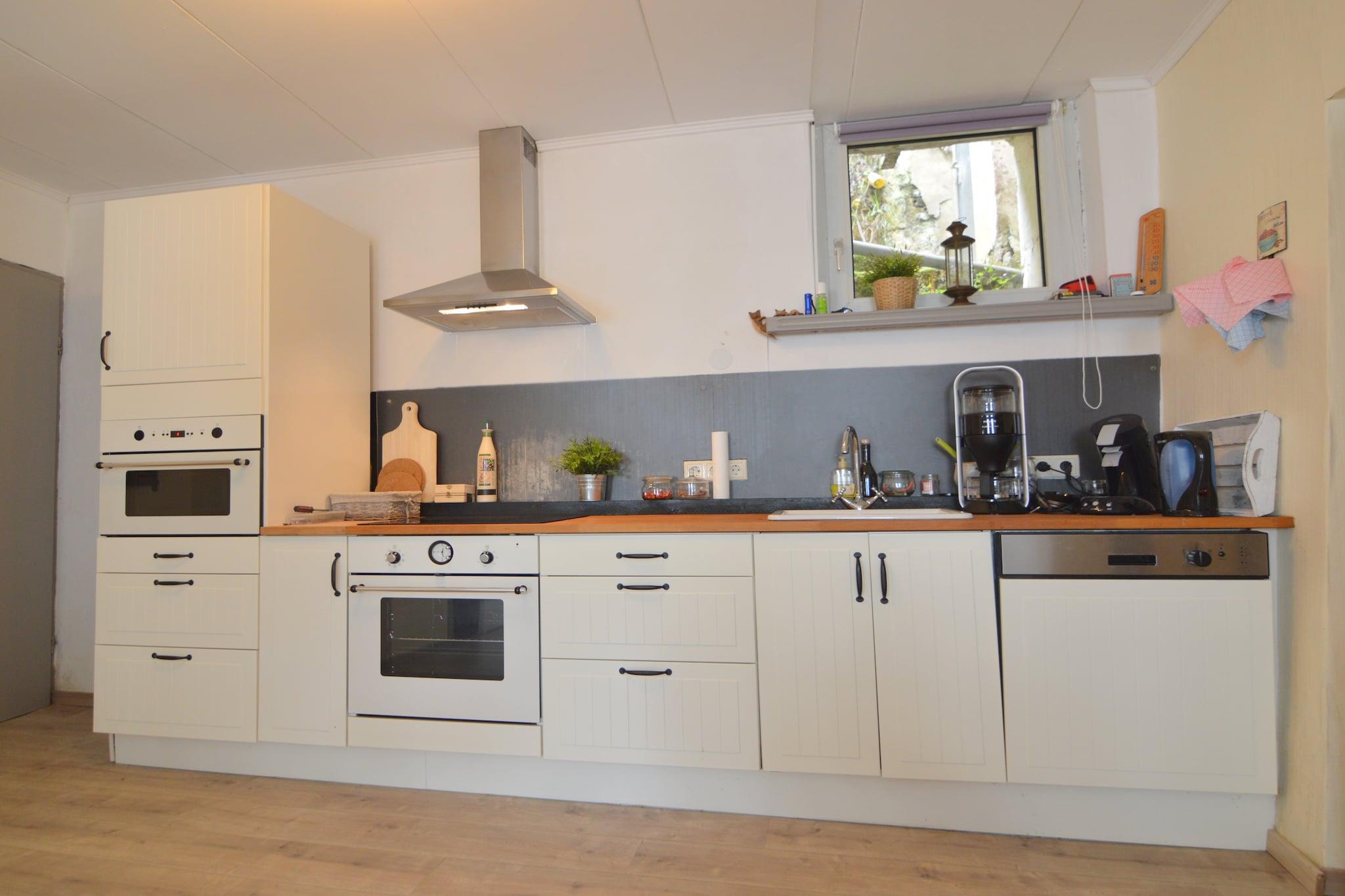 Dette rummelige feriehus i Mürlenbach tilbyder en charmerende blanding af arv og komfort for familier og venner. Beliggende i det restaurerede Veltenhaus fra 1850, ligger det ved foden af fæstningen Bertradaburg, gennemsyret af karolingisk legende og middelalderlig arkitektur. Boligen har et hyggeligt spisekøkken med brændeovn, et stort soveværelse i stueetagen, tre soveværelser ovenpå og to badeværelser - perfekt til gruppeophold. En generøs have og parkeringsplads på tværs af gaden bidrager til dens praktiske funktion. Omgivet af det naturskønne Gerolsteiner Land, kan gæsterne nyde skovvandringer, mountainbike og besøge nærliggende slotte som Manderscheid og Daun. Naturelskere vil sætte pris på højdepunkter, såsom Gerolsteiner Dolomitterne og Nerother Kopf, mens Kyll-floden byder på fredelige fiskesteder og kajaksejlads. Til spisning omfatter lokale favoritter Tiemo Wolff i Kopp for regionale specialiteter, Balkan Grill i Gerolstein til middelhavsretter og Pizzeria Costa Verde for italienske klassikere nær Löwenburg-ruinerne. Uanset om du udforsker vulkanske søer eller slapper af ved bålet, er Veltenhaus en mindeværdig base i hjertet af Eifel.
