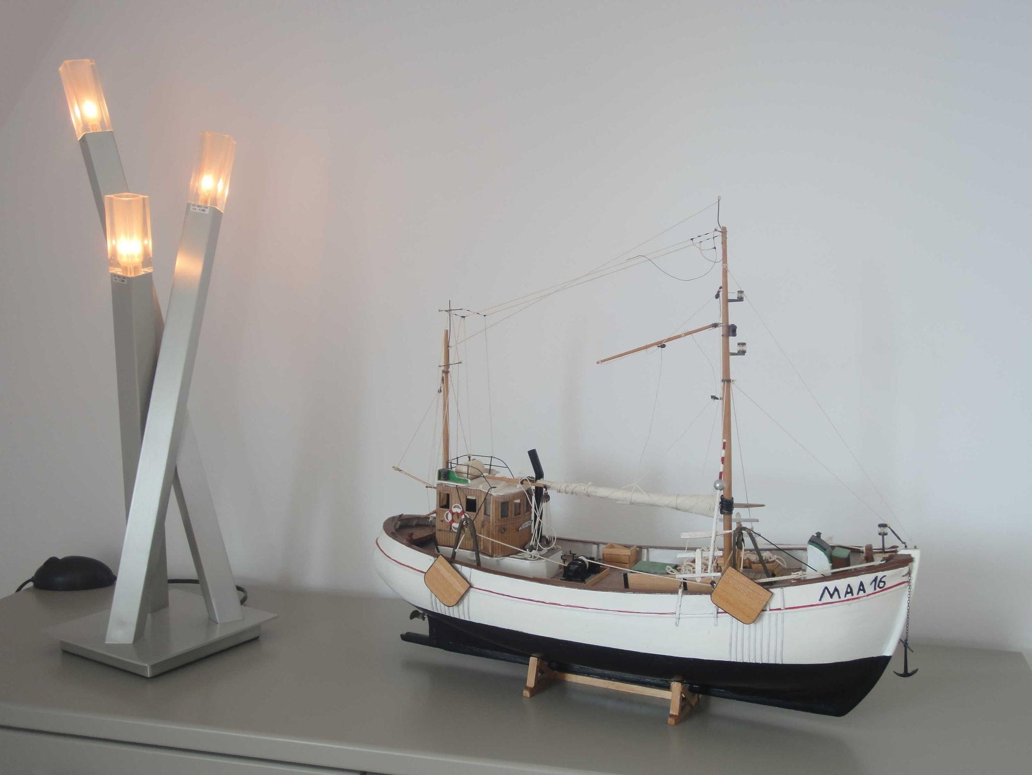 Ferienwohnung (54 qm) im Obergeschoss mit West-Balkon. Wohnzimmer mit Alkovenbett (100 x 190), 1 Schlafzimmer mit Doppelbett, Küche und Dusche/WC.