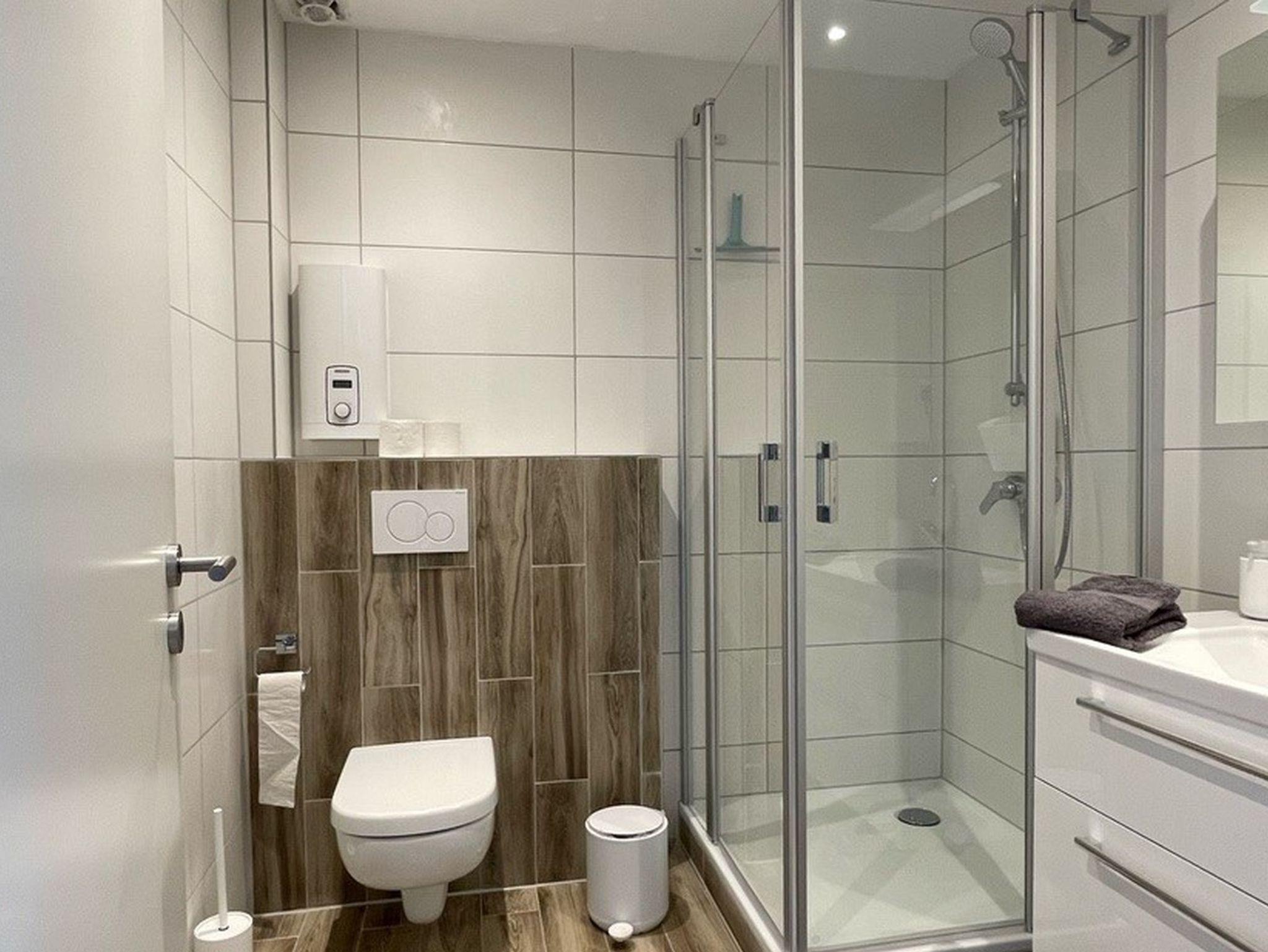 - Duschbad, WC, Waschbecken, Spiegel, Handtuchwärmer; Handtücher zu buchbar;