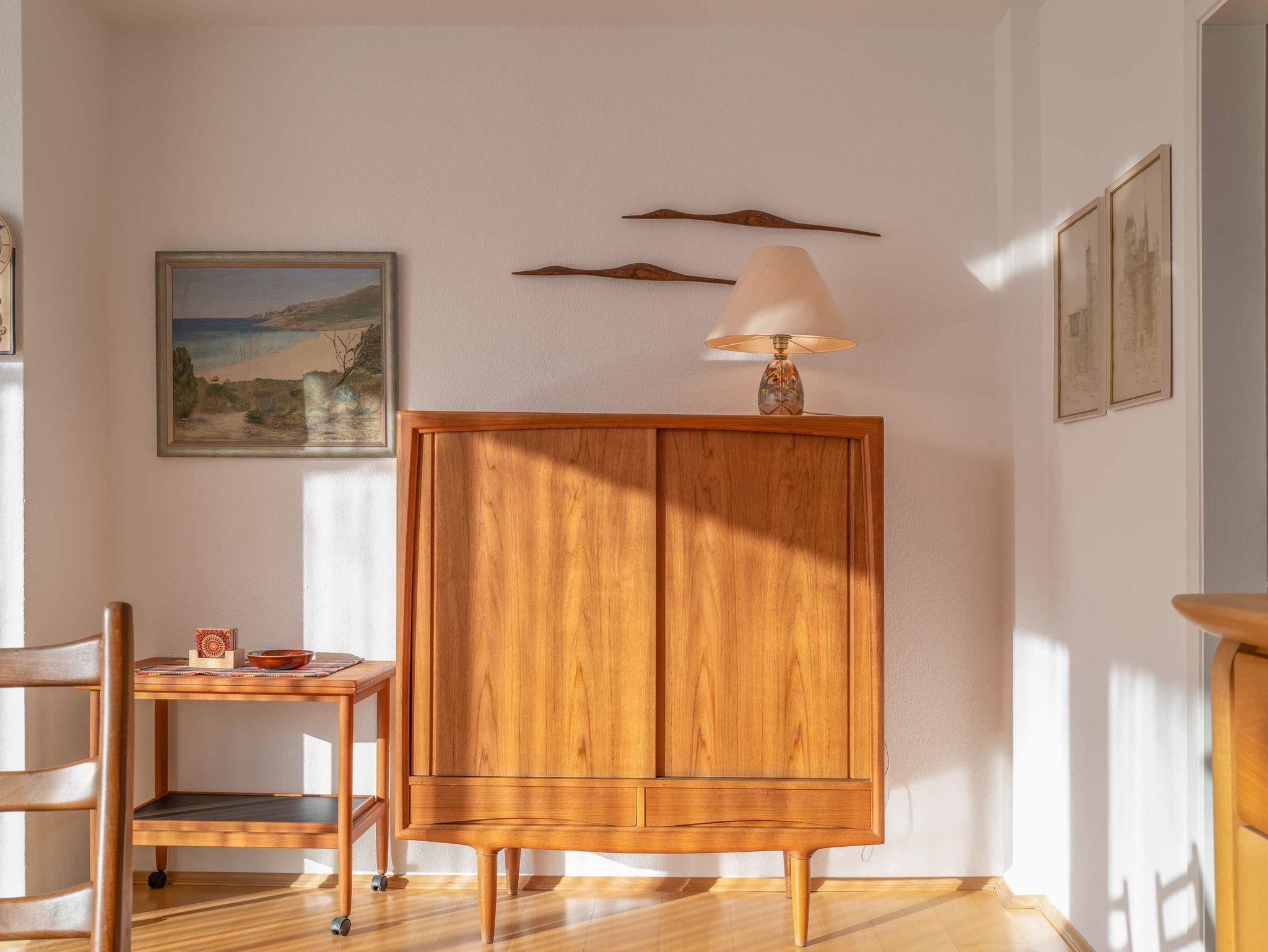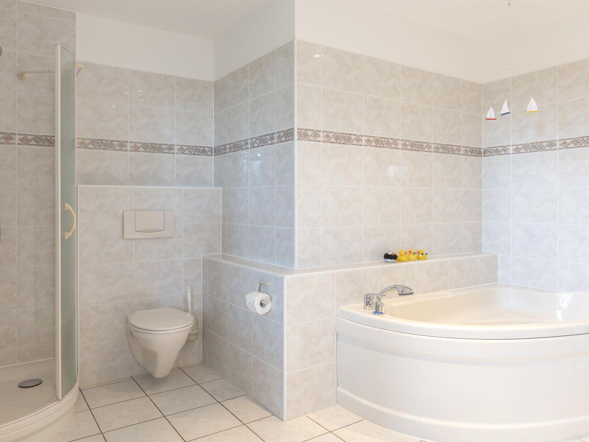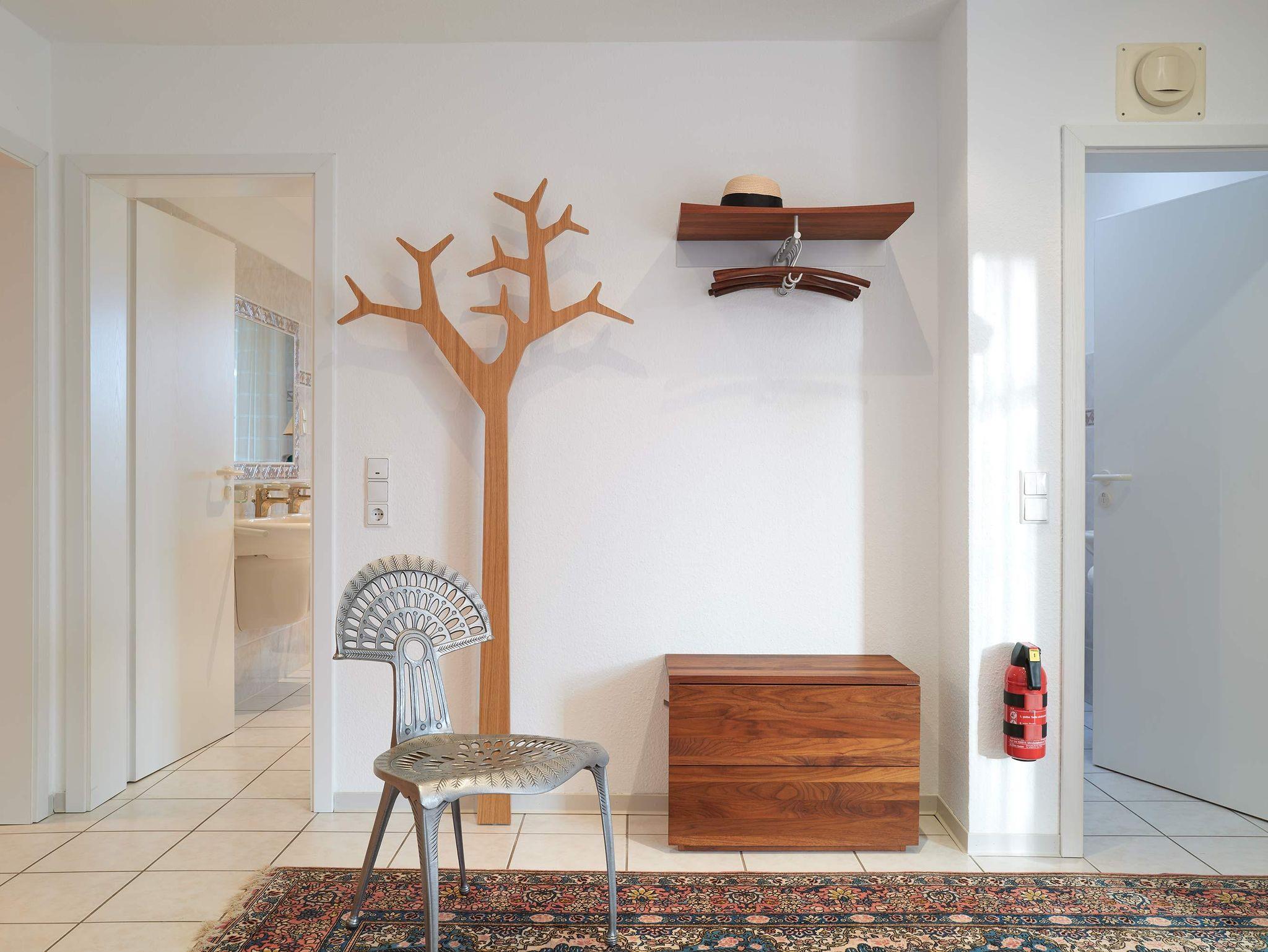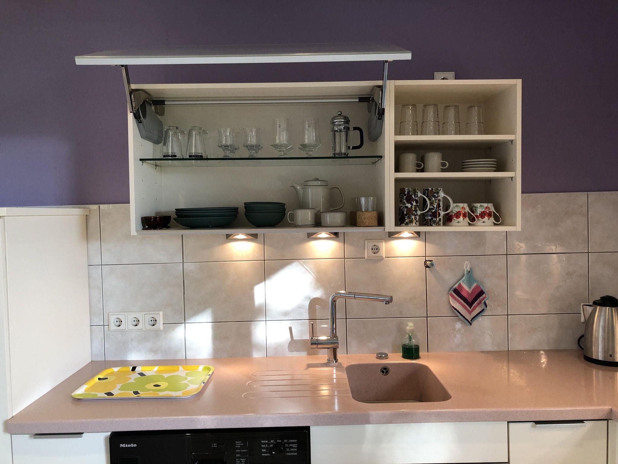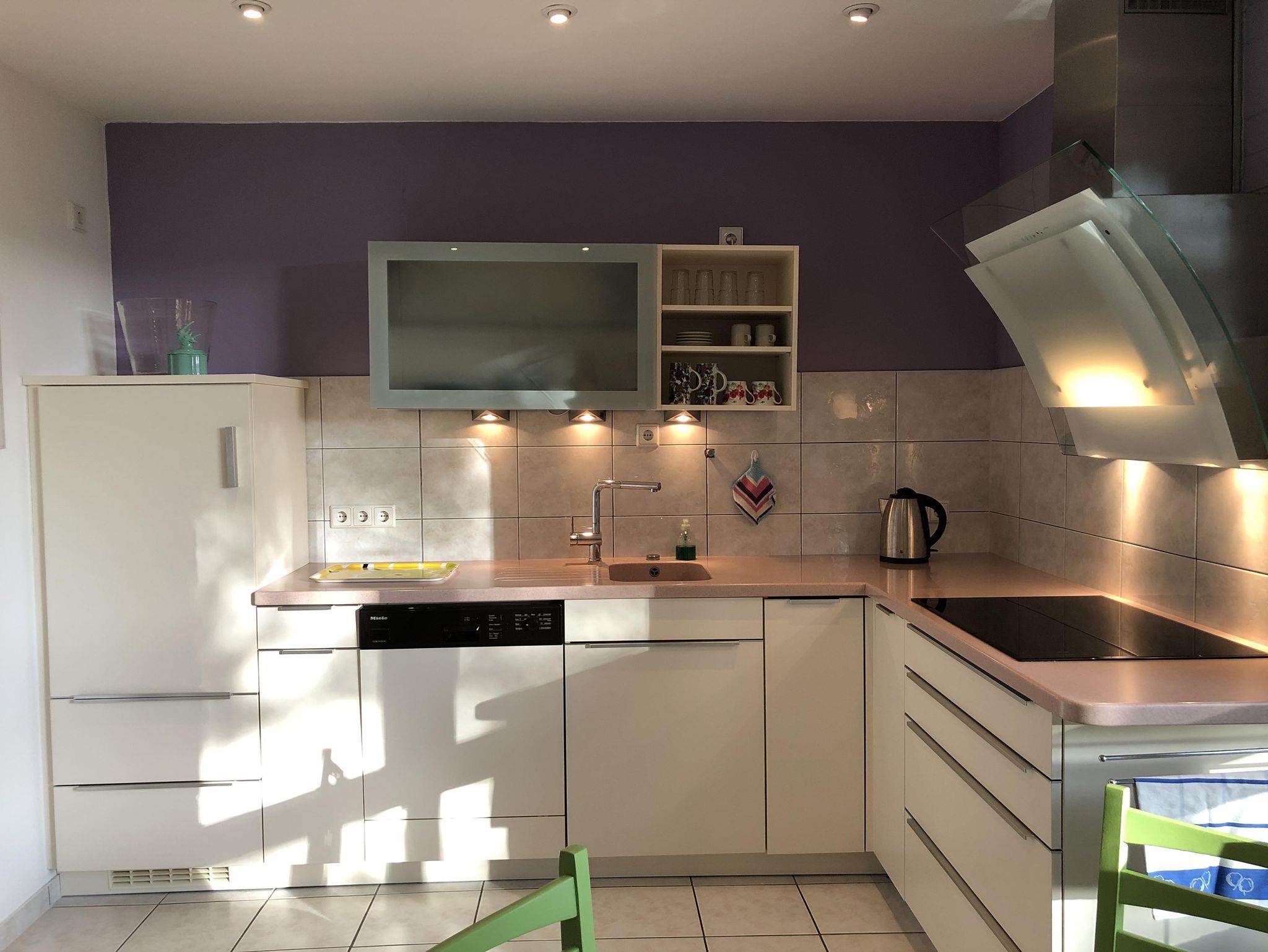 Sie erreichen Ihre Ferienwohnung, die auf 140 qm vier Gästen großzügig Platz bietet, über einen separaten Eingang. Eine geräumige Diele empfängt Sie, es gibt zwei Schlafzimmer: eines mit Doppelbett 180 x 200 cm (2 Matratzen), Terrassenzugang, Ankleide und großem Kleiderschrank. Das kleinere Schlafzimmer hat zwei Einzelbetten 90 x 200 cm, liegt nach Osten mit Blick ins Grüne. Hier steht für ungestörtes Arbeiten ein Schreibtisch. Beide Schlafräume lassen sich verdunkeln. Die Küche mit Kühl/Gefrierschrank, Spülmaschine, Ceranherd, Dunstabzug, Ofen, Nespressomaschine, Toaster, Küchenradio und Frühstücksplatz mit Morgensonne. Große SüdWest-Terrasse mit Tisch, Stühlen und Markise. Offenes Wohn- und Eßzimmer im skandinavischen Stil, Schaukelsessel, Sekretär, DVD-Spieler, TV, Spiele, Bücher, raumhohe Fenster mit Sicht auf Baumwipfel und Umgebung. Großes, wohnliches Bad mit Aussicht, WC, Badewanne, Dusche, Doppelwaschbecken, Handtuchwärmer, Sessel; kleines separates Gäste-WC. Gratis W-LAN.
