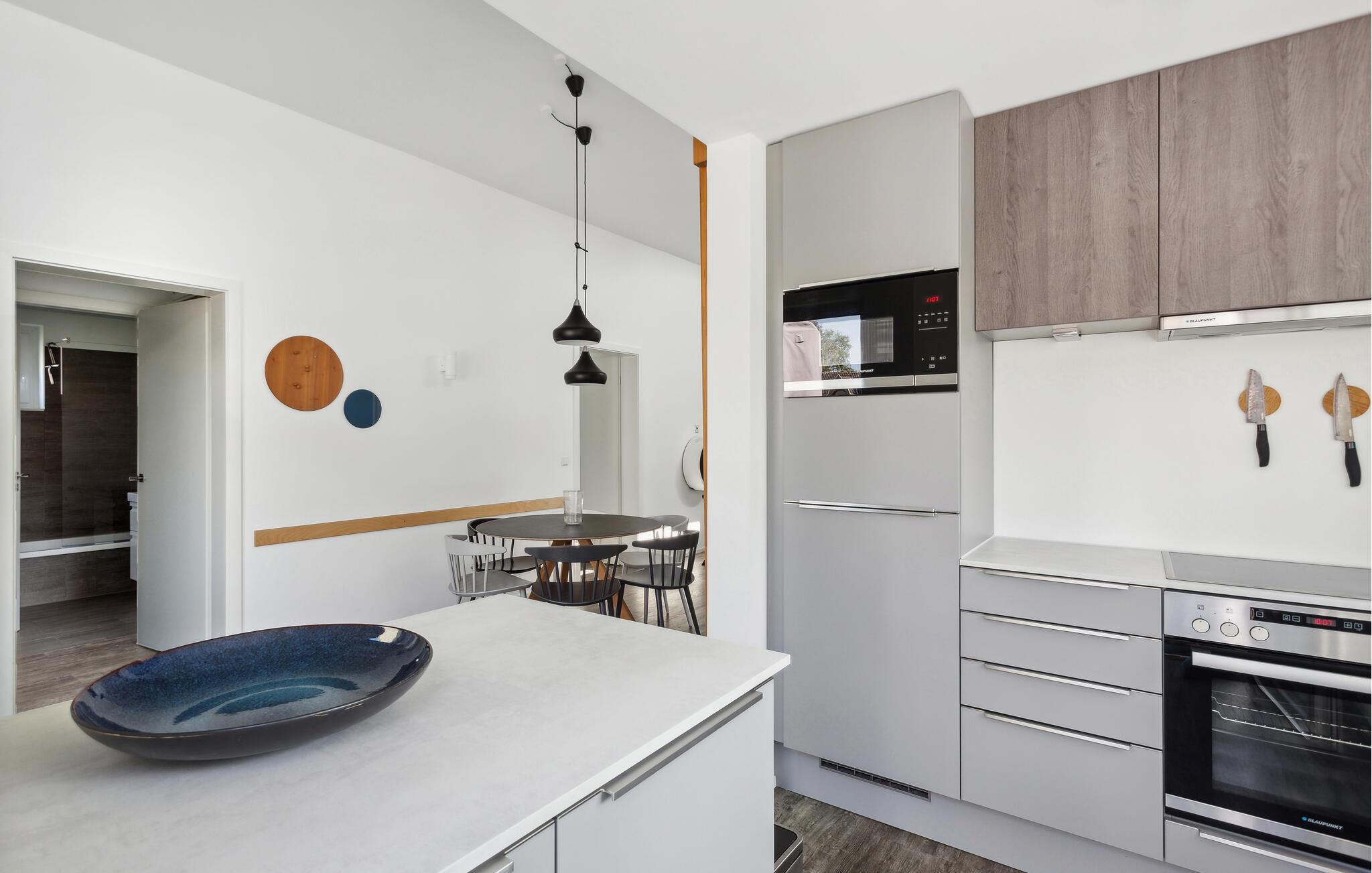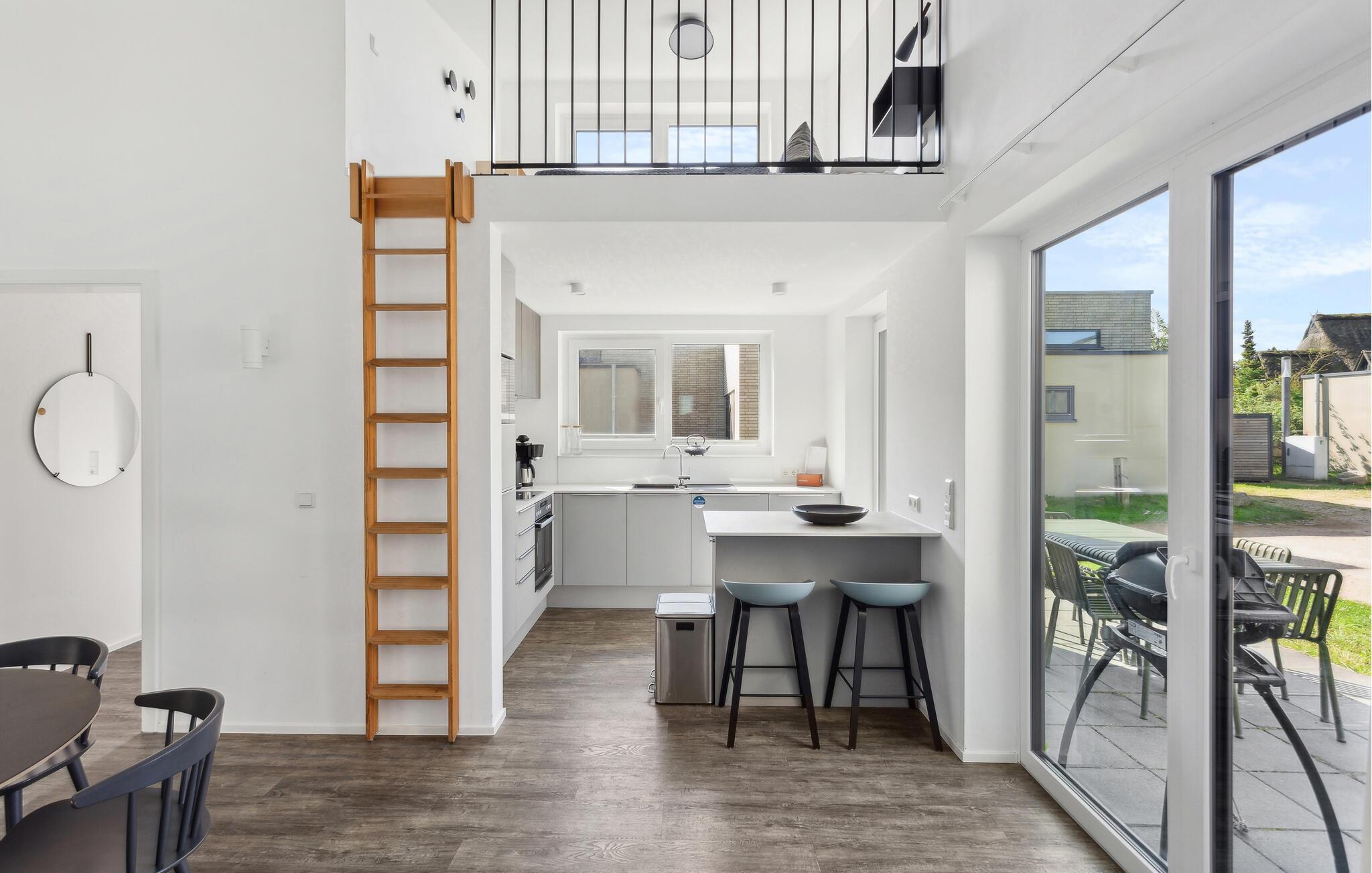 Velkommen til jeres feriehus, som tilbyder en børnefamilie eller en lille gruppe venner en hyggelig og hjemlig atmosfære med møbler i skandinavisk design. De to terrasser til at sidde og spise i solen, biopejsen og jeres egen sauna er med til at opfylde jeres ferieønsker. Det åbne køkken indbyder til madlavning og hygge. Der er et åbent soveværelse på galleriet.