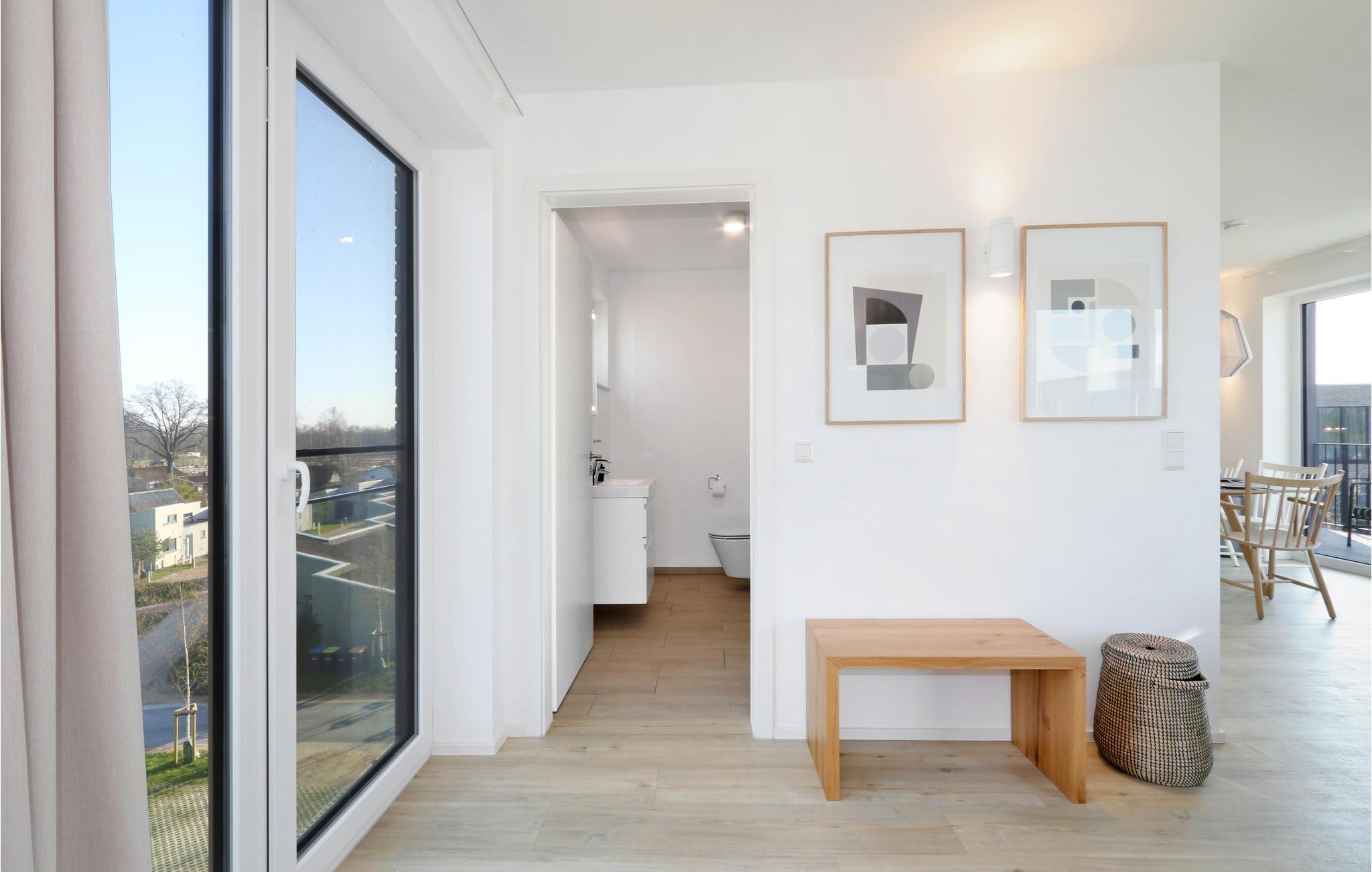 Velkommen til jeres eksklusive penthouse, hvor I kan se frem til et vidunderligt ophold i alle henseender. I bydes velkommen af skandinaviske designmøbler i høj kvalitet og en hyggelig atmosfære - helt perfekt til den eksklusive ferie. Takket være biopejsen er der en hyggelig varme selv på kolde dage, og gulv-til-loft-vinduerne sørger for et fantastisk lysindfald. Fra balkonen kan I nyde udsigten langt ud over landskabet sammen med venner eller familie.