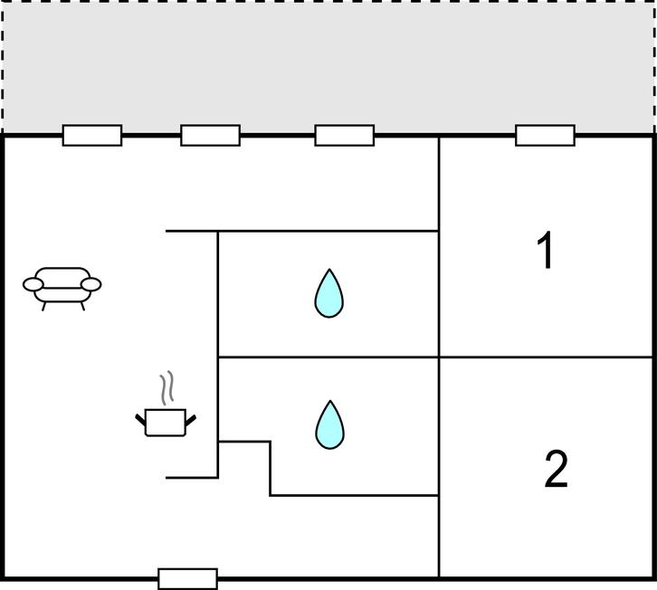 Opholdsstue/køkken - 2 Sovepladser. (Sofa, madras eller lignende).