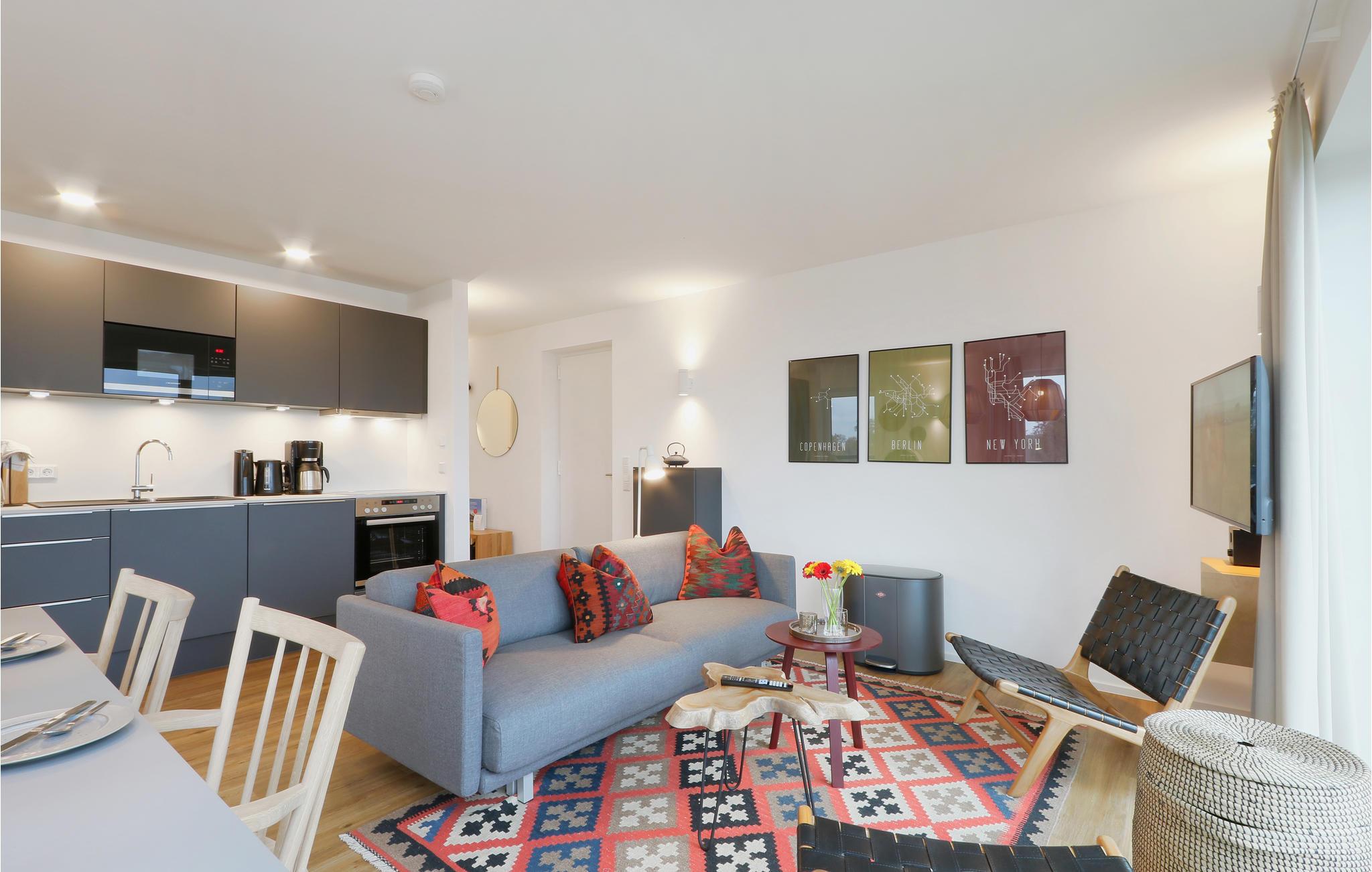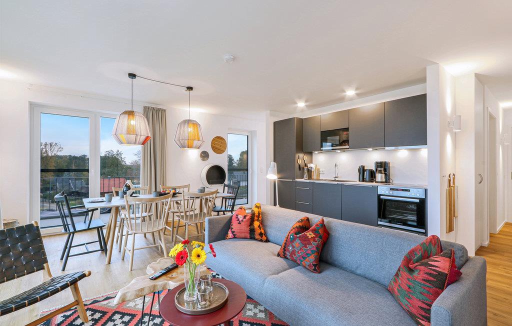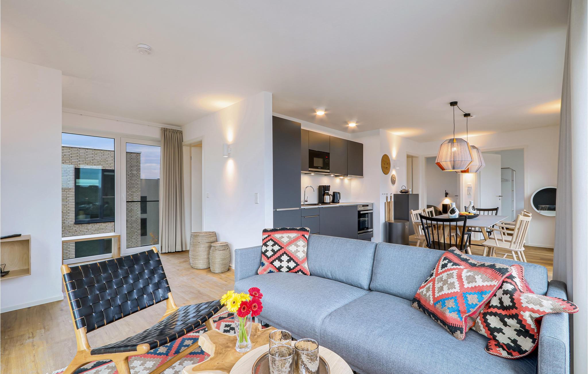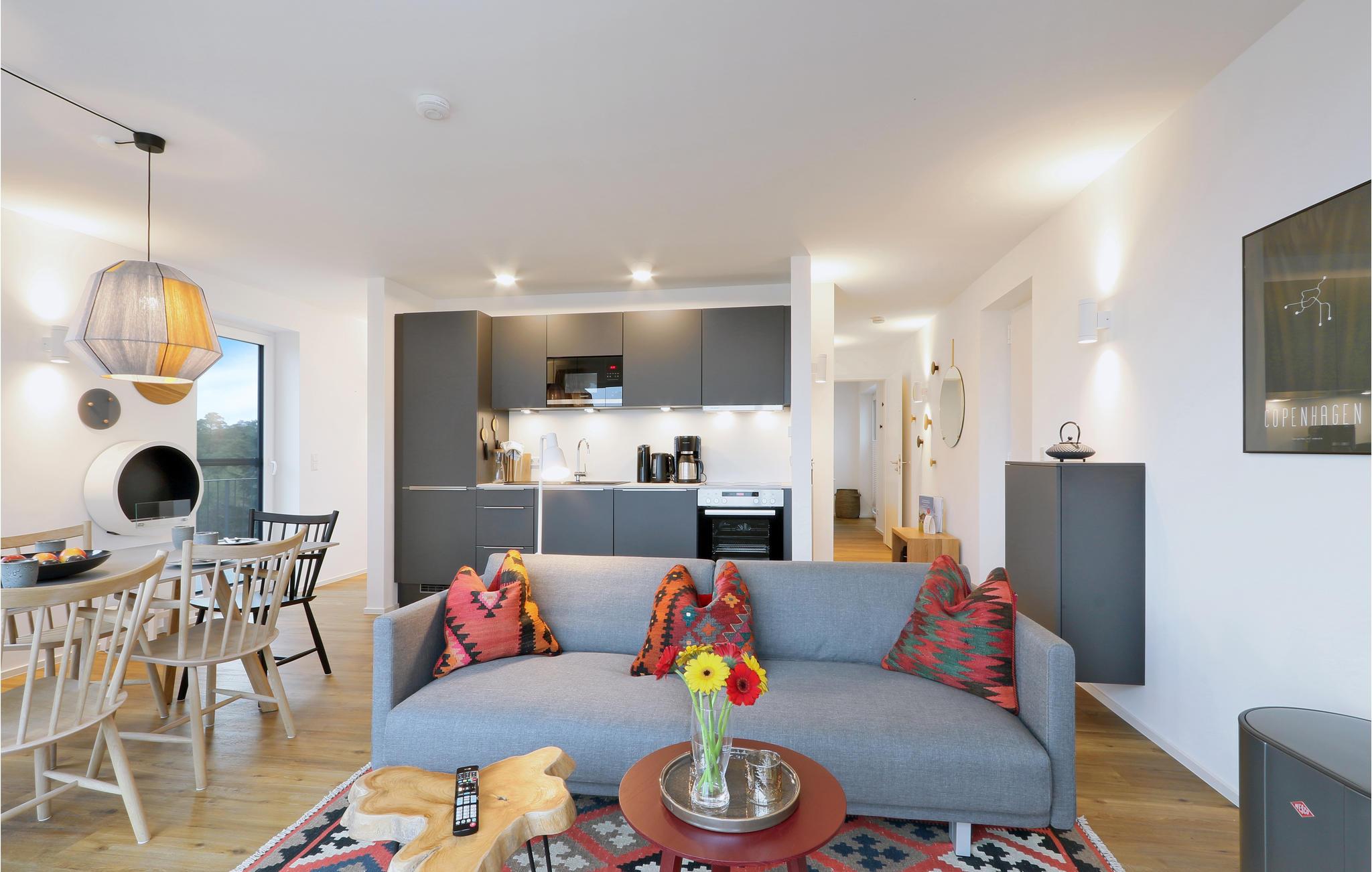 Velkommen til jeres eksklusive penthouse, hvor I kan se frem til et vidunderligt ophold i alle henseender. I bydes velkommen af skandinaviske designmøbler i høj kvalitet og en hyggelig atmosfære - helt perfekt til den eksklusive ferie. Takket være biopejsen er der en hyggelig varme selv på kolde dage, og gulv-til-loft-vinduerne sørger for et fantastisk lysindfald. Fra balkonen kan I nyde udsigten langt ud over landskabet sammen med venner eller familie.