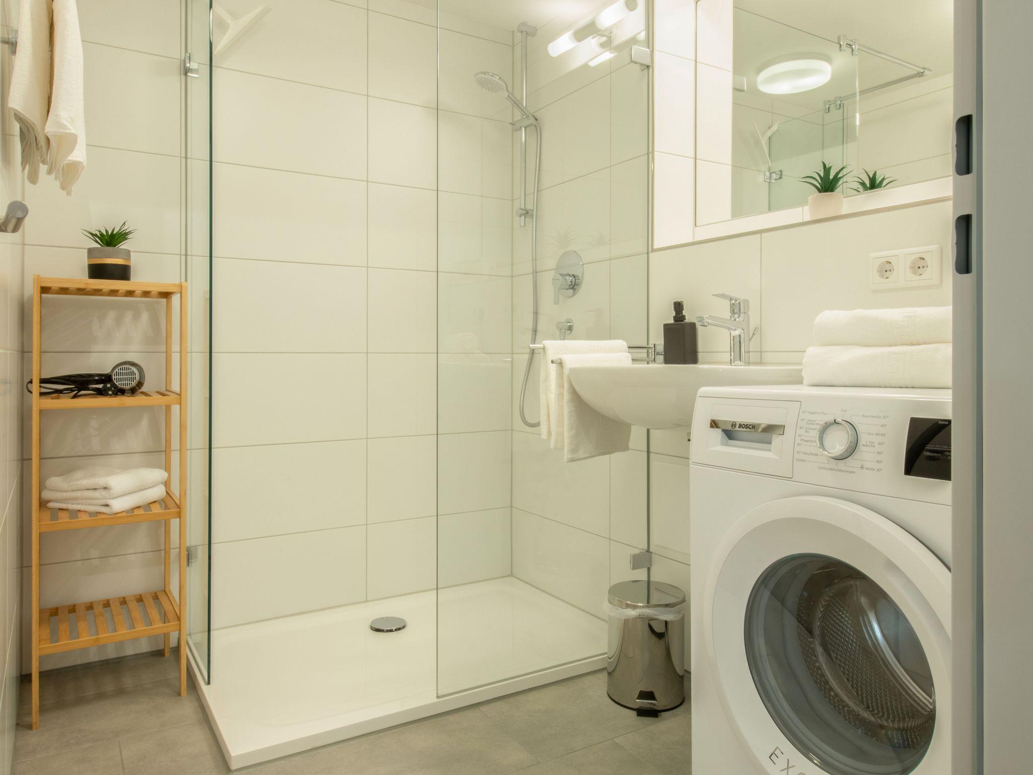 Apartment 3: Im ersten Obergeschoss befindet sich das Apartment 3 mit 37 m² für bis zu 3 Personen. Der Zugang zur Wohnung ist ebenerdig, gegenüber des Haupteingangs des Apartmenthauses.